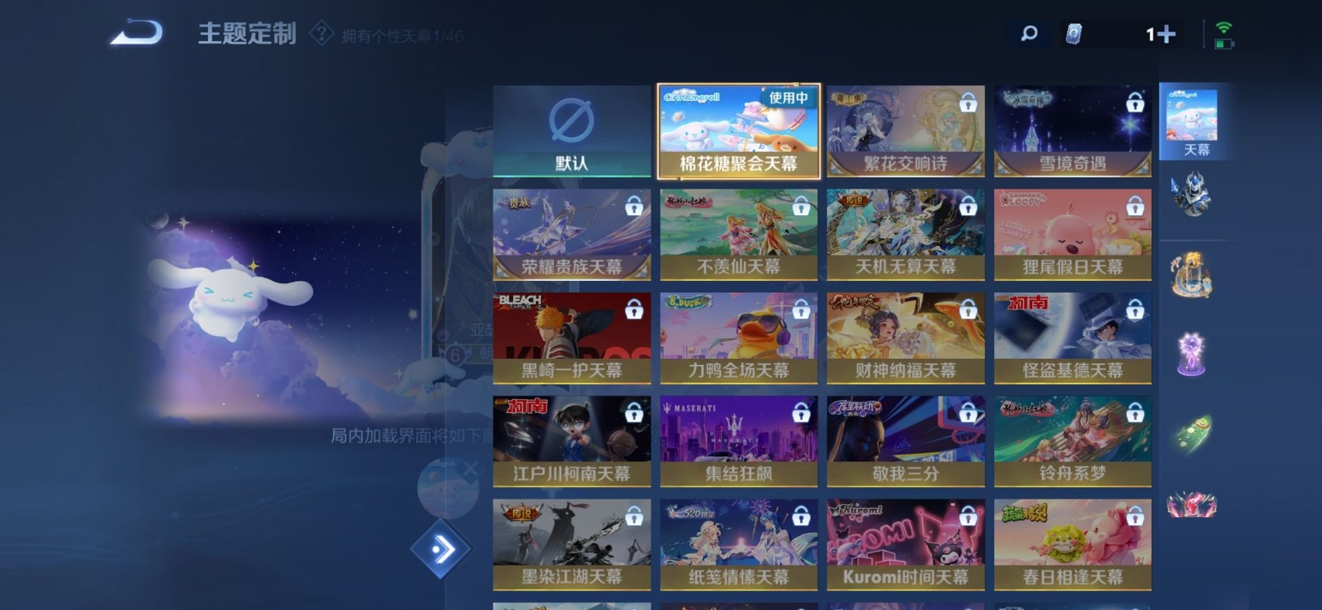 宫本武藏鬼剑武藏,兰陵王暗隐猎兽者,李白千年之狐,上官婉儿群星魔术团,安琪拉心灵骇客,安琪拉乘龙·聚宝船,铠曙光守护者,曹操幽灵船长,白起星夜王子,伽罗箭羽风息,廉颇地狱岩魂,亚瑟心灵战警,嬴政暗夜贵公子,小乔缤纷独角兽,小乔青蛇,不知火舞魅语,雅典娜冰冠公主,赵怀真器灵·浮梦炉,墨子龙骑士,墨子金属风暴,吕布圣诞狂欢,吕布末日机甲
