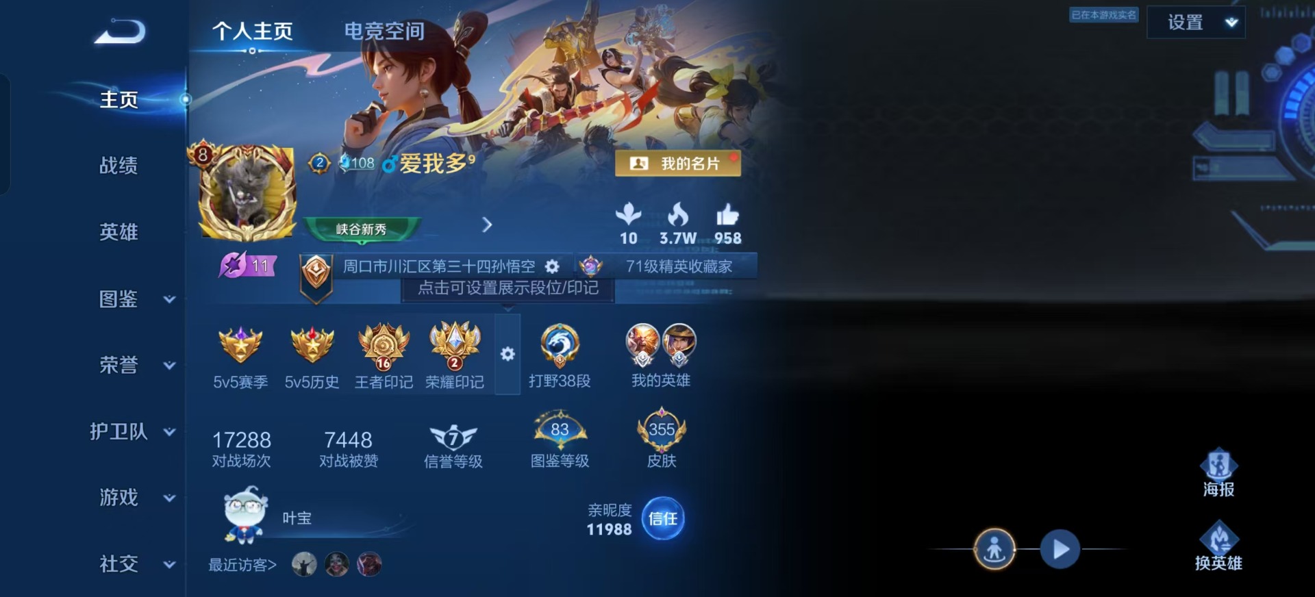 - [12090066]V7 1典藏 8传说 123英雄 178皮肤 可修改实名 优质装备:无限飓风号(高达),云鹰飞将(小将军),炽阳神光,零号·赤焰,黄金天蝎座 传说皮:幻光神枪 珍宝阁皮:妄想食味,蔷薇恋人 限定皮:逐霄战戟,鸣野蒿,至尊宝,凤求凰(白切鸡),五谷丰年,烈魂,岱宗(典韦年限),天狼征服者,逐梦之影,默契交锋-花木兰,天魔缭乱 史诗皮:化蝶舞,破空之剑,海诺心动手记,决胜骁骑,蔬乡物语(鲁班七号),紫霞仙子,黄金分割率,特工魅影,高渐离燃音魔法,蒙恬荣光圣徽,冰冠公主,晚萤,电玩·爆裂旋风,末日机甲-吕布,猫狗日记-孙策,时之恋人-孙尚香,节奏热浪,摇滚巨星,水果甜心,绅士熊喵,星夜王子,心灵骇客,功夫厨神,德古拉伯爵,暗隐猎兽者,幽灵船长,鬼剑武藏,心灵战警,地狱岩魂,繁星吟游(呼啦呼啦),缤纷独角兽,乘风破浪,逐浪之夏,曙光守护者,热力回旋,金属风暴,原初追逐者,圣诞恋歌,鹰眼统帅,魅力维加斯,赏金猎手,未来纪元-赵云