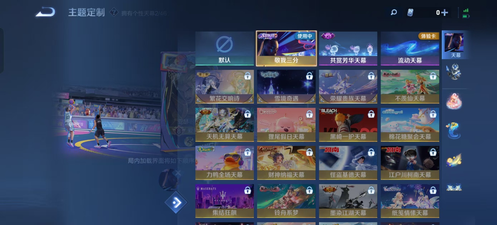 大乔猫狗日记,高渐离燃音魔法,刘邦德古拉伯爵,夏侯惇乘风破浪,阿轲暗夜猫娘,阿轲节奏热浪,铠曙光守护者,曹操幽灵船长,伽罗箭羽风息,廉颇地狱岩魂,小乔缤纷独角兽,孙尚香时之恋人,孙策猫狗日记,鲁班七号电玩小子,吕布圣诞狂欢,露娜紫霞仙子,吕布末日机甲,周瑜雪夜绮愿,诸葛亮黄金分割率,刘禅电玩·爆裂旋风,刘禅天才门将,刘禅绅士熊喵,宫本武藏鬼剑武藏,公孙离无限星赏官,兰陵王暗隐猎兽者,貂蝉圣诞恋歌,花木兰水晶猎龙者,李白千年之狐,安琪拉心灵骇客,蒙犽百解令,白起星夜王子,亚瑟心灵战警,嬴政摇滚巨星,嬴政暗夜贵公子,程咬金功夫厨神,百里玄策原初追逐者,雅典娜黎明之约,百里守约真我赫兹,李元芳逐浪之夏,百里守约特工魅影,墨子金属风暴,蔡文姬舞动绿茵,王昭君偶像歌手,嫦娥拒霜思,橘右京修罗