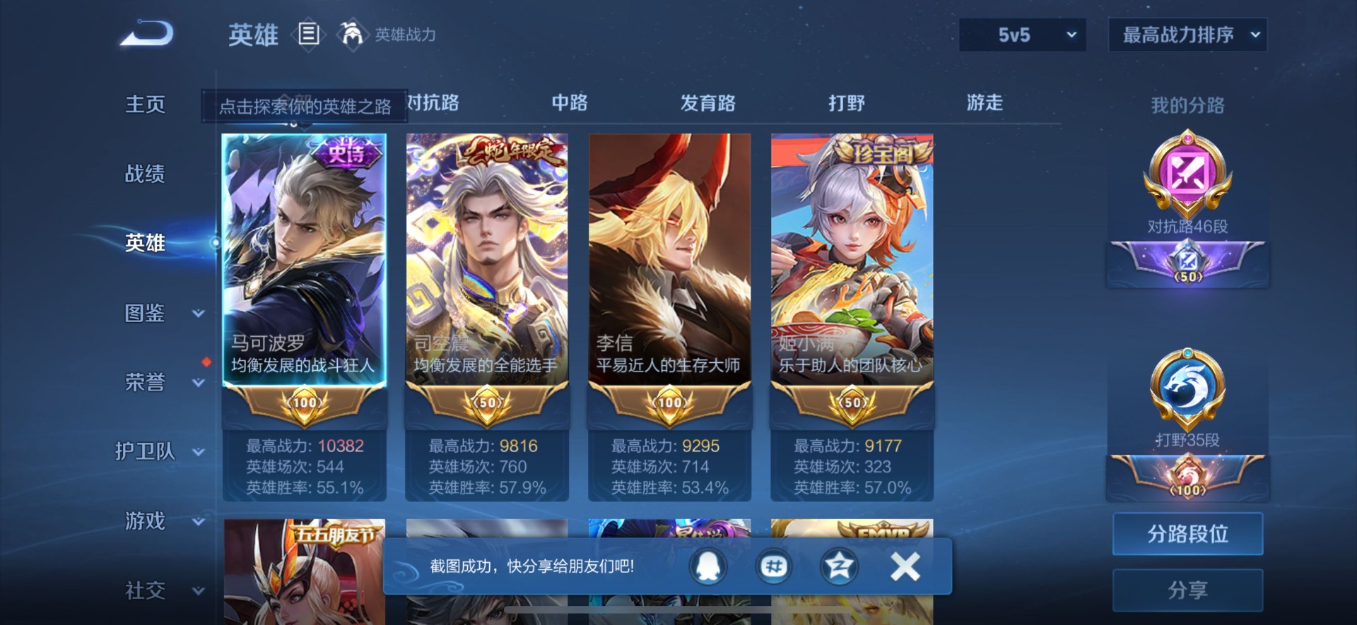 - [12090901]V7 9传说 124英雄 159皮肤 可修改实名 女号 优质装备:黄金射手座,猫影幻舞,久胜战神,地狱火,胖达荣荣,超时空战士-狄仁杰,涂山容容 珍宝阁皮:蔷薇恋人 限定皮:凤求凰(白切鸡),五谷丰年,武圣,天狼狩猎者,祈雪灵祝(雪兔子),李小龙,冰霜恋舞曲,美猴王 史诗皮:紫霞仙子,黄金分割率,特工魅影,千年之狐,魅语,无限星赏官,水果甜心,星夜王子,心灵骇客,幽灵船长,鬼剑武藏,纤云弄巧,逐浪之夏,曙光守护者,金属风暴,原初追逐者,圣诞恋歌,鹰眼统帅,王者之锤,暗夜贵公子,魅力维加斯,黎明之约