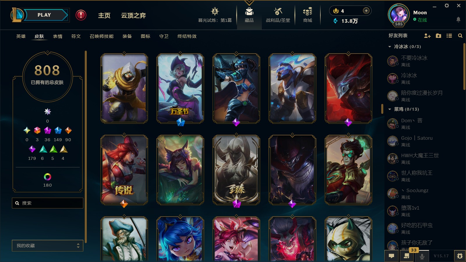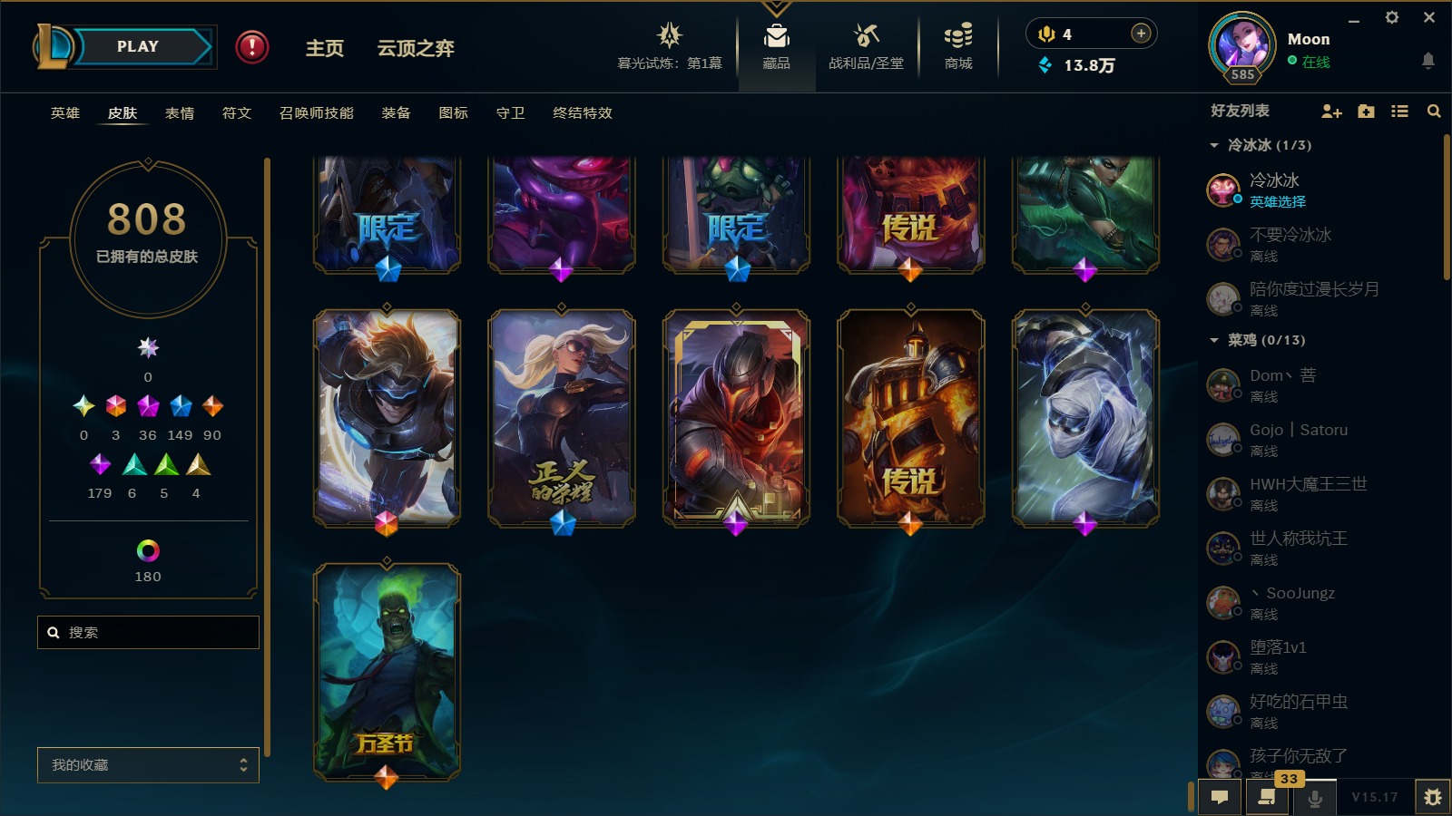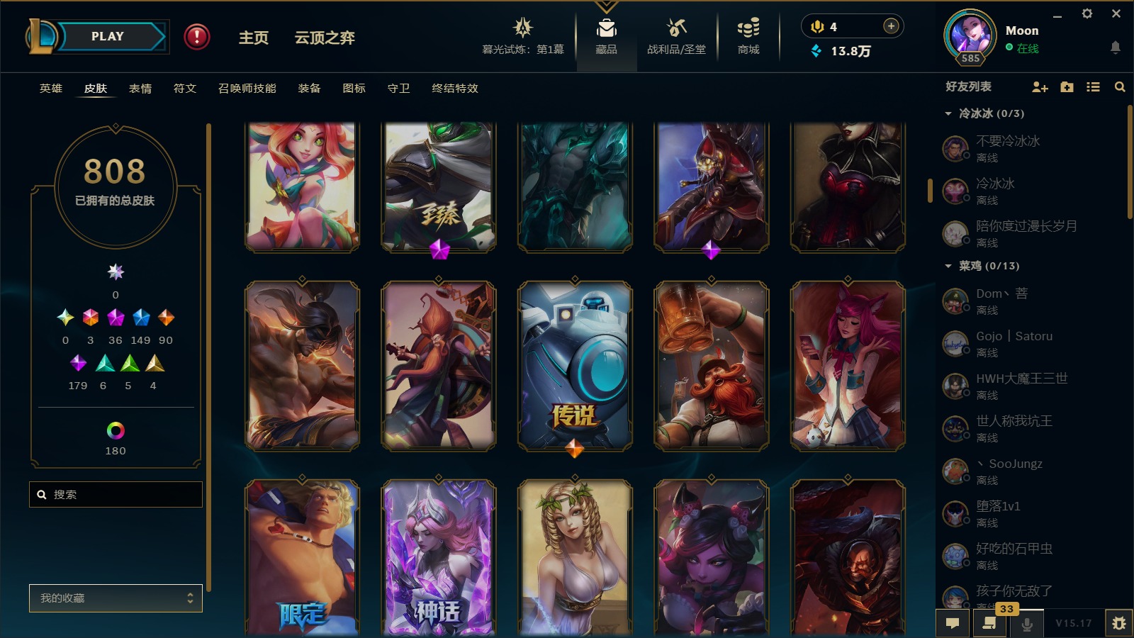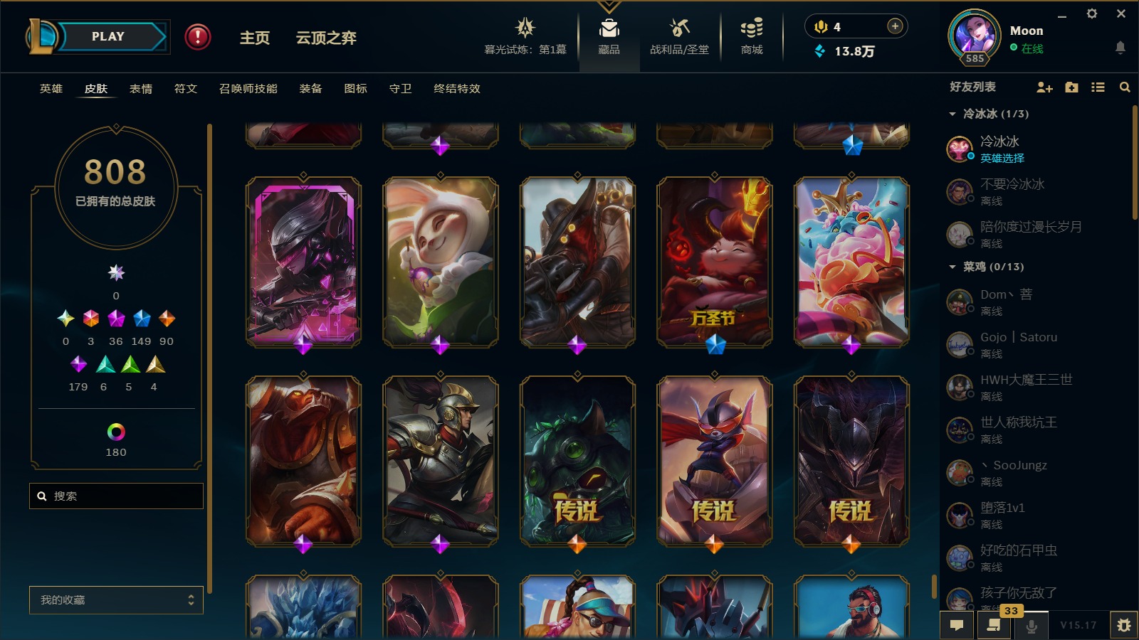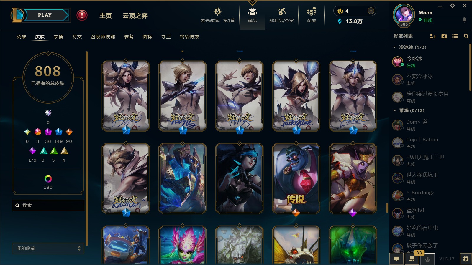 [11714811]3终极 36神话 149限定 90传说 179史诗 808皮肤 214炫彩 171英雄 可二次 可修改实名 优质装备:至臻 源计划:正义 艾瑞莉娅,至臻 腥红之月 亚托克斯,至臻 王国机神玄武 盖伦,至臻 黑夜使者 李青,至臻 绒毛菲兹,至臻 K/DA 卡莎,至臻 暗星 墨菲特,至臻 魔女 婕拉,至臻 女帝 黛安娜,至臻 原计划:逆流 塞拉斯,至臻 战斗学院 蕾欧娜,至臻 征服者 贾克斯,至臻 灵能特工 伊泽瑞尔,至臻 灵魂莲华 提莫,至臻 神龙尊者 炎龙瑟提,至臻 K/DA ALL OUT卡莎,至臻 真实伤害 亚索,至臻 黑夜使者 凯隐,至臻 神龙尊者均衡之龙 沃利贝尔,养蜂人 辛吉德,防爆天使 凯尔,暗影 沃里克,巧克力工坊 波比,地底世界 崔斯特,电玩战魂 人马,都铎王朝 图奇,防爆机器人 布里茨,防爆士兵 格雷福斯,钢铁之翼 凤凰,冠军掠夺者 卡兹克,冠军之矛 滑板鞋,冠军之刃 锐雯 2016,冠军之血 希瓦娜,惊悚派对 阿木木,警用试作体K-9 内瑟斯,克格汪 克格莫,密林猎手 提莫,野兽猎人 德莱文,野兽猎人 泰达米尔,勇者 阿狸,勇者 奈德丽,御魔星矢 寒冰,征服者 韦鲁斯,大元素使,未来战士,K/DA ALL OUT-萨勒芬妮 独立音乐人,灰烬杀手 塞拉斯,2021 全球总决赛 嘉文四世,玉剑传说 无极 白虎,吕布 奉先 炫金战神,泳池派对 奥莉安娜 优雅珠光鲸,神龙尊者 圣龙李青 龙腾云起,张辽 文远 炫金将军,冠军之刃 锐雯 2016 凯旋圣装,霸天战士 雷恩加尔 星啸天火,西部魔影 卢锡安 贝利尔之怠,无畏骑士 瑟庄妮 赤子初心,灵魂莲华 锐雯 流火,外星装甲 库奇,最终BOSS 维迦 里・大魔王,可爱可爱粉红红 布里茨,至臻 黑夜使者 李青(2022),至臻 绒毛 菲兹(2022),至臻 腥红之月 亚托克斯(2022),至臻 绒毛 菲兹,星之守护者 辛德拉 未来之光,净雪之月 莫甘娜 冬虹,墨之影武者 亚索 金墨耀影,水晶圣骑 蕾欧娜,水晶圣骑 艾希,暗星 科加斯,西部魔影 炽天使 永恩,灌篮高手 德莱厄斯 金色神话,心之钢 伊泽瑞尔 天纵才华,魔女 阿卡丽 虚荣,王国机神 白虎 贾克斯 云霄,天龙之子 黛安娜 玉龙舞夜,暗裔英雄 盖伦 至臻:西部魔影 炽天使 永恩,水晶圣骑 艾希,水晶圣骑 蕾欧娜 海克斯:海克斯 嘉文四世,恐惧新星 德莱厄