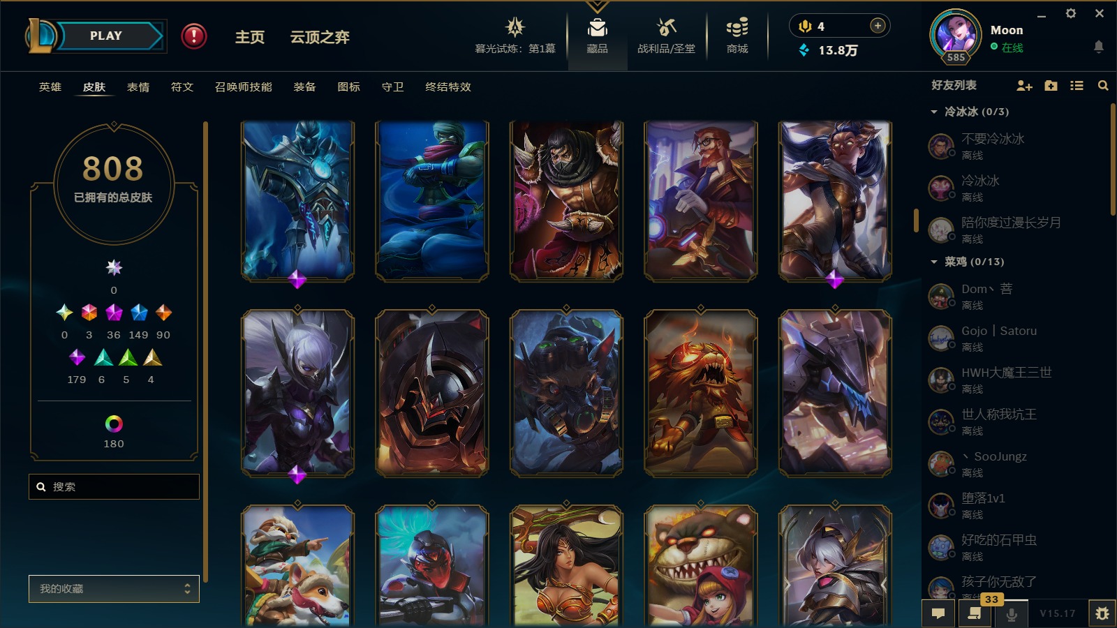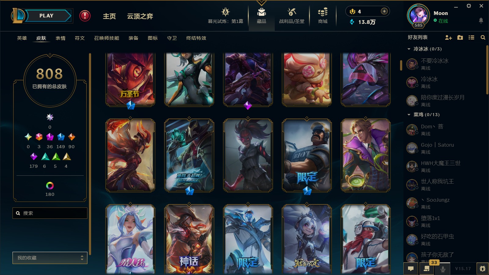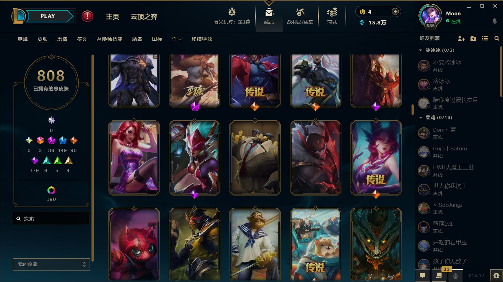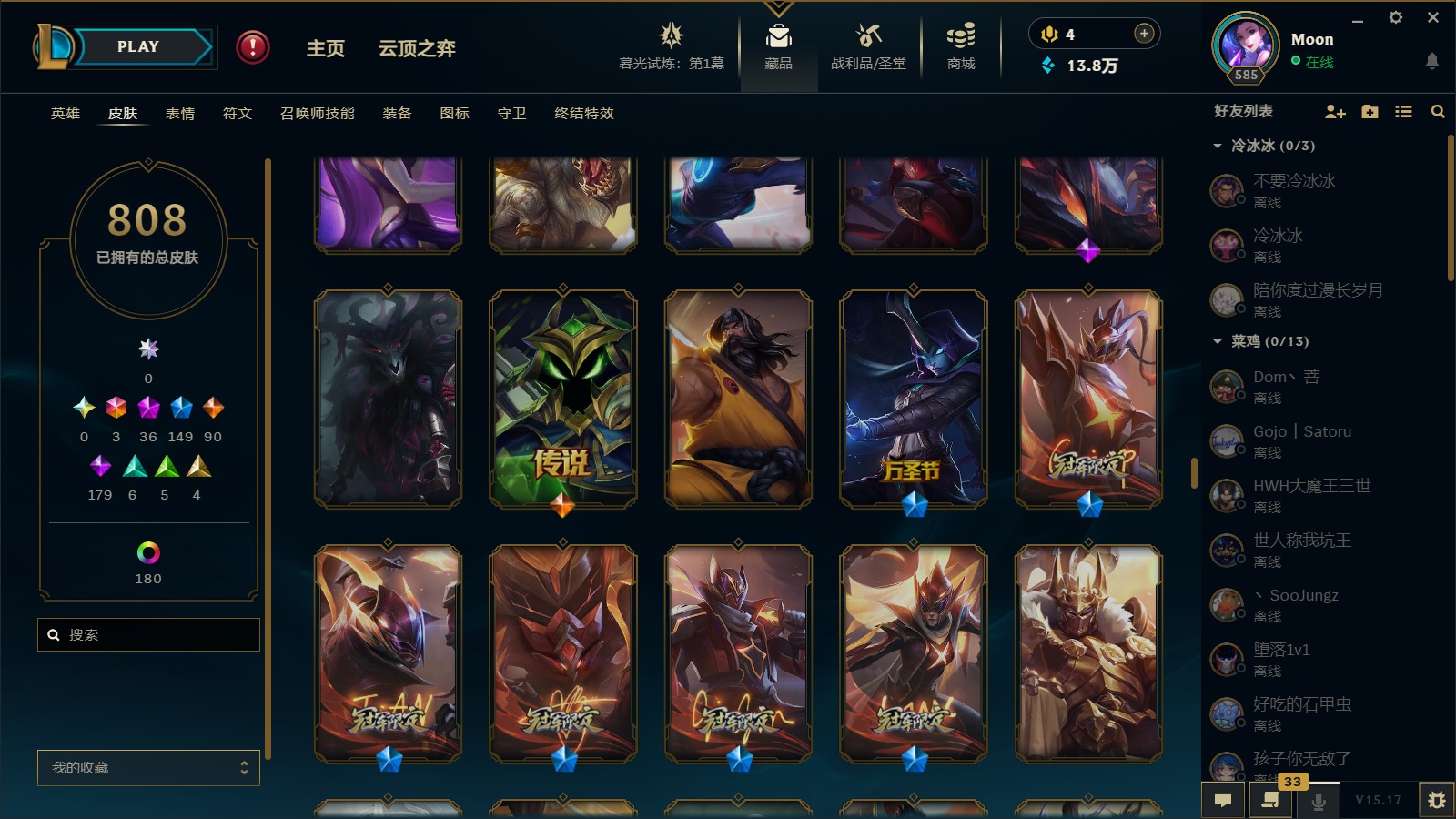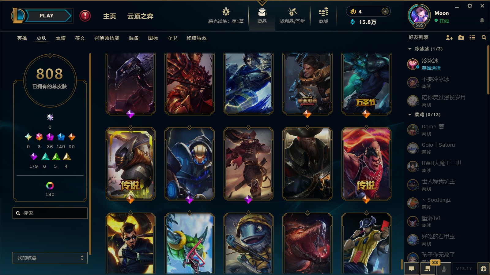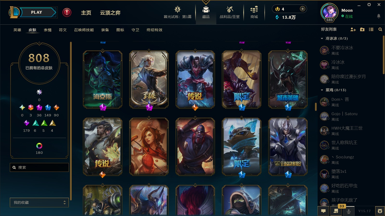 [11714811]3终极 36神话 149限定 90传说 179史诗 808皮肤 214炫彩 171英雄 可二次 可修改实名 优质装备:至臻 源计划:正义 艾瑞莉娅,至臻 腥红之月 亚托克斯,至臻 王国机神玄武 盖伦,至臻 黑夜使者 李青,至臻 绒毛菲兹,至臻 K/DA 卡莎,至臻 暗星 墨菲特,至臻 魔女 婕拉,至臻 女帝 黛安娜,至臻 原计划:逆流 塞拉斯,至臻 战斗学院 蕾欧娜,至臻 征服者 贾克斯,至臻 灵能特工 伊泽瑞尔,至臻 灵魂莲华 提莫,至臻 神龙尊者 炎龙瑟提,至臻 K/DA ALL OUT卡莎,至臻 真实伤害 亚索,至臻 黑夜使者 凯隐,至臻 神龙尊者均衡之龙 沃利贝尔,养蜂人 辛吉德,防爆天使 凯尔,暗影 沃里克,巧克力工坊 波比,地底世界 崔斯特,电玩战魂 人马,都铎王朝 图奇,防爆机器人 布里茨,防爆士兵 格雷福斯,钢铁之翼 凤凰,冠军掠夺者 卡兹克,冠军之矛 滑板鞋,冠军之刃 锐雯 2016,冠军之血 希瓦娜,惊悚派对 阿木木,警用试作体K-9 内瑟斯,克格汪 克格莫,密林猎手 提莫,野兽猎人 德莱文,野兽猎人 泰达米尔,勇者 阿狸,勇者 奈德丽,御魔星矢 寒冰,征服者 韦鲁斯,大元素使,未来战士,K/DA ALL OUT-萨勒芬妮 独立音乐人,灰烬杀手 塞拉斯,2021 全球总决赛 嘉文四世,玉剑传说 无极 白虎,吕布 奉先 炫金战神,泳池派对 奥莉安娜 优雅珠光鲸,神龙尊者 圣龙李青 龙腾云起,张辽 文远 炫金将军,冠军之刃 锐雯 2016 凯旋圣装,霸天战士 雷恩加尔 星啸天火,西部魔影 卢锡安 贝利尔之怠,无畏骑士 瑟庄妮 赤子初心,灵魂莲华 锐雯 流火,外星装甲 库奇,最终BOSS 维迦 里・大魔王,可爱可爱粉红红 布里茨,至臻 黑夜使者 李青(2022),至臻 绒毛 菲兹(2022),至臻 腥红之月 亚托克斯(2022),至臻 绒毛 菲兹,星之守护者 辛德拉 未来之光,净雪之月 莫甘娜 冬虹,墨之影武者 亚索 金墨耀影,水晶圣骑 蕾欧娜,水晶圣骑 艾希,暗星 科加斯,西部魔影 炽天使 永恩,灌篮高手 德莱厄斯 金色神话,心之钢 伊泽瑞尔 天纵才华,魔女 阿卡丽 虚荣,王国机神 白虎 贾克斯 云霄,天龙之子 黛安娜 玉龙舞夜,暗裔英雄 盖伦 至臻:西部魔影 炽天使 永恩,水晶圣骑 艾希,水晶圣骑 蕾欧娜 海克斯:海克斯 嘉文四世,恐惧新星 德莱厄
