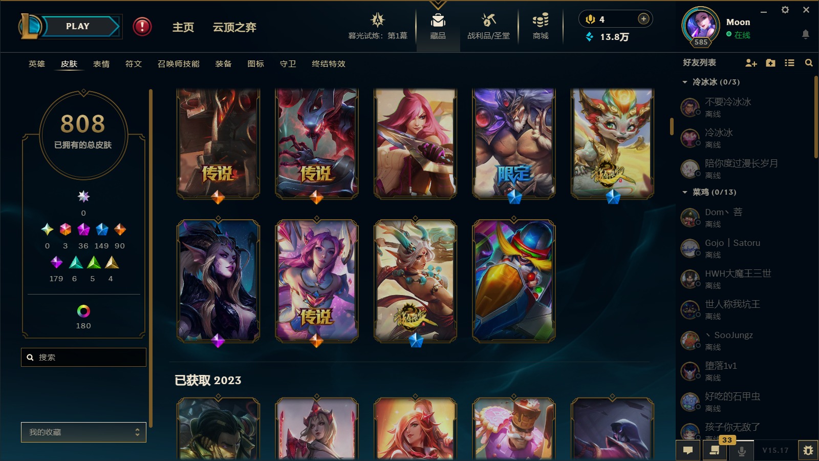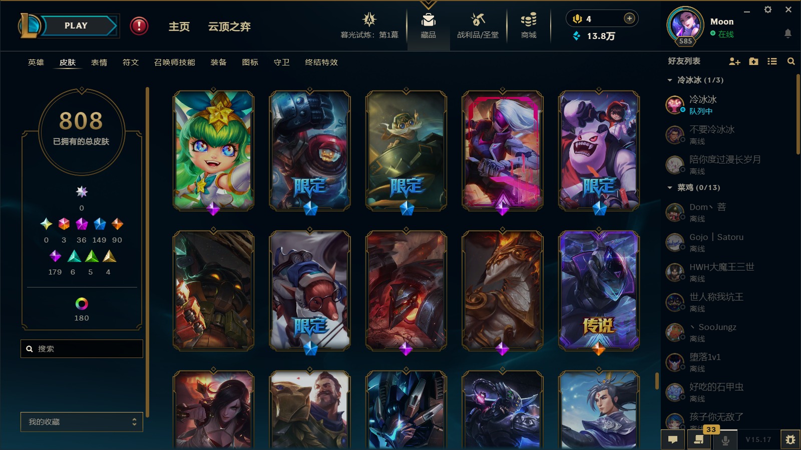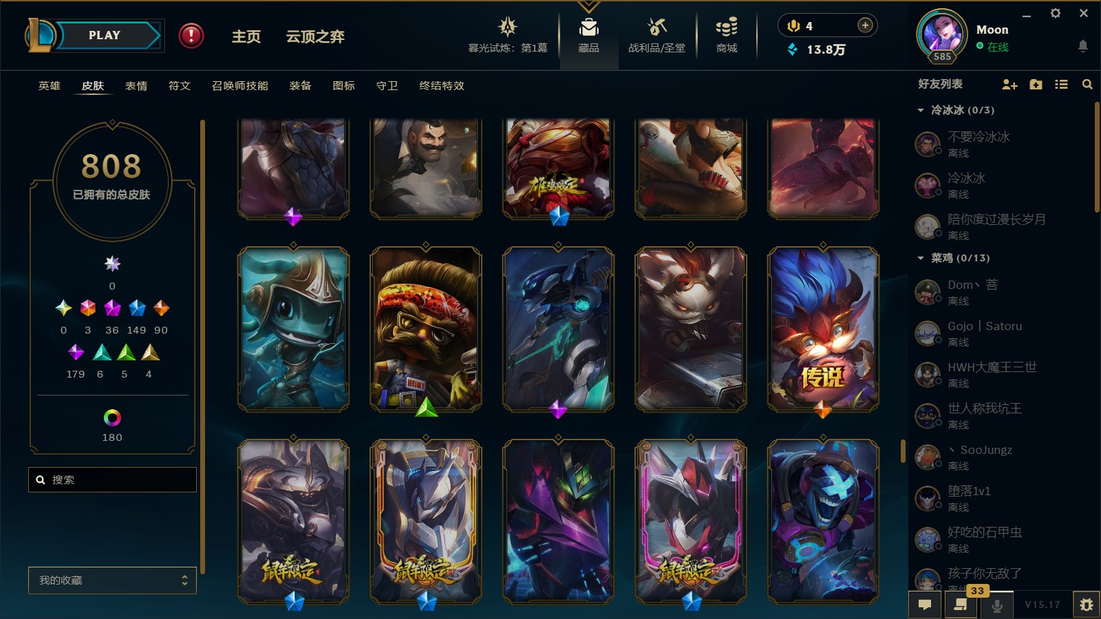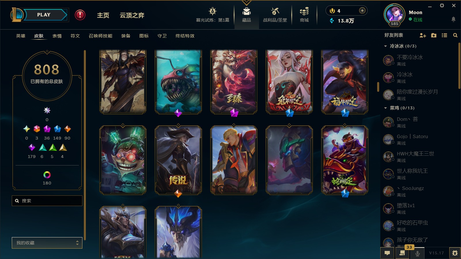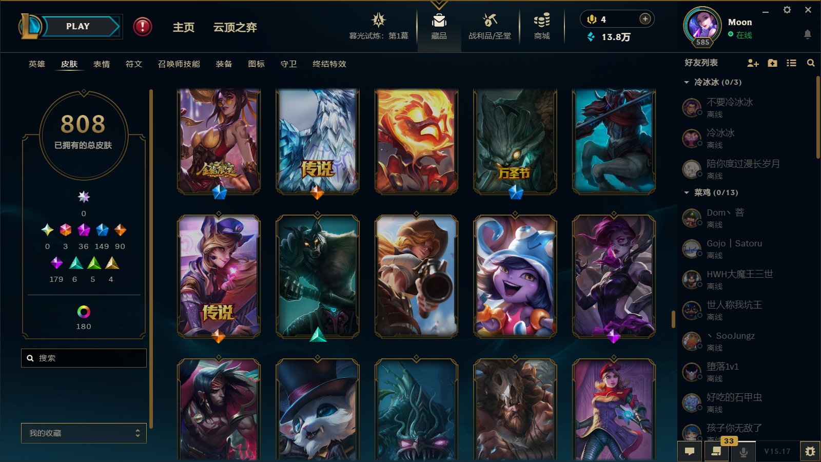 [11714811]3终极 36神话 149限定 90传说 179史诗 808皮肤 214炫彩 171英雄 可二次 可修改实名 优质装备:至臻 源计划:正义 艾瑞莉娅,至臻 腥红之月 亚托克斯,至臻 王国机神玄武 盖伦,至臻 黑夜使者 李青,至臻 绒毛菲兹,至臻 K/DA 卡莎,至臻 暗星 墨菲特,至臻 魔女 婕拉,至臻 女帝 黛安娜,至臻 原计划:逆流 塞拉斯,至臻 战斗学院 蕾欧娜,至臻 征服者 贾克斯,至臻 灵能特工 伊泽瑞尔,至臻 灵魂莲华 提莫,至臻 神龙尊者 炎龙瑟提,至臻 K/DA ALL OUT卡莎,至臻 真实伤害 亚索,至臻 黑夜使者 凯隐,至臻 神龙尊者均衡之龙 沃利贝尔,养蜂人 辛吉德,防爆天使 凯尔,暗影 沃里克,巧克力工坊 波比,地底世界 崔斯特,电玩战魂 人马,都铎王朝 图奇,防爆机器人 布里茨,防爆士兵 格雷福斯,钢铁之翼 凤凰,冠军掠夺者 卡兹克,冠军之矛 滑板鞋,冠军之刃 锐雯 2016,冠军之血 希瓦娜,惊悚派对 阿木木,警用试作体K-9 内瑟斯,克格汪 克格莫,密林猎手 提莫,野兽猎人 德莱文,野兽猎人 泰达米尔,勇者 阿狸,勇者 奈德丽,御魔星矢 寒冰,征服者 韦鲁斯,大元素使,未来战士,K/DA ALL OUT-萨勒芬妮 独立音乐人,灰烬杀手 塞拉斯,2021 全球总决赛 嘉文四世,玉剑传说 无极 白虎,吕布 奉先 炫金战神,泳池派对 奥莉安娜 优雅珠光鲸,神龙尊者 圣龙李青 龙腾云起,张辽 文远 炫金将军,冠军之刃 锐雯 2016 凯旋圣装,霸天战士 雷恩加尔 星啸天火,西部魔影 卢锡安 贝利尔之怠,无畏骑士 瑟庄妮 赤子初心,灵魂莲华 锐雯 流火,外星装甲 库奇,最终BOSS 维迦 里・大魔王,可爱可爱粉红红 布里茨,至臻 黑夜使者 李青(2022),至臻 绒毛 菲兹(2022),至臻 腥红之月 亚托克斯(2022),至臻 绒毛 菲兹,星之守护者 辛德拉 未来之光,净雪之月 莫甘娜 冬虹,墨之影武者 亚索 金墨耀影,水晶圣骑 蕾欧娜,水晶圣骑 艾希,暗星 科加斯,西部魔影 炽天使 永恩,灌篮高手 德莱厄斯 金色神话,心之钢 伊泽瑞尔 天纵才华,魔女 阿卡丽 虚荣,王国机神 白虎 贾克斯 云霄,天龙之子 黛安娜 玉龙舞夜,暗裔英雄 盖伦 至臻:西部魔影 炽天使 永恩,水晶圣骑 艾希,水晶圣骑 蕾欧娜 海克斯:海克斯 嘉文四世,恐惧新星 德莱厄