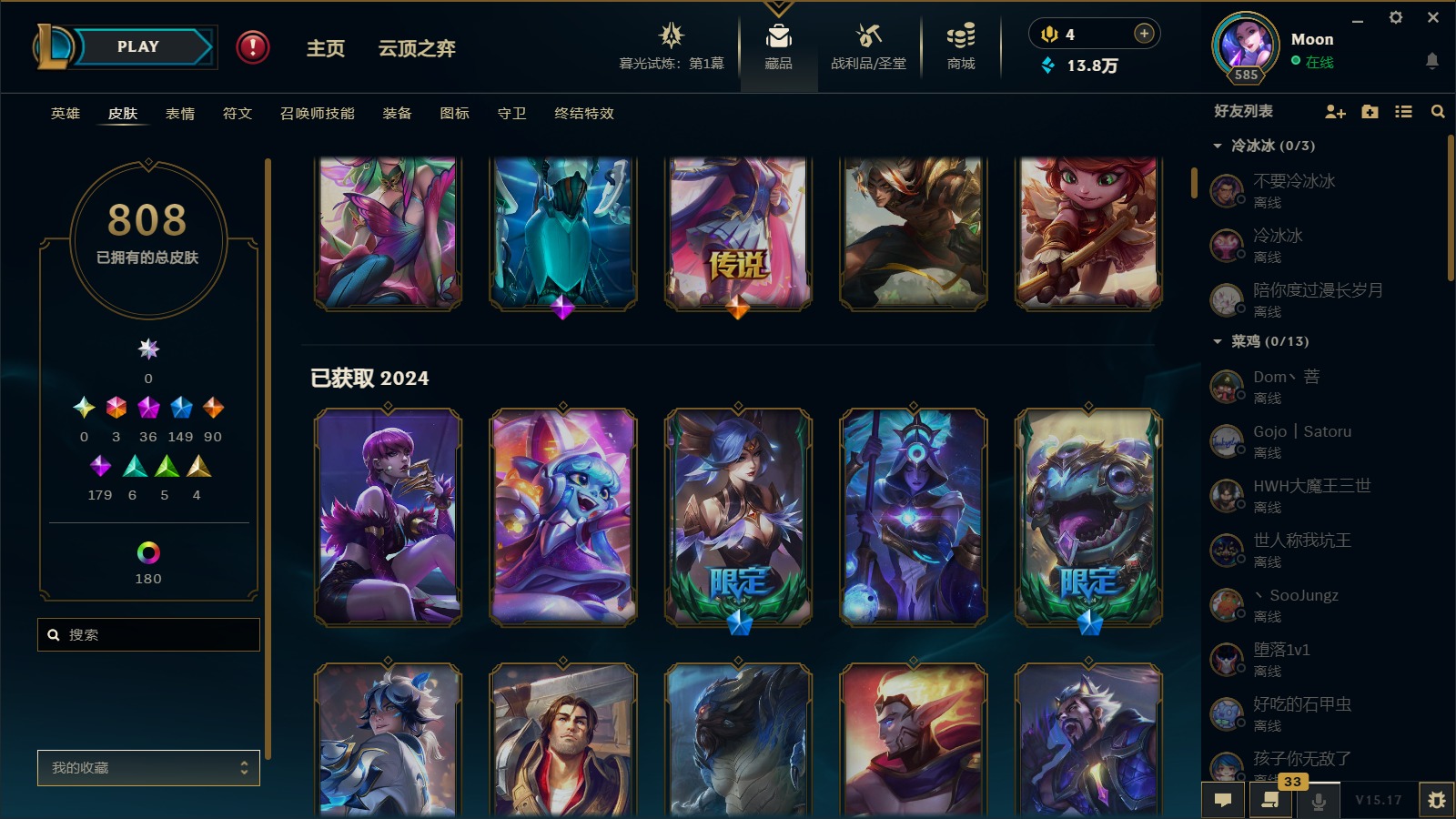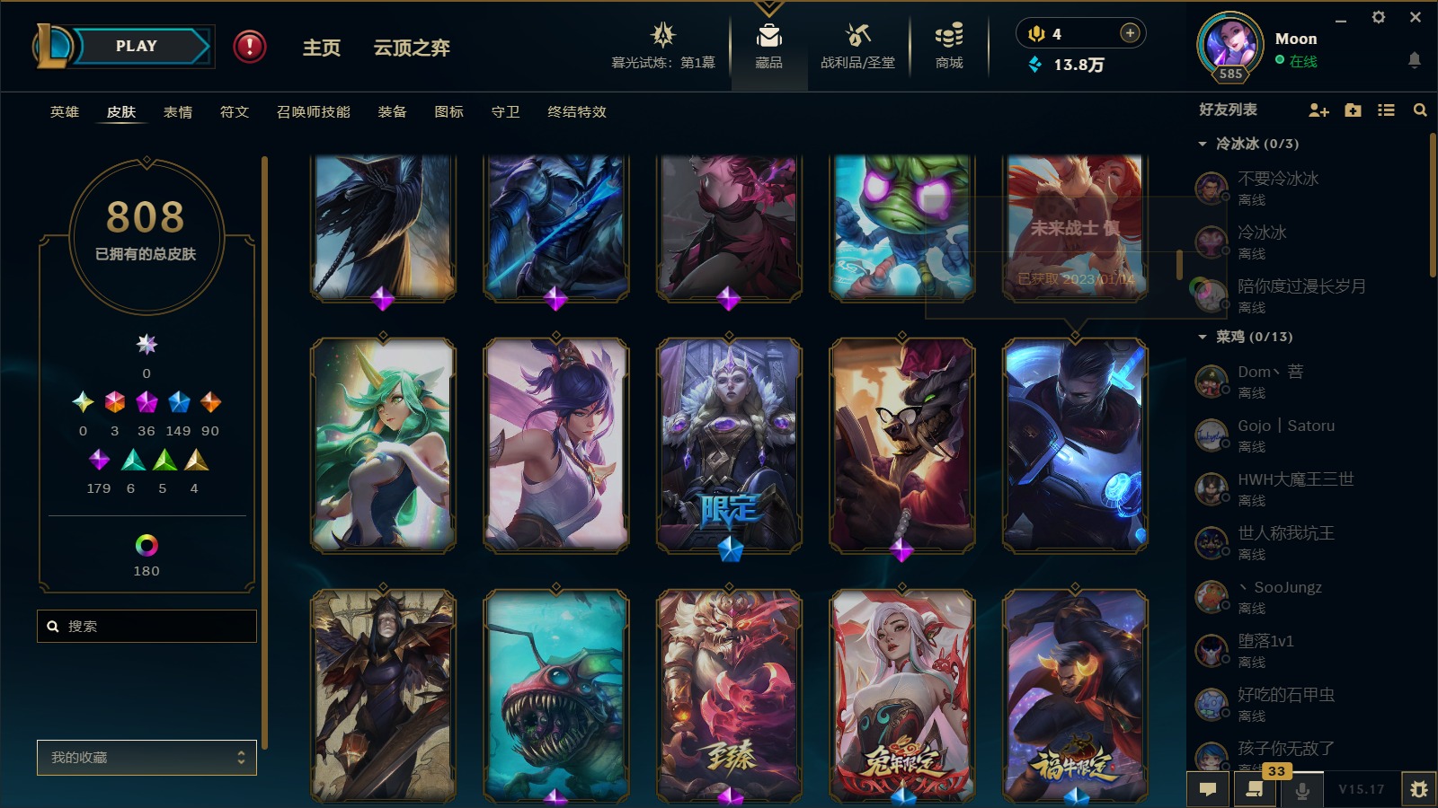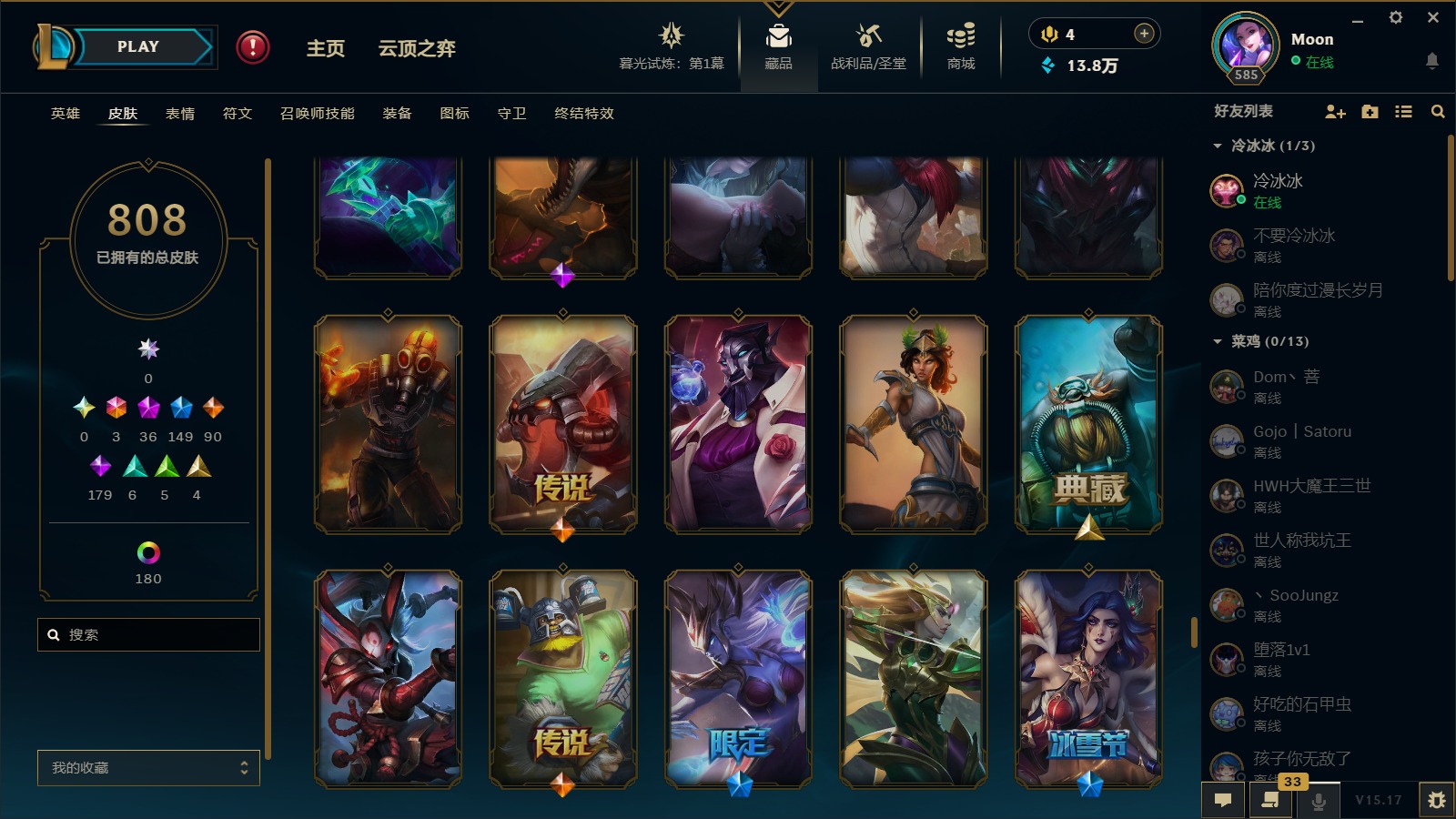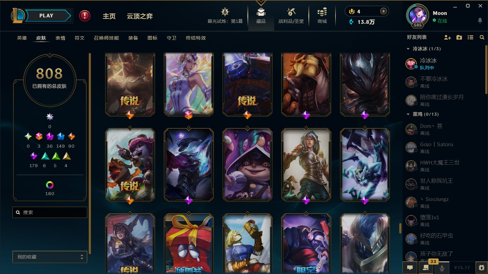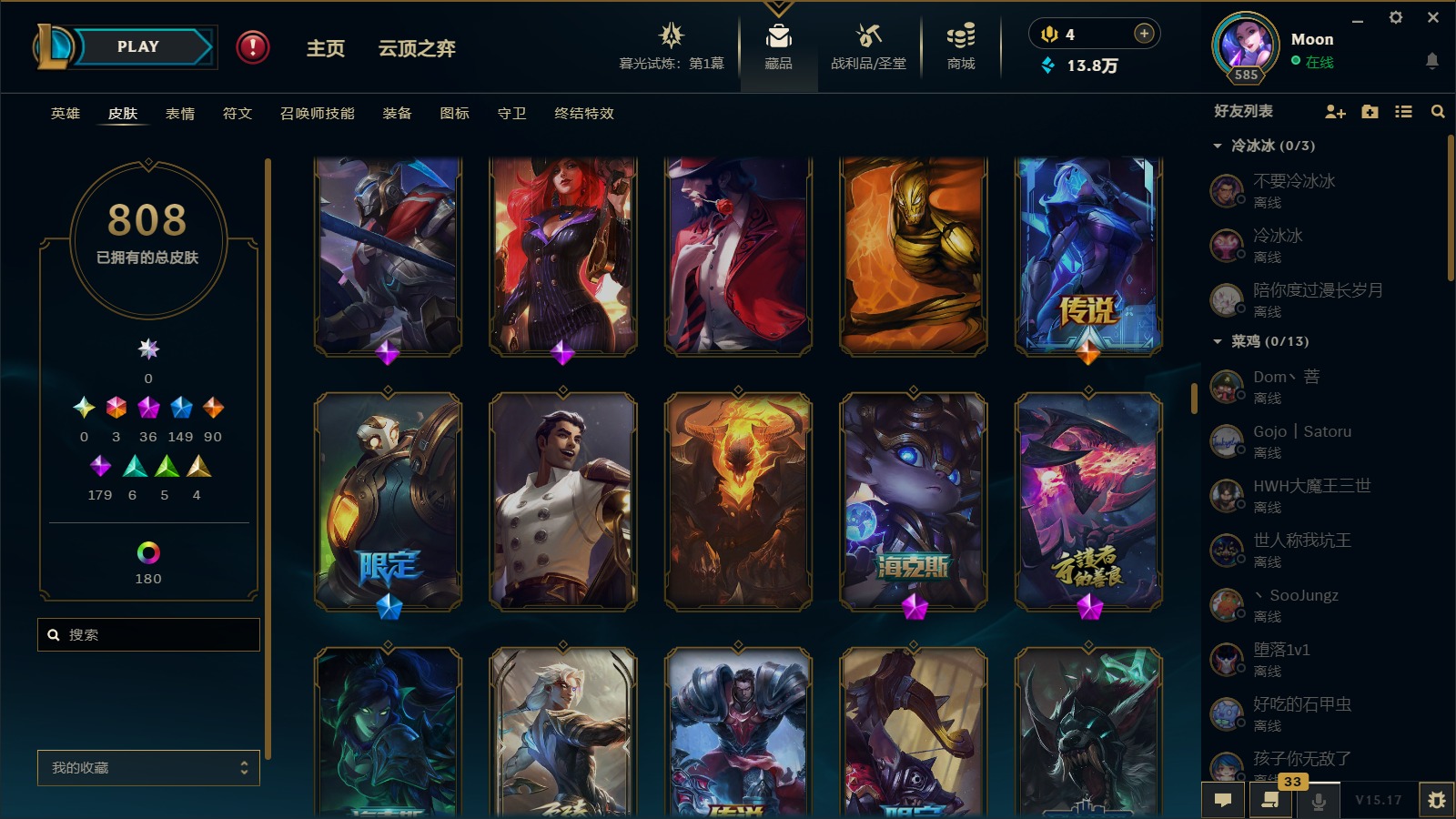 [11714811]3终极 36神话 149限定 90传说 179史诗 808皮肤 214炫彩 171英雄 可二次 可修改实名 优质装备:至臻 源计划:正义 艾瑞莉娅,至臻 腥红之月 亚托克斯,至臻 王国机神玄武 盖伦,至臻 黑夜使者 李青,至臻 绒毛菲兹,至臻 K/DA 卡莎,至臻 暗星 墨菲特,至臻 魔女 婕拉,至臻 女帝 黛安娜,至臻 原计划:逆流 塞拉斯,至臻 战斗学院 蕾欧娜,至臻 征服者 贾克斯,至臻 灵能特工 伊泽瑞尔,至臻 灵魂莲华 提莫,至臻 神龙尊者 炎龙瑟提,至臻 K/DA ALL OUT卡莎,至臻 真实伤害 亚索,至臻 黑夜使者 凯隐,至臻 神龙尊者均衡之龙 沃利贝尔,养蜂人 辛吉德,防爆天使 凯尔,暗影 沃里克,巧克力工坊 波比,地底世界 崔斯特,电玩战魂 人马,都铎王朝 图奇,防爆机器人 布里茨,防爆士兵 格雷福斯,钢铁之翼 凤凰,冠军掠夺者 卡兹克,冠军之矛 滑板鞋,冠军之刃 锐雯 2016,冠军之血 希瓦娜,惊悚派对 阿木木,警用试作体K-9 内瑟斯,克格汪 克格莫,密林猎手 提莫,野兽猎人 德莱文,野兽猎人 泰达米尔,勇者 阿狸,勇者 奈德丽,御魔星矢 寒冰,征服者 韦鲁斯,大元素使,未来战士,K/DA ALL OUT-萨勒芬妮 独立音乐人,灰烬杀手 塞拉斯,2021 全球总决赛 嘉文四世,玉剑传说 无极 白虎,吕布 奉先 炫金战神,泳池派对 奥莉安娜 优雅珠光鲸,神龙尊者 圣龙李青 龙腾云起,张辽 文远 炫金将军,冠军之刃 锐雯 2016 凯旋圣装,霸天战士 雷恩加尔 星啸天火,西部魔影 卢锡安 贝利尔之怠,无畏骑士 瑟庄妮 赤子初心,灵魂莲华 锐雯 流火,外星装甲 库奇,最终BOSS 维迦 里・大魔王,可爱可爱粉红红 布里茨,至臻 黑夜使者 李青(2022),至臻 绒毛 菲兹(2022),至臻 腥红之月 亚托克斯(2022),至臻 绒毛 菲兹,星之守护者 辛德拉 未来之光,净雪之月 莫甘娜 冬虹,墨之影武者 亚索 金墨耀影,水晶圣骑 蕾欧娜,水晶圣骑 艾希,暗星 科加斯,西部魔影 炽天使 永恩,灌篮高手 德莱厄斯 金色神话,心之钢 伊泽瑞尔 天纵才华,魔女 阿卡丽 虚荣,王国机神 白虎 贾克斯 云霄,天龙之子 黛安娜 玉龙舞夜,暗裔英雄 盖伦 至臻:西部魔影 炽天使 永恩,水晶圣骑 艾希,水晶圣骑 蕾欧娜 海克斯:海克斯 嘉文四世,恐惧新星 德莱厄