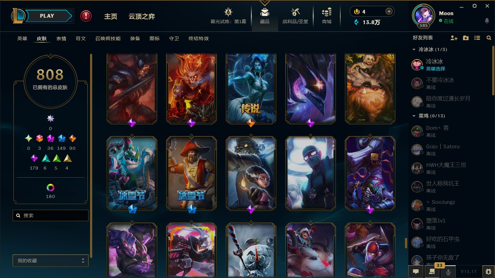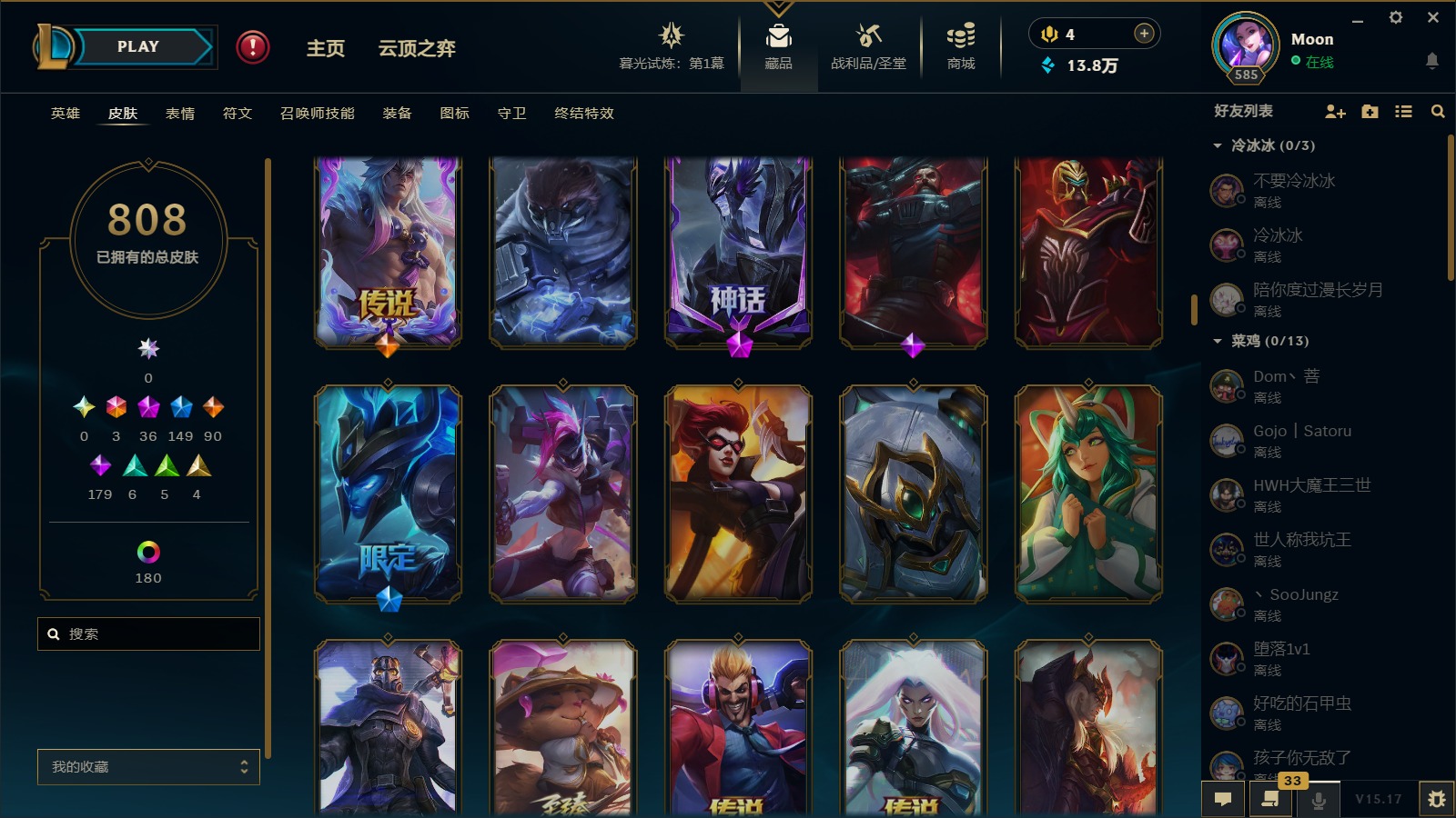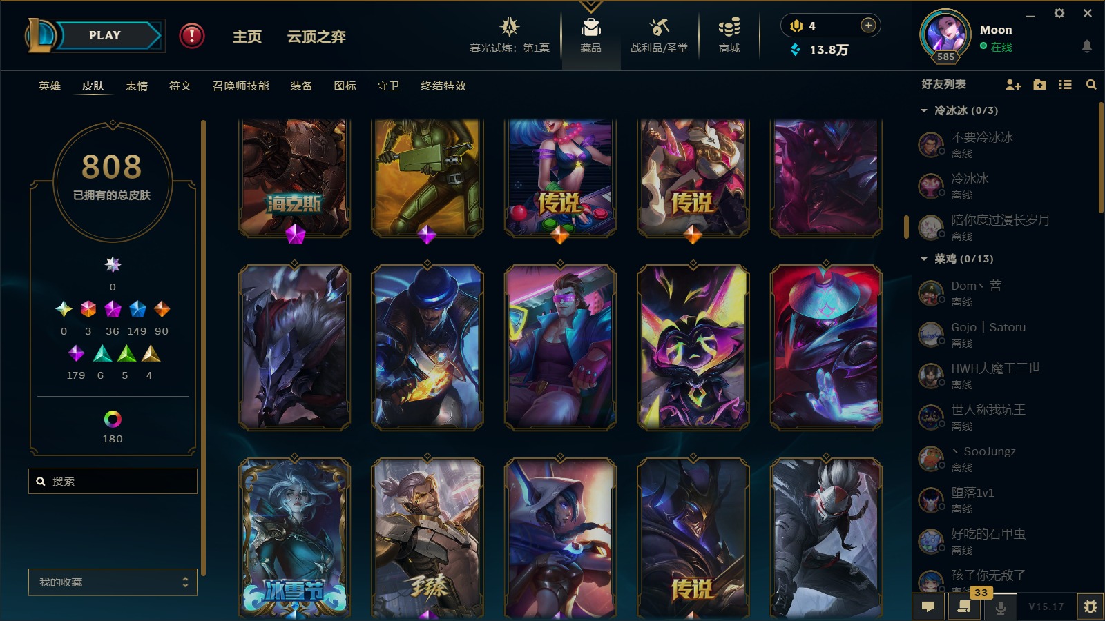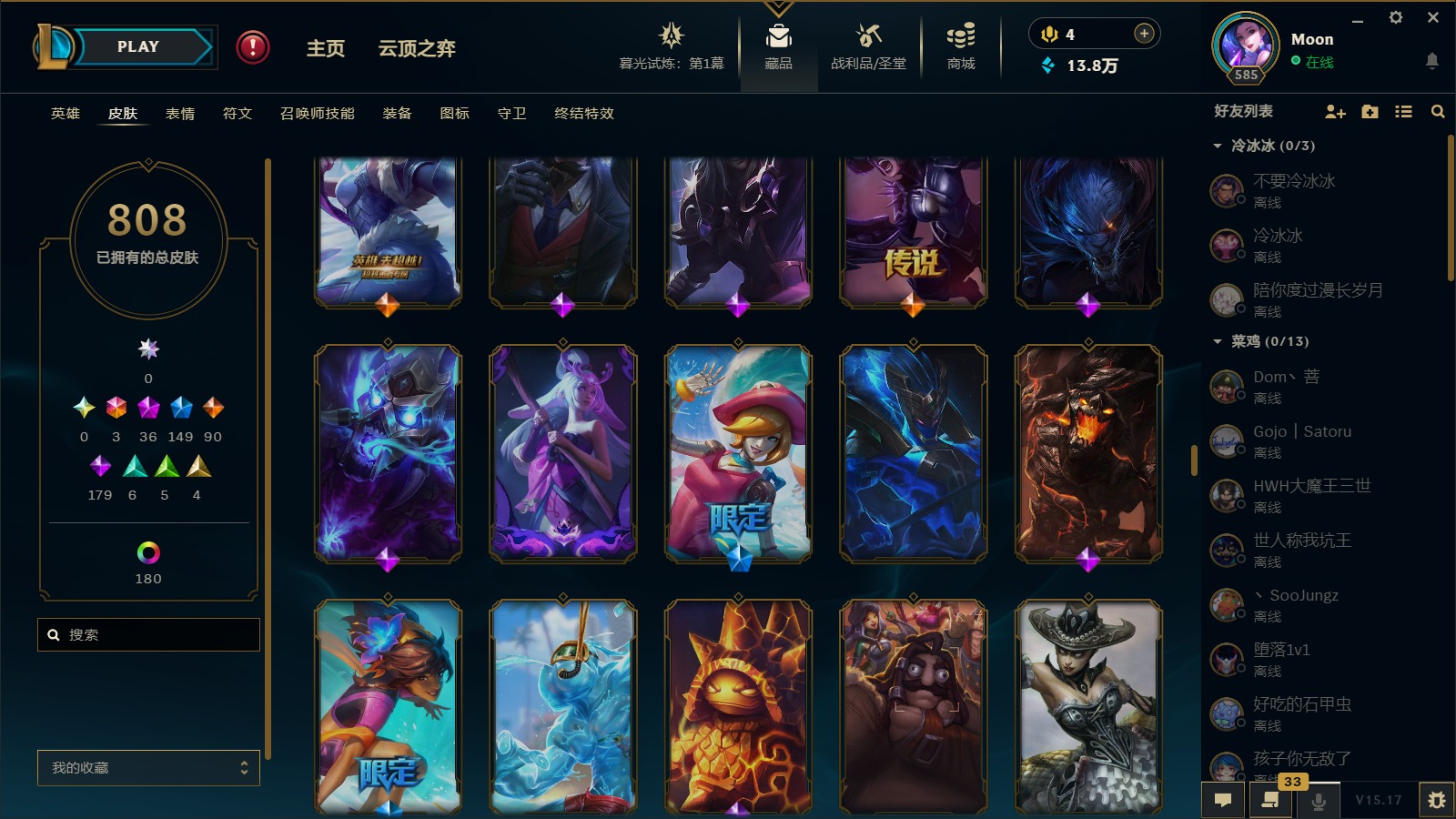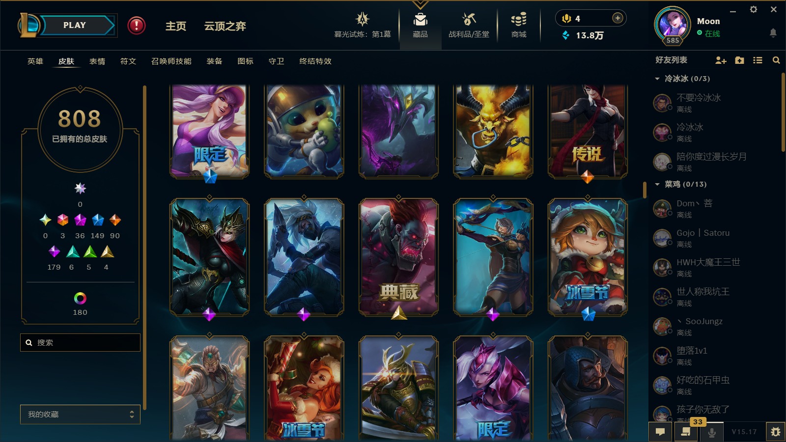 [11714811]3终极 36神话 149限定 90传说 179史诗 808皮肤 214炫彩 171英雄 可二次 可修改实名 优质装备:至臻 源计划:正义 艾瑞莉娅,至臻 腥红之月 亚托克斯,至臻 王国机神玄武 盖伦,至臻 黑夜使者 李青,至臻 绒毛菲兹,至臻 K/DA 卡莎,至臻 暗星 墨菲特,至臻 魔女 婕拉,至臻 女帝 黛安娜,至臻 原计划:逆流 塞拉斯,至臻 战斗学院 蕾欧娜,至臻 征服者 贾克斯,至臻 灵能特工 伊泽瑞尔,至臻 灵魂莲华 提莫,至臻 神龙尊者 炎龙瑟提,至臻 K/DA ALL OUT卡莎,至臻 真实伤害 亚索,至臻 黑夜使者 凯隐,至臻 神龙尊者均衡之龙 沃利贝尔,养蜂人 辛吉德,防爆天使 凯尔,暗影 沃里克,巧克力工坊 波比,地底世界 崔斯特,电玩战魂 人马,都铎王朝 图奇,防爆机器人 布里茨,防爆士兵 格雷福斯,钢铁之翼 凤凰,冠军掠夺者 卡兹克,冠军之矛 滑板鞋,冠军之刃 锐雯 2016,冠军之血 希瓦娜,惊悚派对 阿木木,警用试作体K-9 内瑟斯,克格汪 克格莫,密林猎手 提莫,野兽猎人 德莱文,野兽猎人 泰达米尔,勇者 阿狸,勇者 奈德丽,御魔星矢 寒冰,征服者 韦鲁斯,大元素使,未来战士,K/DA ALL OUT-萨勒芬妮 独立音乐人,灰烬杀手 塞拉斯,2021 全球总决赛 嘉文四世,玉剑传说 无极 白虎,吕布 奉先 炫金战神,泳池派对 奥莉安娜 优雅珠光鲸,神龙尊者 圣龙李青 龙腾云起,张辽 文远 炫金将军,冠军之刃 锐雯 2016 凯旋圣装,霸天战士 雷恩加尔 星啸天火,西部魔影 卢锡安 贝利尔之怠,无畏骑士 瑟庄妮 赤子初心,灵魂莲华 锐雯 流火,外星装甲 库奇,最终BOSS 维迦 里・大魔王,可爱可爱粉红红 布里茨,至臻 黑夜使者 李青(2022),至臻 绒毛 菲兹(2022),至臻 腥红之月 亚托克斯(2022),至臻 绒毛 菲兹,星之守护者 辛德拉 未来之光,净雪之月 莫甘娜 冬虹,墨之影武者 亚索 金墨耀影,水晶圣骑 蕾欧娜,水晶圣骑 艾希,暗星 科加斯,西部魔影 炽天使 永恩,灌篮高手 德莱厄斯 金色神话,心之钢 伊泽瑞尔 天纵才华,魔女 阿卡丽 虚荣,王国机神 白虎 贾克斯 云霄,天龙之子 黛安娜 玉龙舞夜,暗裔英雄 盖伦 至臻:西部魔影 炽天使 永恩,水晶圣骑 艾希,水晶圣骑 蕾欧娜 海克斯:海克斯 嘉文四世,恐惧新星 德莱厄