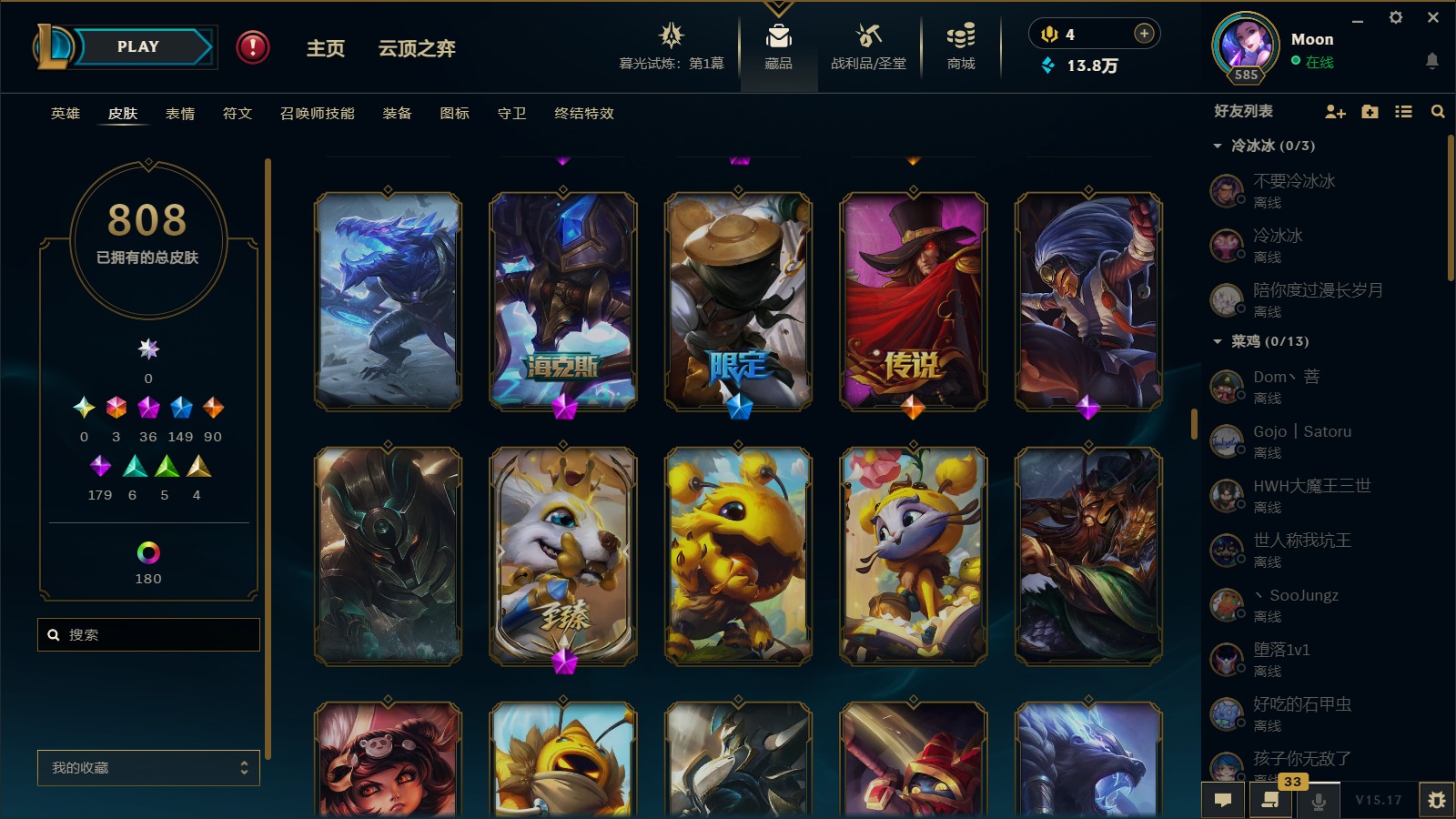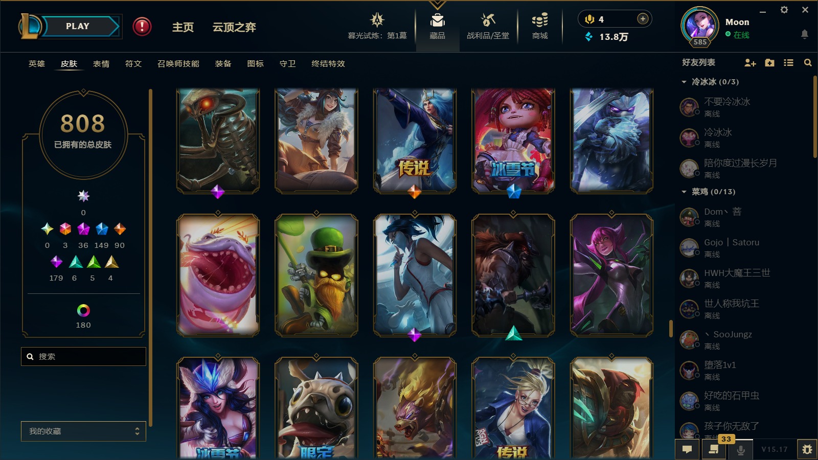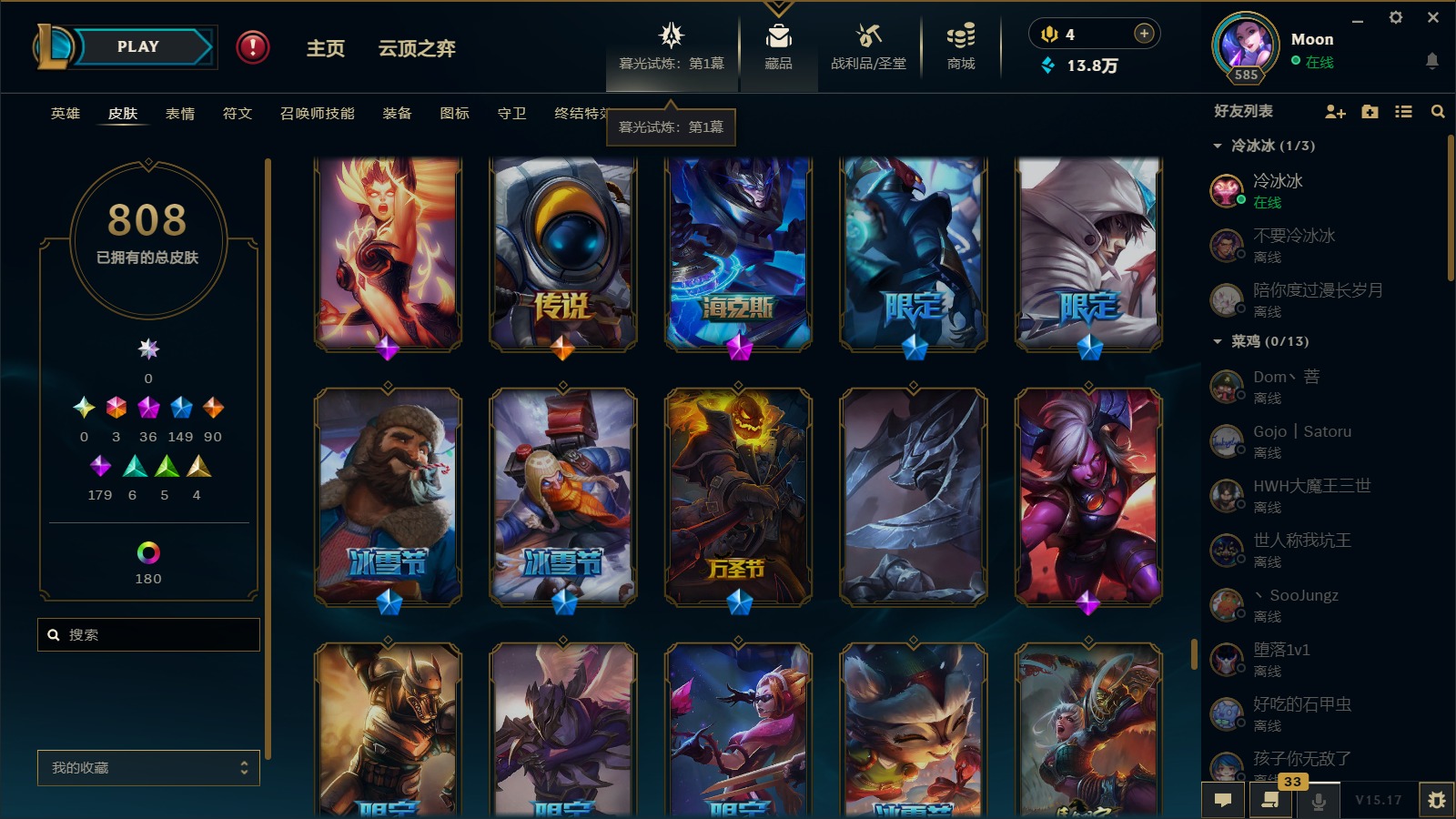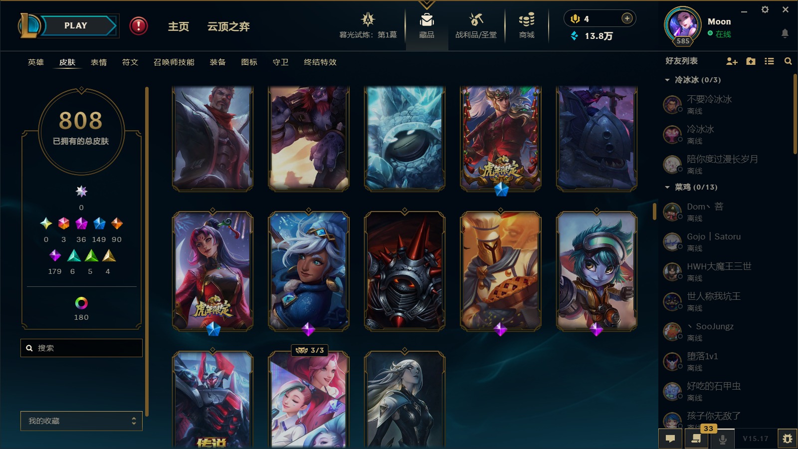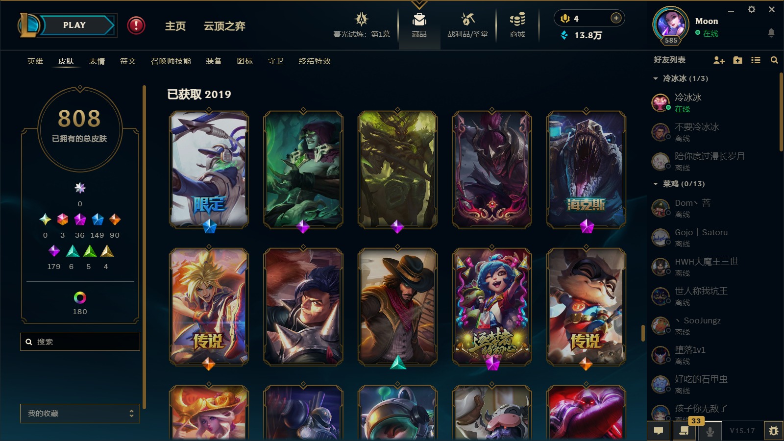 [11714811]3终极 36神话 149限定 90传说 179史诗 808皮肤 214炫彩 171英雄 可二次 可修改实名 优质装备:至臻 源计划:正义 艾瑞莉娅,至臻 腥红之月 亚托克斯,至臻 王国机神玄武 盖伦,至臻 黑夜使者 李青,至臻 绒毛菲兹,至臻 K/DA 卡莎,至臻 暗星 墨菲特,至臻 魔女 婕拉,至臻 女帝 黛安娜,至臻 原计划:逆流 塞拉斯,至臻 战斗学院 蕾欧娜,至臻 征服者 贾克斯,至臻 灵能特工 伊泽瑞尔,至臻 灵魂莲华 提莫,至臻 神龙尊者 炎龙瑟提,至臻 K/DA ALL OUT卡莎,至臻 真实伤害 亚索,至臻 黑夜使者 凯隐,至臻 神龙尊者均衡之龙 沃利贝尔,养蜂人 辛吉德,防爆天使 凯尔,暗影 沃里克,巧克力工坊 波比,地底世界 崔斯特,电玩战魂 人马,都铎王朝 图奇,防爆机器人 布里茨,防爆士兵 格雷福斯,钢铁之翼 凤凰,冠军掠夺者 卡兹克,冠军之矛 滑板鞋,冠军之刃 锐雯 2016,冠军之血 希瓦娜,惊悚派对 阿木木,警用试作体K-9 内瑟斯,克格汪 克格莫,密林猎手 提莫,野兽猎人 德莱文,野兽猎人 泰达米尔,勇者 阿狸,勇者 奈德丽,御魔星矢 寒冰,征服者 韦鲁斯,大元素使,未来战士,K/DA ALL OUT-萨勒芬妮 独立音乐人,灰烬杀手 塞拉斯,2021 全球总决赛 嘉文四世,玉剑传说 无极 白虎,吕布 奉先 炫金战神,泳池派对 奥莉安娜 优雅珠光鲸,神龙尊者 圣龙李青 龙腾云起,张辽 文远 炫金将军,冠军之刃 锐雯 2016 凯旋圣装,霸天战士 雷恩加尔 星啸天火,西部魔影 卢锡安 贝利尔之怠,无畏骑士 瑟庄妮 赤子初心,灵魂莲华 锐雯 流火,外星装甲 库奇,最终BOSS 维迦 里・大魔王,可爱可爱粉红红 布里茨,至臻 黑夜使者 李青(2022),至臻 绒毛 菲兹(2022),至臻 腥红之月 亚托克斯(2022),至臻 绒毛 菲兹,星之守护者 辛德拉 未来之光,净雪之月 莫甘娜 冬虹,墨之影武者 亚索 金墨耀影,水晶圣骑 蕾欧娜,水晶圣骑 艾希,暗星 科加斯,西部魔影 炽天使 永恩,灌篮高手 德莱厄斯 金色神话,心之钢 伊泽瑞尔 天纵才华,魔女 阿卡丽 虚荣,王国机神 白虎 贾克斯 云霄,天龙之子 黛安娜 玉龙舞夜,暗裔英雄 盖伦 至臻:西部魔影 炽天使 永恩,水晶圣骑 艾希,水晶圣骑 蕾欧娜 海克斯:海克斯 嘉文四世,恐惧新星 德莱厄