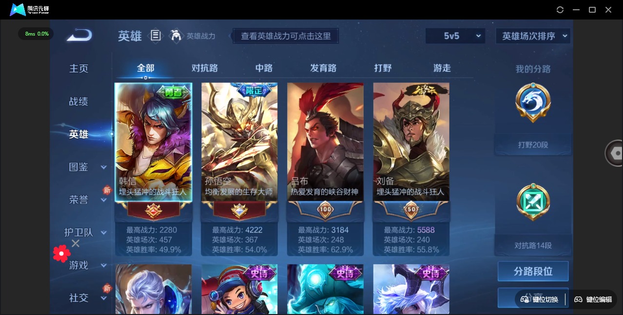 - [12062771]V8 1典藏 15传说 125英雄 362皮肤 可修改实名 优质装备:九霄神辉(木兰典藏),黄金射手座,云鹰飞将(小将军),炽阳神光,一念神魔,地狱火,地狱之眼,末日机甲-孙策,浮生妄,澜逐花归海,涂山容容 传说皮:乘龙·淬吴钩(孙策年限),云诺千山 珍宝阁皮:万物之道,优雅恋人,女武神 限定皮:愿照·山河定(司空震年限),逐霄战戟,鸣野蒿,至尊宝,高山流水,怒海麟威,五谷丰年,青龙志(铠年限),游园惊梦,梁祝,天狼狩猎者,虎魄,奔雷神使(牛魔年限),李小龙,玉兔公主 史诗皮:鸭鸭历险记-刘禅,化蝶舞,灵蛊蚀心,星界战将,龙之律动,茶境仙,破空之剑,东方月初,蒙犽顽岩魄,蔬乡物语(鲁班七号),百相守梦-百里守约,百相守梦-黄忠,紫霞仙子,白龙吟,黄金分割率,特工魅影,千年之狐,江河有灵,雪夜绮愿(周瑜),魅语,百解令(蒙犽),蒙恬荣光圣徽,冰冠公主,偶像歌手,电玩·爆裂旋风,龙骑士(小龙虾),末日机甲-吕布,猫狗日记-孙策,猫狗日记-大乔,乱世虎臣,节奏热浪,修罗,女仆咖啡,摇滚巨星,水果甜心,绅士熊喵,天才门将,星夜王子,心灵骇客,功夫厨神,德古拉伯爵,暗隐猎兽者,幽灵船长,鬼剑武藏,暗渊魔法,心灵战警,乐园奇幻夜,舞动绿茵,地狱岩魂,纤云弄巧,繁星吟游(呼啦呼啦),拒霜思,缤纷独角兽,乘风破浪,逐浪之夏,月团寄思,水晶猎龙者,曙光守护者,箭羽风息,金属风暴,原初追逐者,圣诞狂欢,圣诞恋歌,鹰眼统帅,王者之锤,暗夜贵公子,魅力维加斯,黎明之约,雪上飞焰,未来纪元-赵云