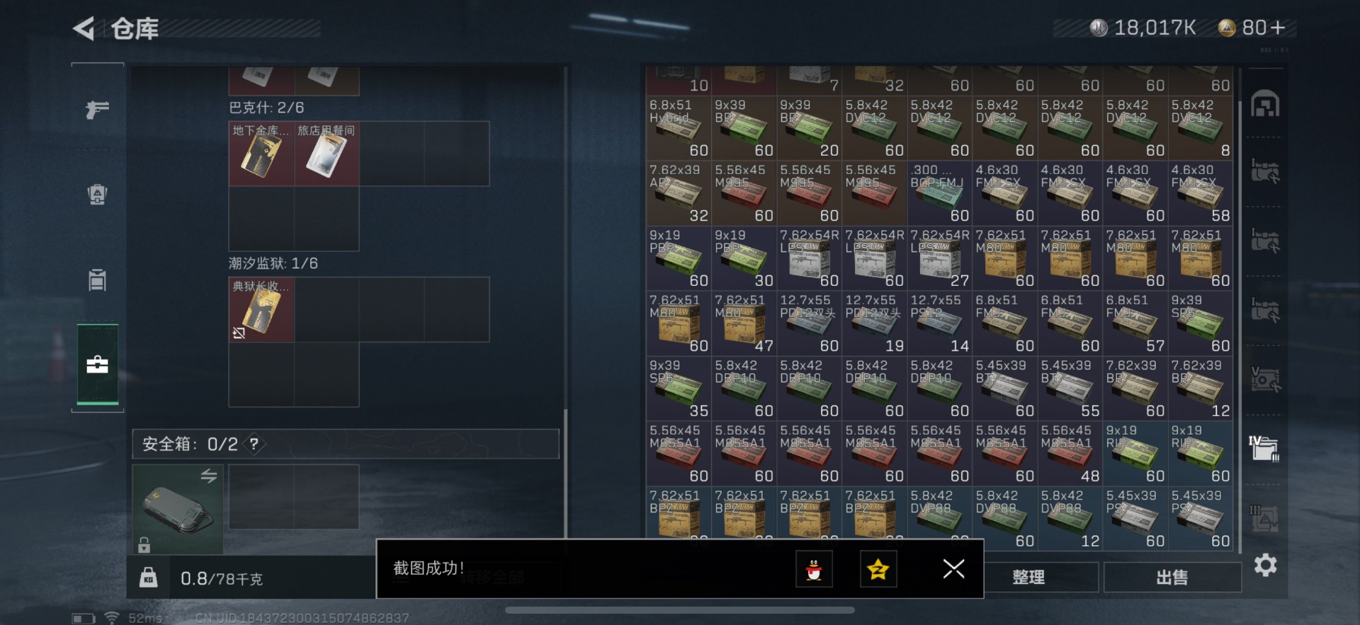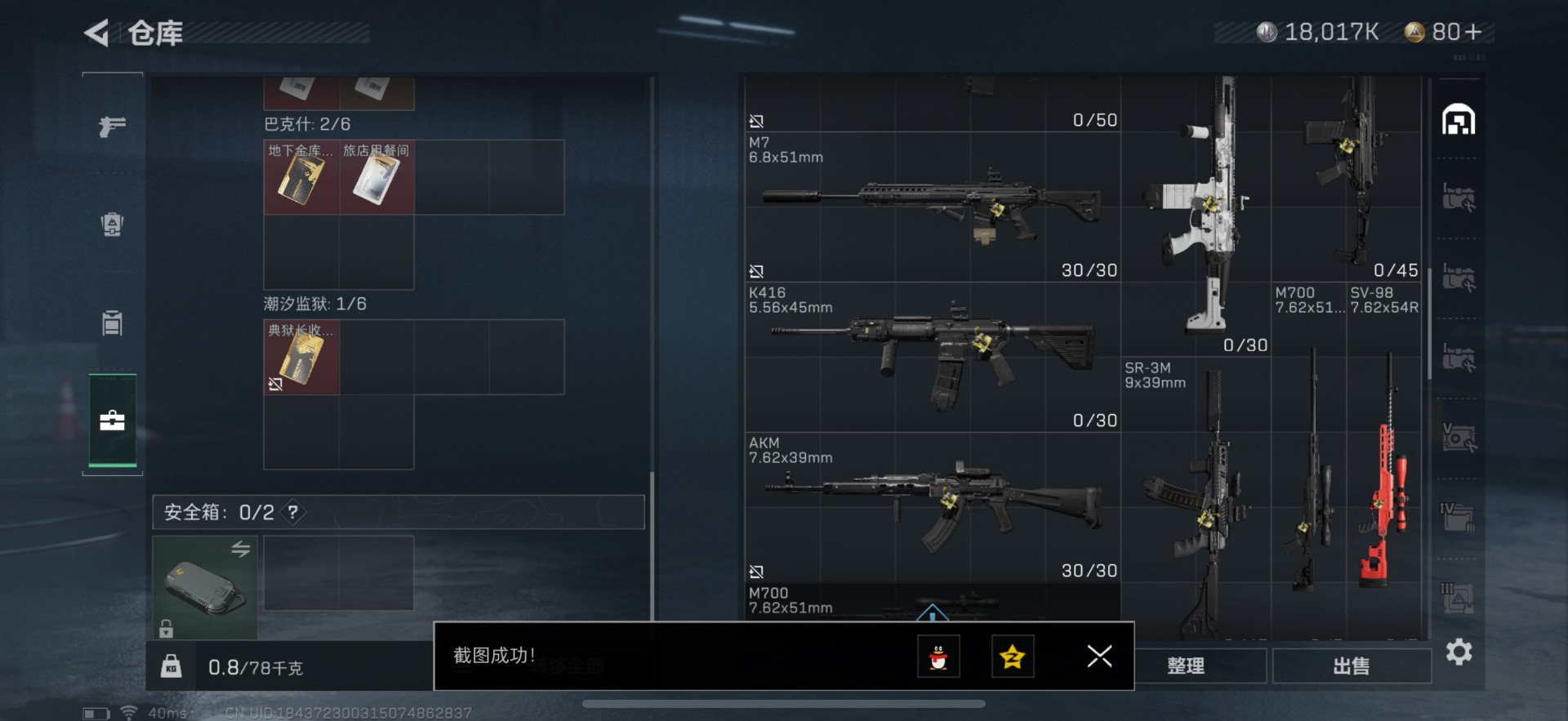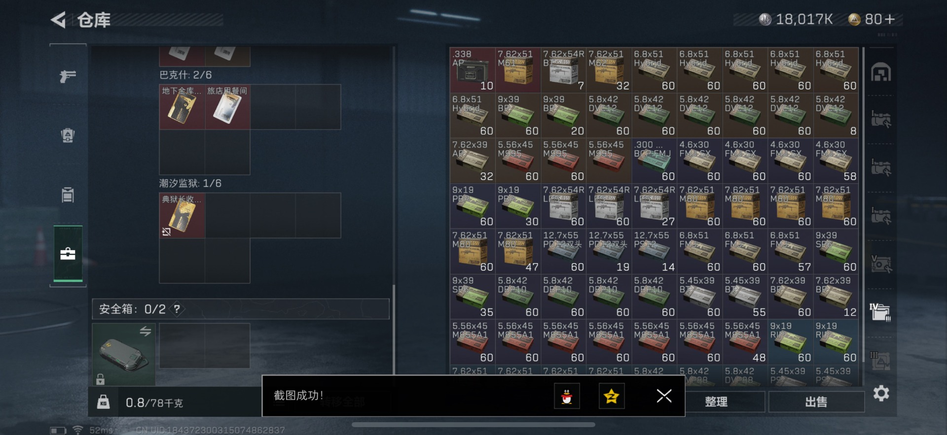 [11715919]总资产:82.4M 5传说枪械 哈夫币:18.017K 可二次 可修改实名 烽火地带段位:黄金 全面战场段位:无段位 传说武器皮肤:AWM狙击步枪-捞点薯条,腾龙突击步枪-捞点薯条,93R-捞点薯条,勇士冲锋枪-能天使-午夜邮差,复合弓-黑-天际线 史诗武器皮肤:PKM通用机枪-蝮蛇,M1014霰弹枪-林中猎手,AKM突击步枪-林中猎手,M250通用机枪-囚徒,SV-98狙击步枪-林中猎手,QBZ95-1突击步枪-曙光,S12K霰弹枪-曙光,P90冲锋枪-紧急戒备