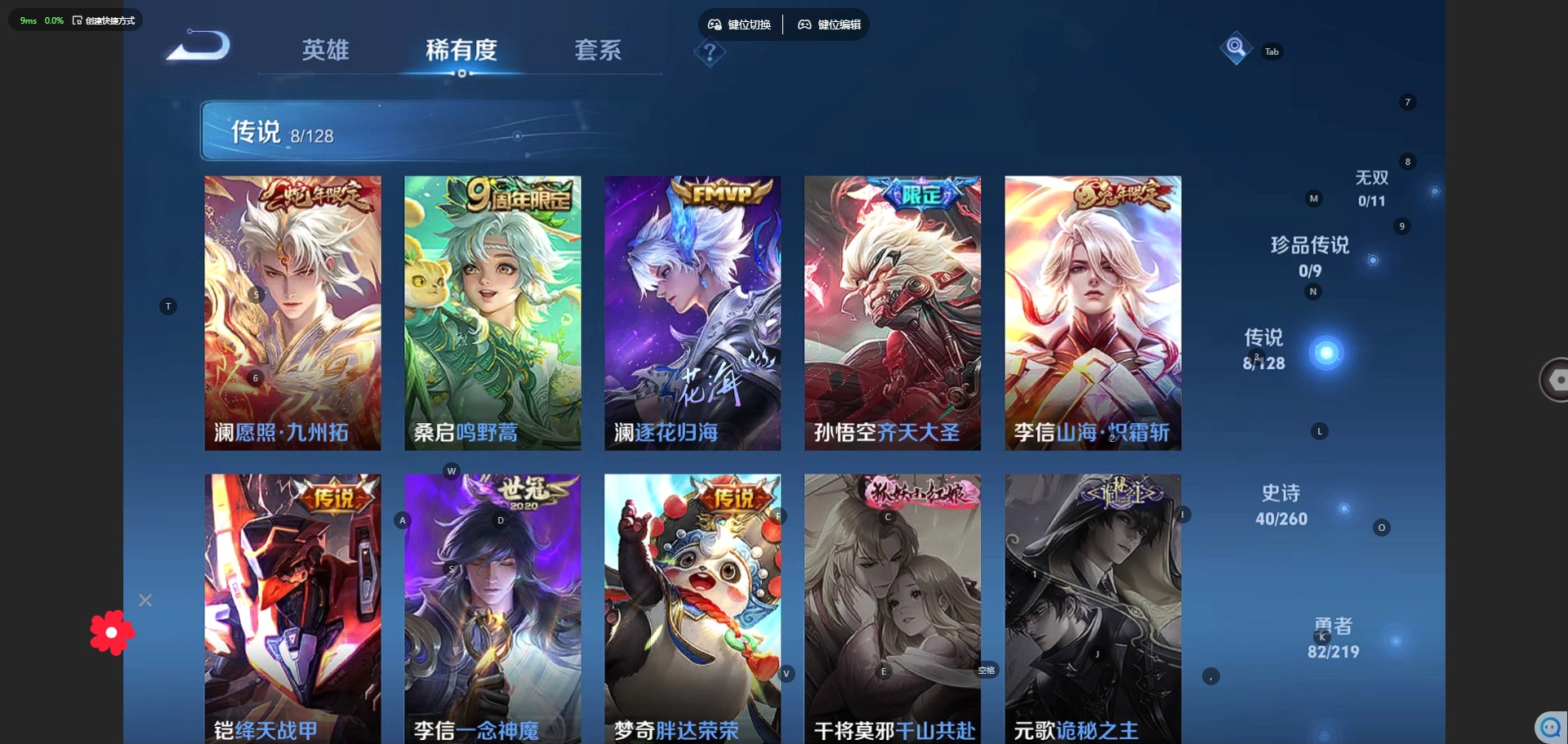 - [12113073]V8 1典藏 1无双 24传说 125英雄 224皮肤 可修改实名 优质装备:鸣剑·曳影,器灵·螭龙剑,黄金射手座,冠军飞将,云鹰飞将(小将军),一念神魔,仲夏夜之梦(大飞蛾),零号·赤焰,地狱之眼,时之恋人-刘备(电焊工),淬星耀世,末日机甲-孙策,霜月吟,澜逐花归海,云中君群星魔术团,涂山容容 传说皮:典韦战鼓燎原,死亡执政官,祥瑞亨通 珍宝阁皮:妄想食味,胡桃夹子,女武神 限定皮:愿照·九州拓(澜年限),逐霄战戟,鸣野蒿,至尊宝,补天,高山流水,诗剑行,怒海麟威,五谷丰年,游园惊梦,梁祝,李小龙,孙行者,无尽星芒,枫霜尽 史诗皮:赞萌露比,鸭鸭历险记-刘禅,瑰影绮梦,化蝶舞,谪仙醉月,龙之律动,破空之剑,蔬乡物语(鲁班七号),星界特工,织梦人,紫霞仙子,电玩小子(小书包),白龙吟,黄金分割率,特工魅影,千年之狐,江河有灵,魅语,百解令(蒙犽),冰冠公主,偶像歌手,末日机甲-吕布,女仆咖啡,摇滚巨星,水果甜心,心灵骇客,时之奇旅-安琪拉,功夫厨神,德古拉伯爵,暗隐猎兽者,幽灵船长,鬼剑武藏,地狱岩魂,纤云弄巧,繁星吟游(呼啦呼啦),拒霜思,乘风破浪,水晶猎龙者,曙光守护者,金属风暴,原初追逐者,圣诞狂欢,鹰眼统帅,魅力维加斯,赏金猎手,无心,未来纪元-赵云