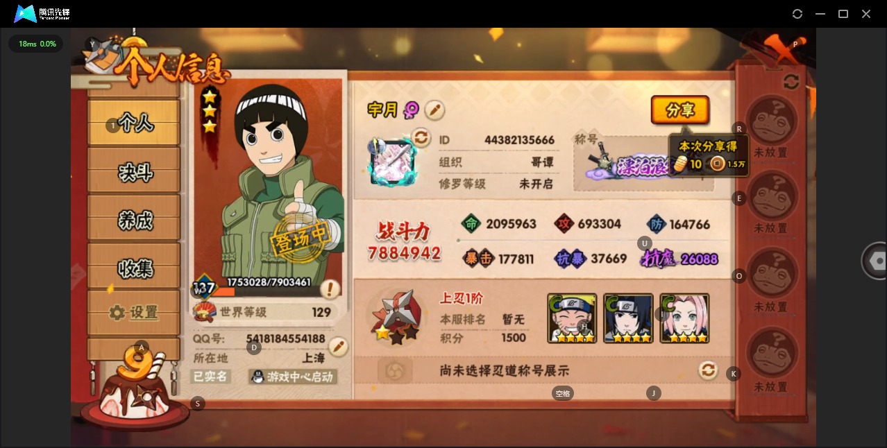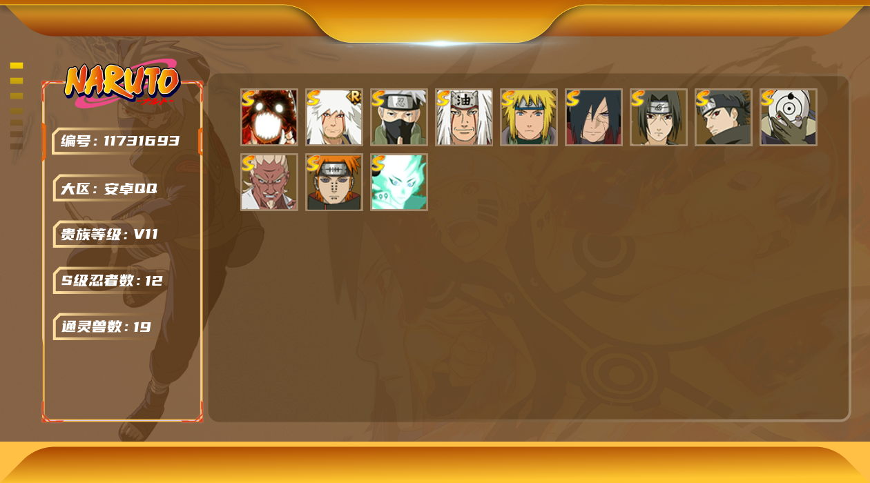 [11731693]V11 12S忍 25A忍 19通灵 788.4W战力 可二次 可修改实名 优质装备:熊猫,“宇智波斑” 「白面具」,宇智波斑「秽土转生·解」,艾「忍界大战」,宇智波止水「须佐能乎」,旗木卡卡西「须佐能乎」,大筒木舍人 「最终章」,漩涡鸣人 「暴怒·第六尾」 S级忍者:自来也 「舞之豪杰」,宇智波鼬 「须佐能乎」,佩恩「天道」,波风水门,自来也