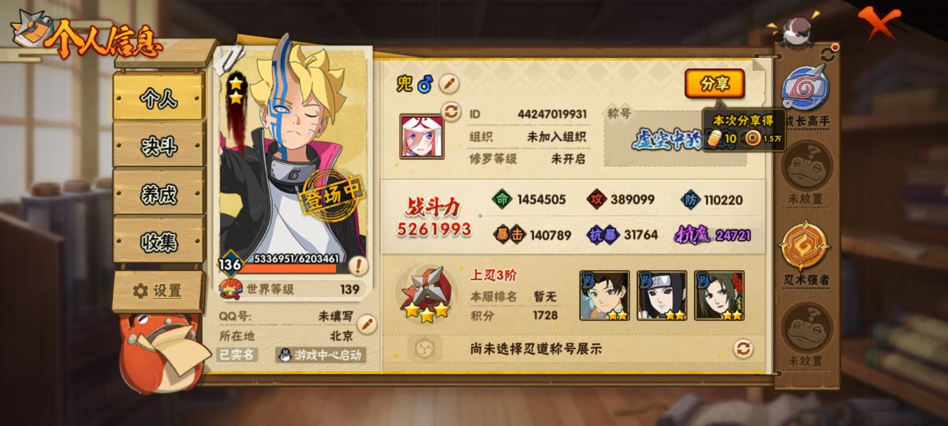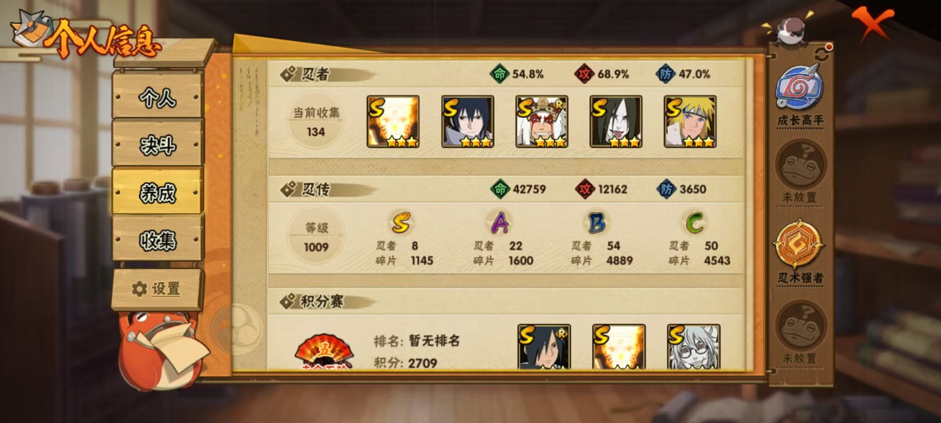 [11734165]V10 8S忍 22A忍 14通灵 526.1W战力 可二次 可修改实名 优质装备:宇智波鼬「秽土转生」,药师兜「仙人模式」,宇智波斑 「木叶创立」,漩涡鸣人 「九喇嘛连结」,宇智波佐助「永恒万花筒」 S级忍者:自来也 「舞之豪杰」,波风水门,大蛇丸