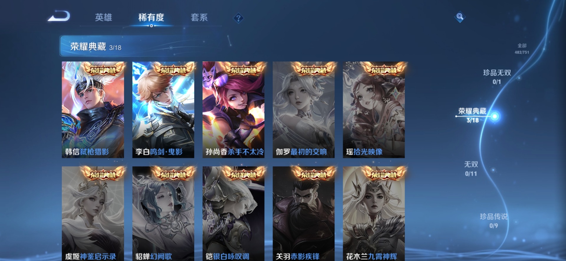 大乔白蛇,大乔猫狗日记,高渐离燃音魔法,大乔乘龙·忆丹青,刘邦德古拉伯爵,夏侯惇乘风破浪,阿轲暗夜猫娘,阿轲节奏热浪,沈梦溪匿光破解者,铠曙光守护者,曹操幽灵船长,伽罗箭羽风息,廉颇地狱岩魂,伽罗琥珀纪元,小乔缤纷独角兽,小乔青蛇,孙尚香时之恋人,孙策猫狗日记,不知火舞魅语,鲁班七号电玩小子,项羽苍穹之光,吕布圣诞狂欢,吕布末日机甲,露娜紫霞仙子,周瑜雪夜绮愿,诸葛亮黄金分割率,刘禅电玩·爆裂旋风,司马懿暗渊魔法,刘禅天才门将,刘禅绅士熊喵,姜子牙闲日渔趣,宫本武藏鬼剑武藏,杨玉环银翎春语,公孙离无限星赏官,兰陵王暗隐猎兽者,貂蝉圣诞恋歌,貂蝉唤灵魅影,花木兰水晶猎龙者,夏洛特永昼,李白千年之狐,蒙犽龙鼓争鸣,安琪拉心灵骇客,蒙犽百解令,西施诗语江南,白起星夜王子,亚瑟心灵战警,嬴政摇滚巨星,嬴政暗夜贵公子,程咬金功夫厨神,百里玄策热力回旋,百里玄策原初追逐者,雅典娜冰冠公主,雅典娜黎明之约,韩信白龙吟,李元芳逐浪之夏,百里守约特工魅影,墨子龙骑士,墨子金属风暴,蔡文姬舞动绿茵,瑶遇见神鹿,澜赏金猎手,弈星滕王阁序,娜可露露晚萤,王昭君偶像歌手,嫦娥拒霜思,钟馗乐园奇幻夜,橘右京修罗