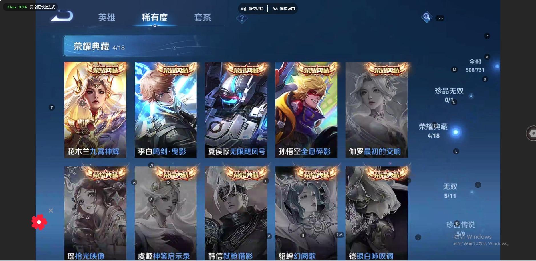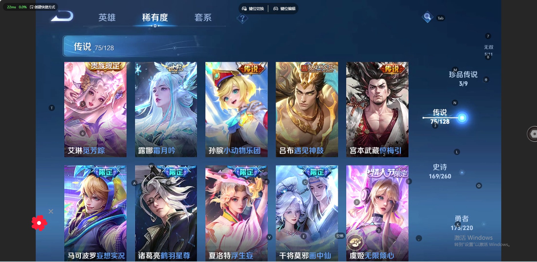 - [12223971]V6 1典藏 1传说 123英雄 214皮肤 可修改实名 优质装备:幻阙歌(貂蝉典藏) 珍宝阁皮:蔷薇恋人,玩趣恶龙 限定皮:逐霄战戟,鸣野蒿,高山流水,五谷丰年,梁祝,天狼溯光者,李小龙,如梦令-后羿,大圣娶亲,时之祈愿-云中君 史诗皮:器灵·浮梦炉,黄金分割率,特工魅影,冰冠公主,江河有灵,百解令(蒙犽),偶像歌手,末日机甲-吕布,节奏热浪,水果甜心,天才门将,星夜王子,心灵骇客,功夫厨神,德古拉伯爵,暗隐猎兽者,幽灵船长,鬼剑武藏,舞动绿茵,纤云弄巧,拒霜思,缤纷独角兽,乘风破浪,逐浪之夏,水晶猎龙者,金属风暴,圣诞狂欢,鹰眼统帅,王者之锤,无心,未来纪元-赵云
