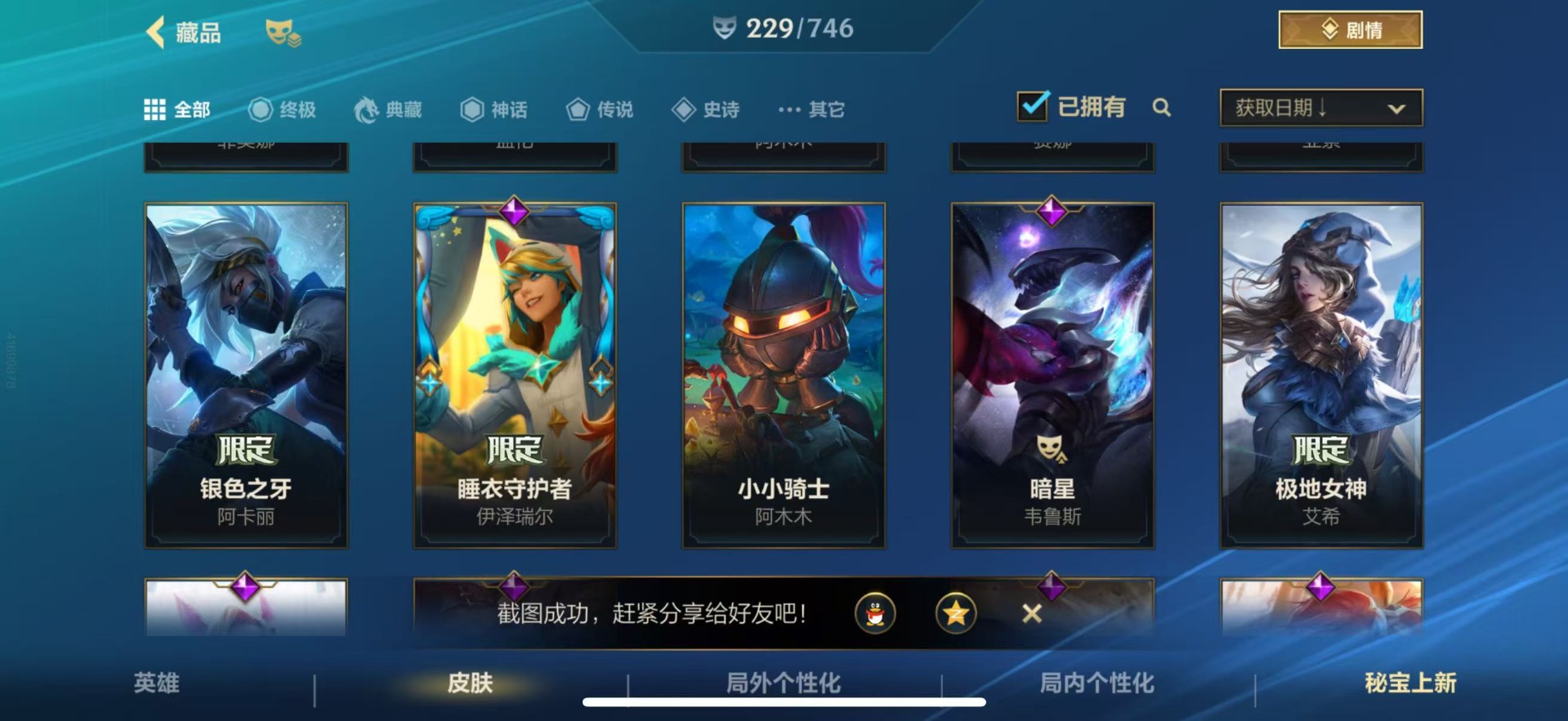 - PX_2096471-安卓QQ 111皮 贵族1级 1典藏 2珍品传说 5传说 34史诗【荣耀典藏】弑枪猎影【珍品传说】怪盗基德,江户川柯南【传说皮肤】诗剑行,白虎志,遇见胡旋,淬星耀世,炽阳神光【史诗皮肤】暗隐猎兽者,天才门将,魅力维加斯,晚萤,水果甜心,孙行者,猫狗日记,时之奇旅,缤纷独角兽,逐浪之夏,千年之狐,谪仙醉月,赏金猎手,魔术师,鹰眼统帅,百相守梦,胡桃异想国,航海奇遇记,默契交锋,
