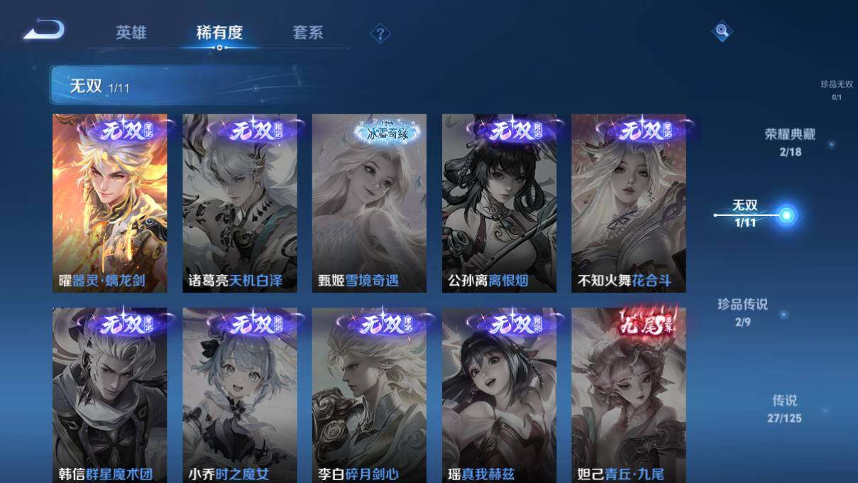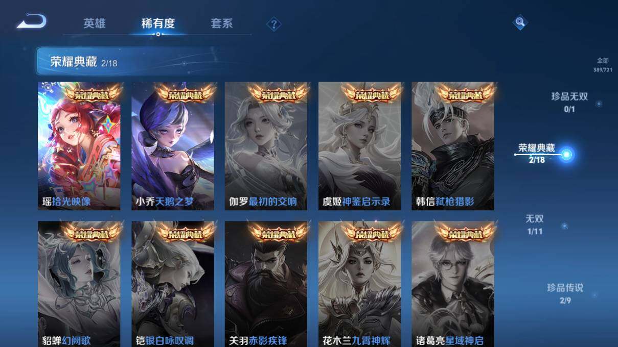 - PX_2111818-Q/至圣王者/257皮肤/124英雄/1典藏/1珍品无双/4无双/4珍品传说/16传说/72史诗/8稀有英雄 【1 珍品无双】馥梦繁花, 【4 珍品传说】酷洛米之心 安琪拉,朽木白哉 暃,黑崎一护 宫本武藏,怪盗基德 马可波罗, 【1 典藏皮肤】幻阙歌 貂蝉, 【4 无双皮肤】天机白泽 诸葛亮,时之魔女 小乔,青丘·九尾 妲己,花合斗 不知火舞, 【16 传说皮肤】启明星使