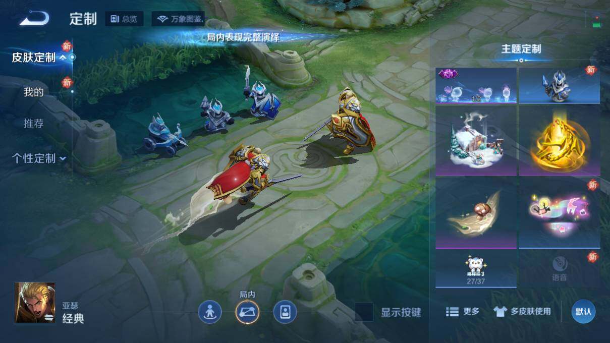 干将莫邪久胜战神,铠绛天战甲,貂蝉猫影幻舞,曜云鹰飞将,镜炽阳神光,虞姬云霓雀翎,李信一念神魔,小乔音你心动,周瑜音你心动,孙悟空零号·赤焰,曜李逍遥,典韦战鼓燎原,裴擒虎祥瑞亨通,云缨幻光神枪