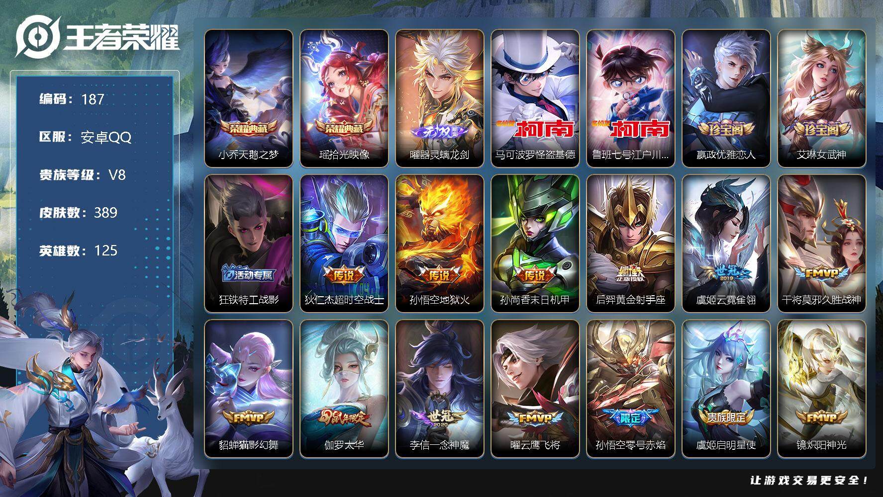 [11735976]【商品标题】:安卓Q-V8-永恒钻石I段位-125英雄-389皮肤-2典藏-0珍品无双-1无双-2珍品传说-27传说-109史诗