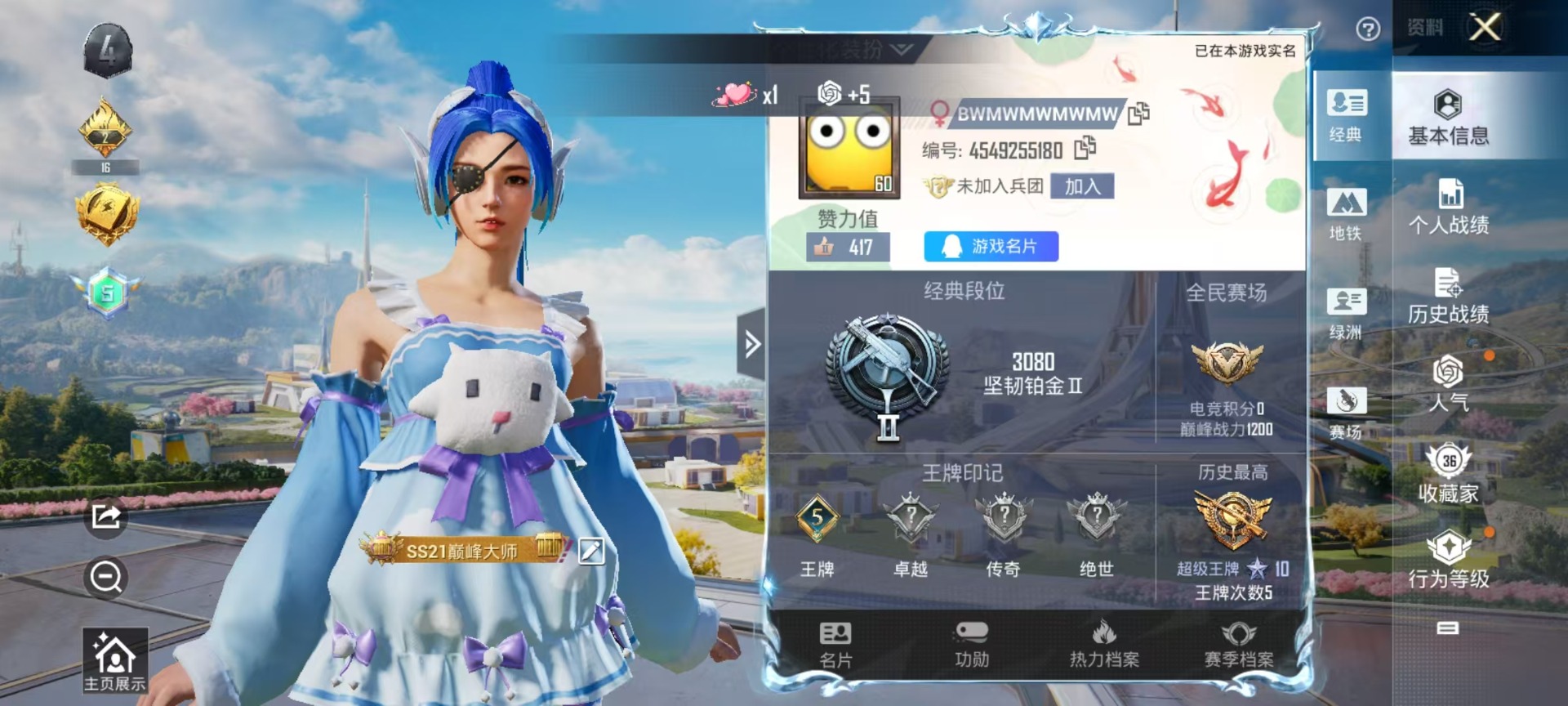 - PX_2091299-实名: 可修改 贵族等级: V4 英雄数: 69 皮肤数: 33 传说皮: 浮生妄,澜逐花归海