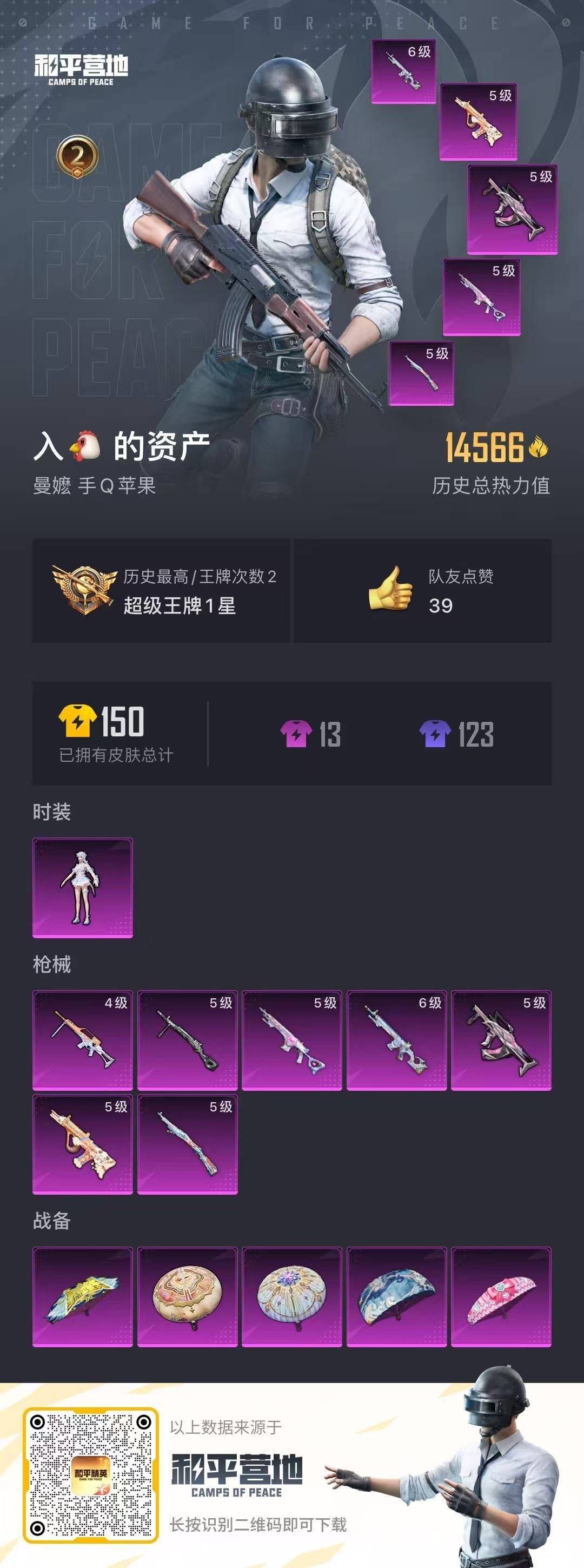 - PX_2094938- 苹果手Q-8王牌印记-4粉装-9特效枪-1载具-61888热力值-142套装-184枪皮-1卓越印记-0传奇印记 【4粉装】,放客神游,星穹咏叹调,千金淑猫,月影灵韵 【9特效枪】AKM-幽焰骑士-3级 M416-墨龙九天-3级 GROZA-镜光银凌-5级 AUG-暖羊咩咩-5级 Kar98K-巳巳如意-5级 M24-镜域双华-3级 SVD-月影灵韵-5级 DP-28-千金