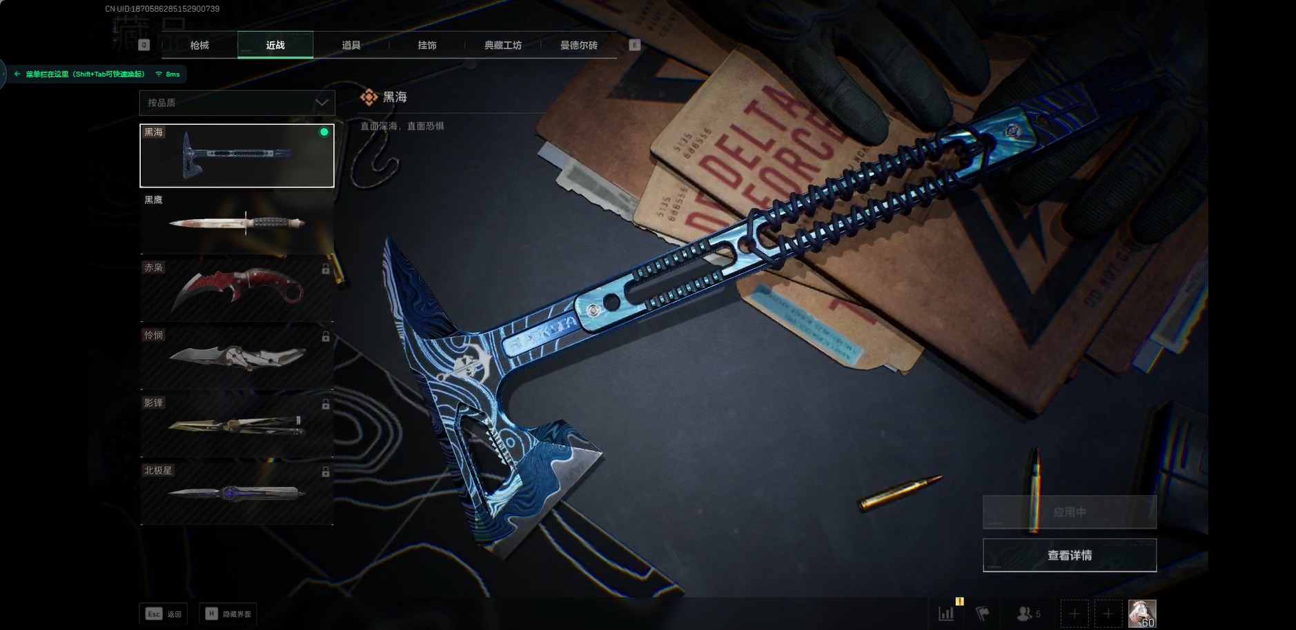 [11679274]总资产:153.6M 1近战传说 1传说枪械 哈夫币:14.663K 可二次 可修改实名 优质装备:近战-黑海 烽火地带段位:无段位 全面战场段位:无段位
