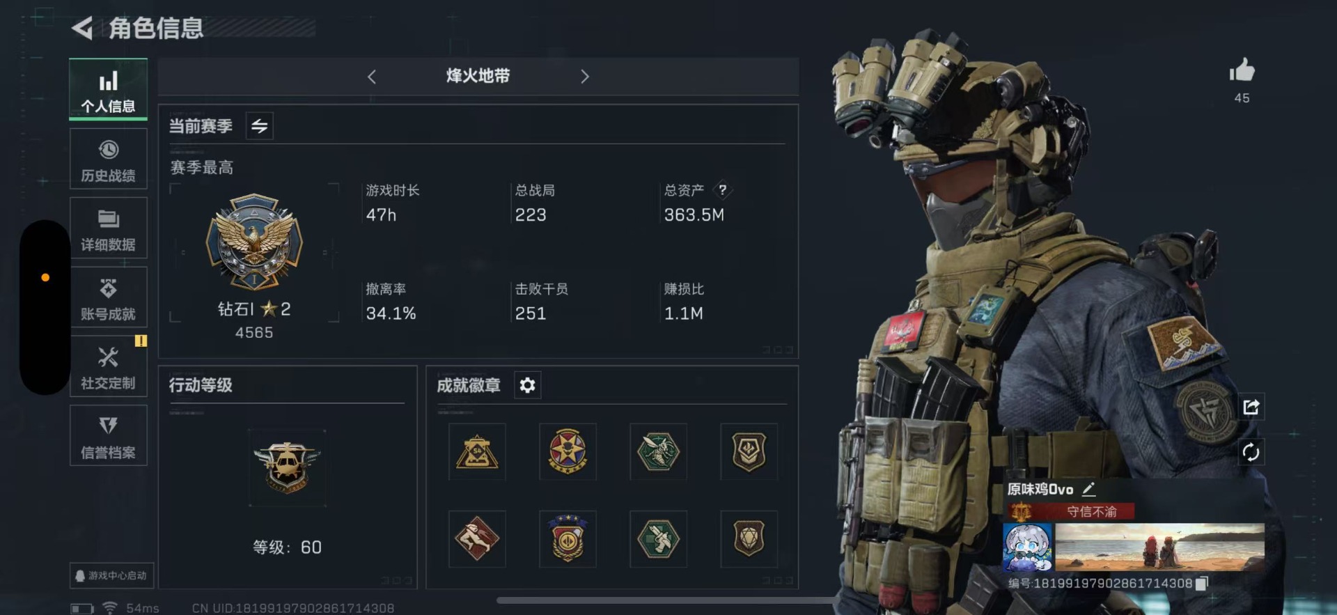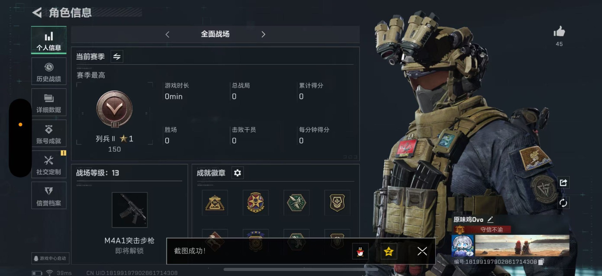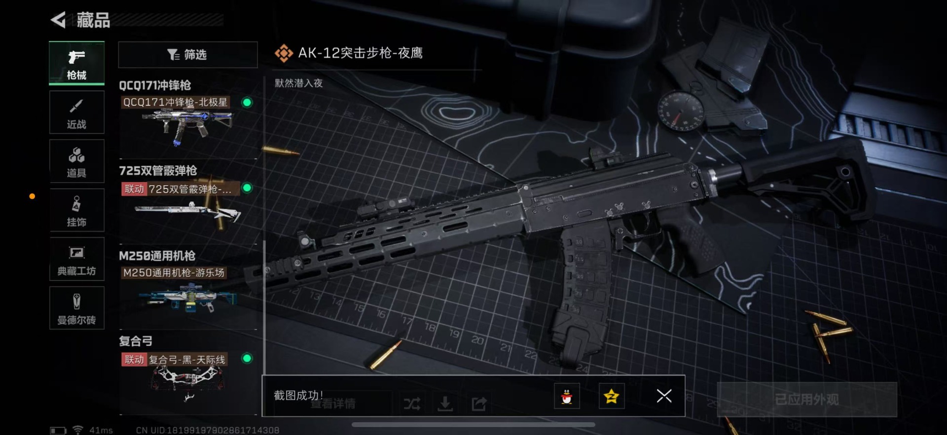 - [11573689]总资产:150.2M 9传说枪械 哈夫币:116K 进阶安全箱(9.16到期) 可二次 可修改实名 烽火地带段位:黄金 全面战场段位:无段位 传说武器皮肤:M16A4突击步枪-狩猎时刻,AWM狙击步枪-捞点薯条,腾龙突击步枪-捞点薯条,93R-捞点薯条,勇士冲锋枪-能天使-午夜邮差,Vector冲锋枪-狩猎时刻,G3战斗步枪-狩猎时刻,复合弓-黑-天际线,M4A1突击步枪-阿米娅 史诗武器皮肤:AUG突击步枪-蝮蛇,QJB201轻机枪-Old Habits,SV-98狙击步枪-囚徒