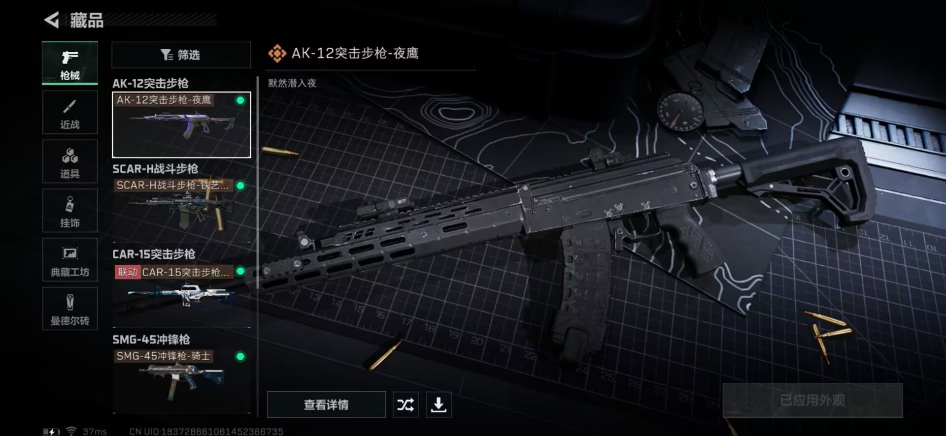 [11632767]总资产:194.1M 3传说枪械 哈夫币:30.880K 可二次 可修改实名 烽火地带段位:黑鹰 全面战场段位:上等兵 传说武器皮肤:SCAR-H战斗步枪-铁艺苍穹,SMG45冲锋枪-骑士,AK-12突击步枪-夜鹰
