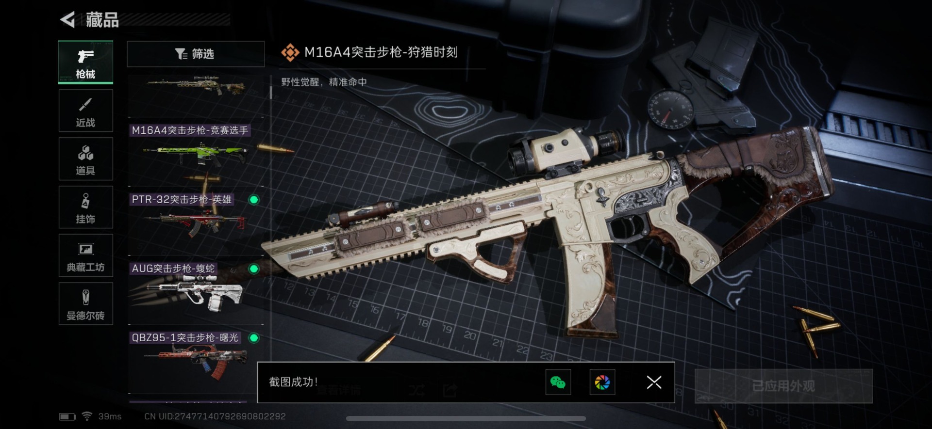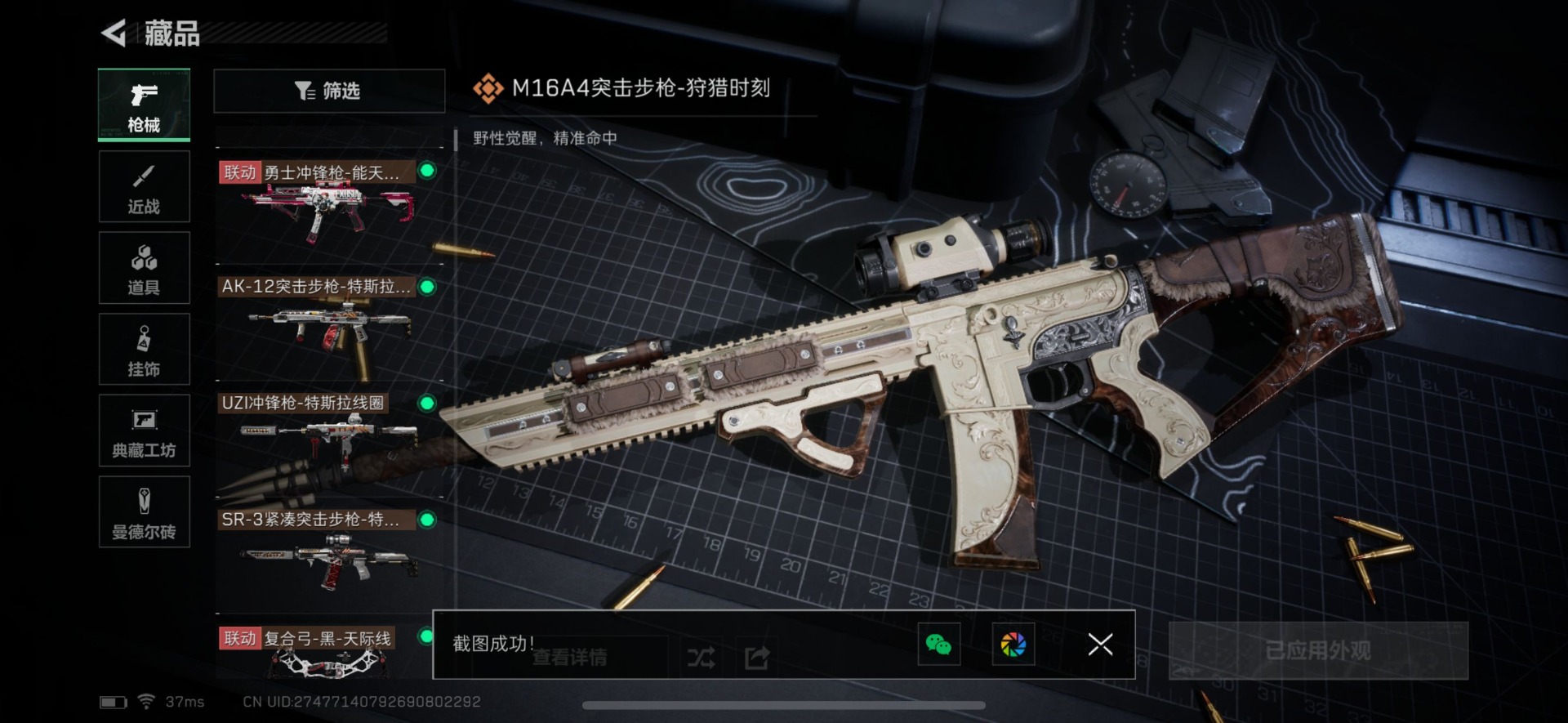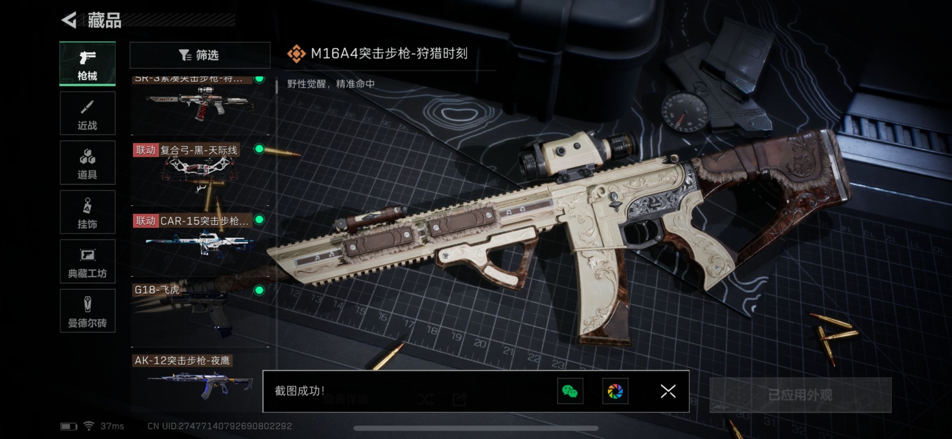 - [11526144]总资产:100.9M 1干员外观 6传说枪械 哈夫币:81.743K 进阶安全箱(2×2)9.15号到期 可二次 可修改实名 烽火地带段位:白银 全面战场段位:无段位 传说武器皮肤:M16A4突击步枪-狩猎时刻,CAR-15突击步枪-阿米娅,复合弓-黑-天际线,Vector冲锋枪-狩猎时刻,G3战斗步枪-狩猎时刻,勇士冲锋枪-能天使-午夜邮差 干员外观:露娜-黑·天际线