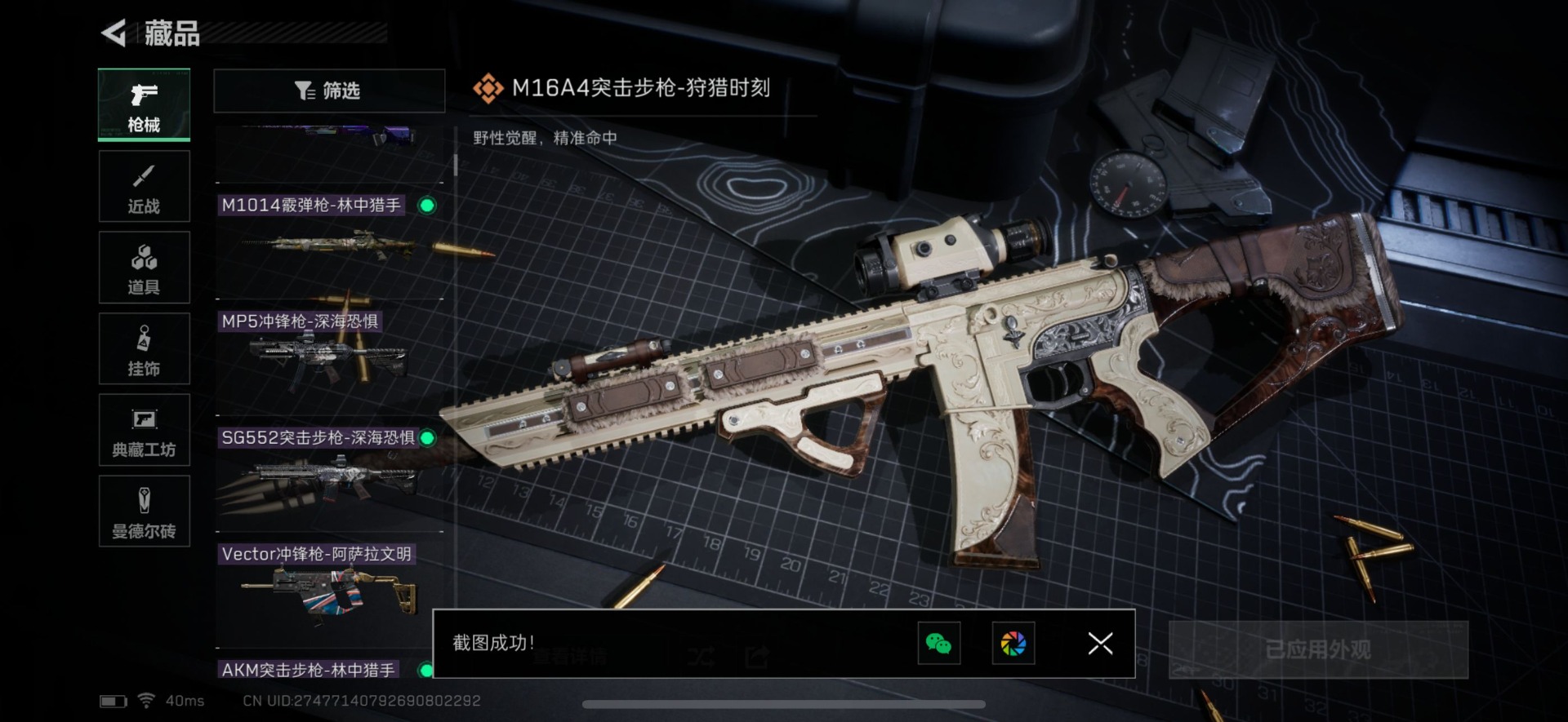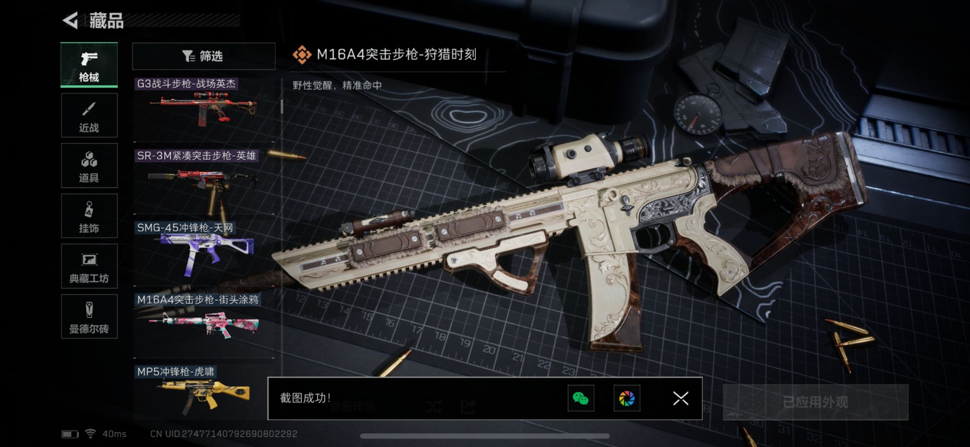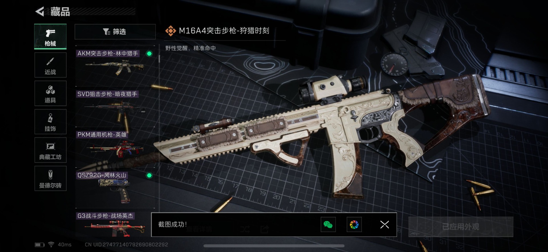 - [11526144]总资产:100.9M 1干员外观 6传说枪械 哈夫币:81.743K 进阶安全箱(2×2)9.15号到期 可二次 可修改实名 烽火地带段位:白银 全面战场段位:无段位 传说武器皮肤:M16A4突击步枪-狩猎时刻,CAR-15突击步枪-阿米娅,复合弓-黑-天际线,Vector冲锋枪-狩猎时刻,G3战斗步枪-狩猎时刻,勇士冲锋枪-能天使-午夜邮差 干员外观:露娜-黑·天际线