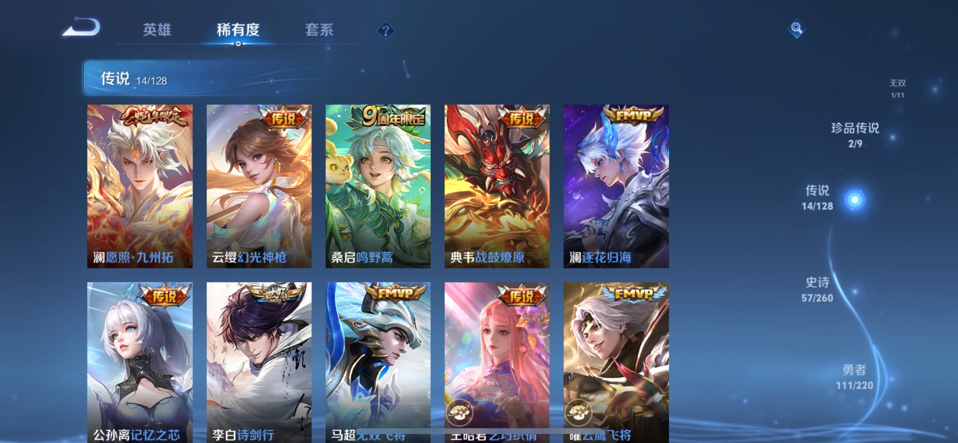 - [11624670]V8 2典藏 16传说 123英雄 330皮肤 可修改实名 优质装备:全息碎影(猴子典藏),弑枪猎影(韩信典藏),黄金狮子座,久胜战神,一念神魔,地狱火,仲夏夜之梦(大飞蛾),零号·赤焰,淬星耀世,无双飞将,浮生妄 传说皮:祥瑞亨通 珍宝阁皮:优雅恋人,蔷薇恋人 限定皮:愿照·九州拓(澜年限),逐霄战戟,鸣野蒿,傲雪梅枪,飞衡(韩信年限),玄嵩(庄周年限),诗剑行,五谷丰年,青龙志(铠年限),武圣,梁祝,御风骁将(吕布年限),天狼狩猎者,烈魂,李小龙,朱雀志(守约年限),默契交锋-花木兰,孙行者,一生所爱,引擎之心,青春决赛季,云端筑梦师,美猴王,寅虎·御盾(廉颇年限),寅虎·赤拳(老虎年限),山海·玄木吟(马可年限) 史诗皮:鸭鸭历险记-刘禅,器灵·浮梦炉,化蝶舞,星界战将,龙之律动,茶境仙,破空之剑,蒙犽顽岩魄,炽弈燎原,百相守梦-黄忠,紫霞仙子,电玩小子(小书包),黄金分割率,特工魅影,千年之狐,电玩·爆裂旋风,鹤归松栖(赵怀真),末日机甲-莱西奥,江河有灵,雪夜绮愿(周瑜),百解令(蒙犽),蒙恬荣光圣徽,偶像歌手,冰冠公主,末日机甲-吕布,猫狗日记-孙策,时之恋人-孙尚香,乱世虎臣,修罗,女仆咖啡,摇滚巨星,水果甜心,绅士熊喵,天才门将,星夜王子,心灵骇客,功夫厨神,德古拉伯爵,暗隐猎兽者,幽灵船长,鬼剑武藏,心灵战警,乐园奇幻夜,舞动绿茵,地狱岩魂,纤云弄巧,繁星吟游(呼啦呼啦),拒霜思,缤纷独角兽,乘风破浪,逐浪之夏,水晶猎龙者,曙光守护者,箭羽风息,金属风暴,原初追逐者,圣诞狂欢,圣诞恋歌,鹰眼统帅,王者之锤,暗夜贵公子,赏金猎手,寅虎·御盾,无心,未来纪元-赵云