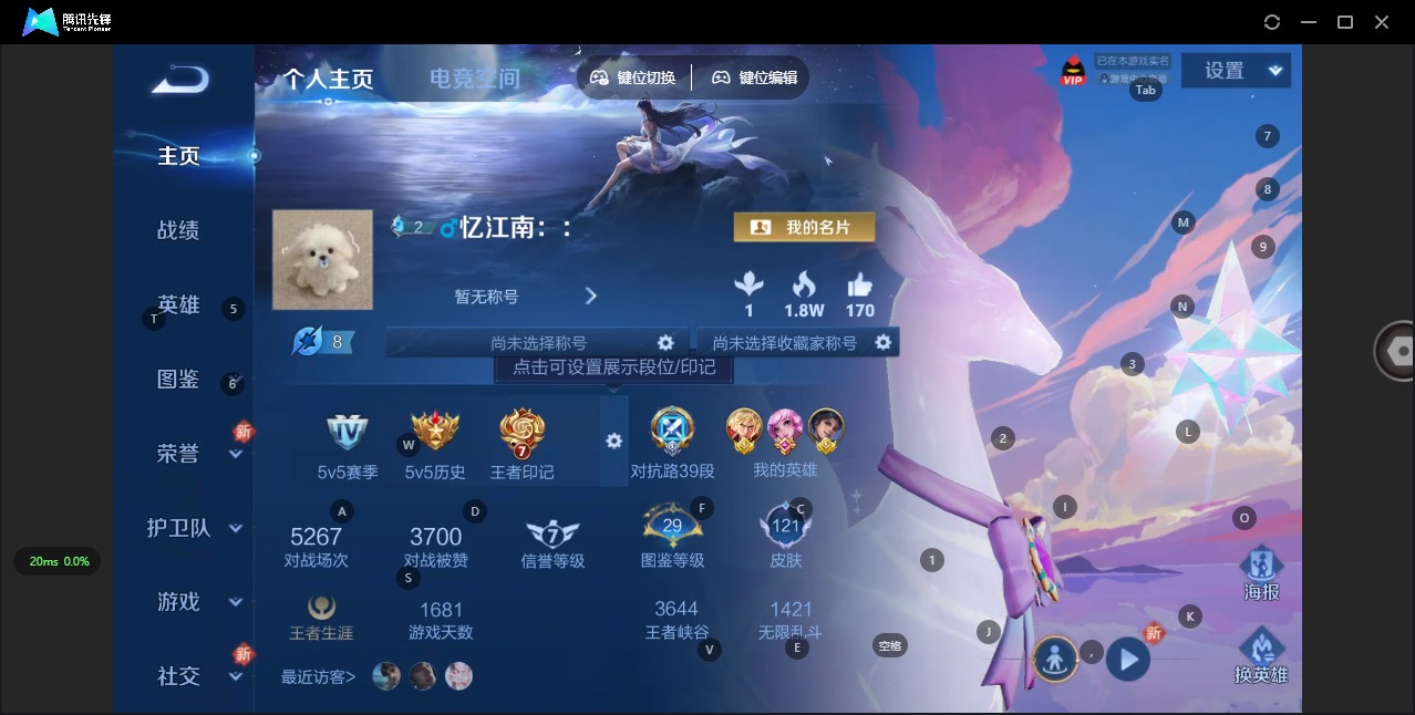 - PX_2078150-贵族等级: V3 英雄数: 73 皮肤数: 37 限定皮: 如梦令-后羿,高山流水