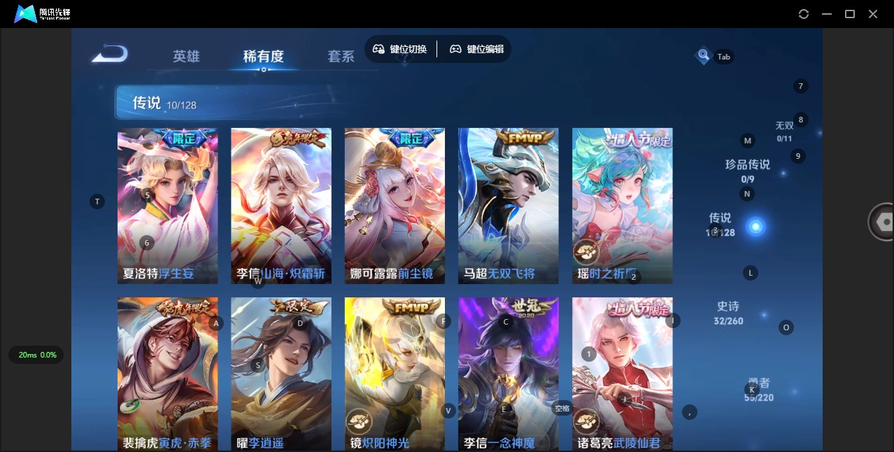 - [11523067]V7 1典藏 1珍品传说 9传说 125英雄 234皮肤 可修改实名 优质装备:鸣剑·曳影,黑崎一护,云鹰飞将(小将军),一念神魔,末日机甲-孙尚香(绿蚂蚱),地狱火,仲夏夜之梦(大飞蛾),遇见神鼓,澜逐花归海 传说皮:云诺千山 珍宝阁皮:妄想食味,优雅恋人 限定皮:逐霄战戟,鸣野蒿,至尊宝,遇见飞天,高山流水,匿光决锋者,五谷丰年,游园惊梦,梁祝,岱宗(典韦年限),李小龙 史诗皮:鸭鸭历险记-刘禅,化蝶舞,龙之律动,藏狐·褐绒,布丁狗之誓,茶境仙,谪仙醉月,决胜骁骑,超元猎域,炽弈燎原,百相守梦-黄忠,紫霞仙子,苍穹之光,黄金分割率,千年之狐,江河有灵,百解令(蒙犽),暗夜猫娘,魅语,无限星赏官,猫狗日记-大乔,乱世虎臣,节奏热浪,修罗,女仆咖啡,摇滚巨星,水果甜心,绅士熊喵,星夜王子,功夫厨神,德古拉伯爵,暗隐猎兽者,幽灵船长,鬼剑武藏,心灵战警,天秀·启明,舞动绿茵,纤云弄巧,繁星吟游(呼啦呼啦),拒霜思,乘风破浪,曙光守护者,金属风暴,圣诞狂欢,圣诞恋歌,鹰眼统帅,魅力维加斯,无心,未来纪元-赵云