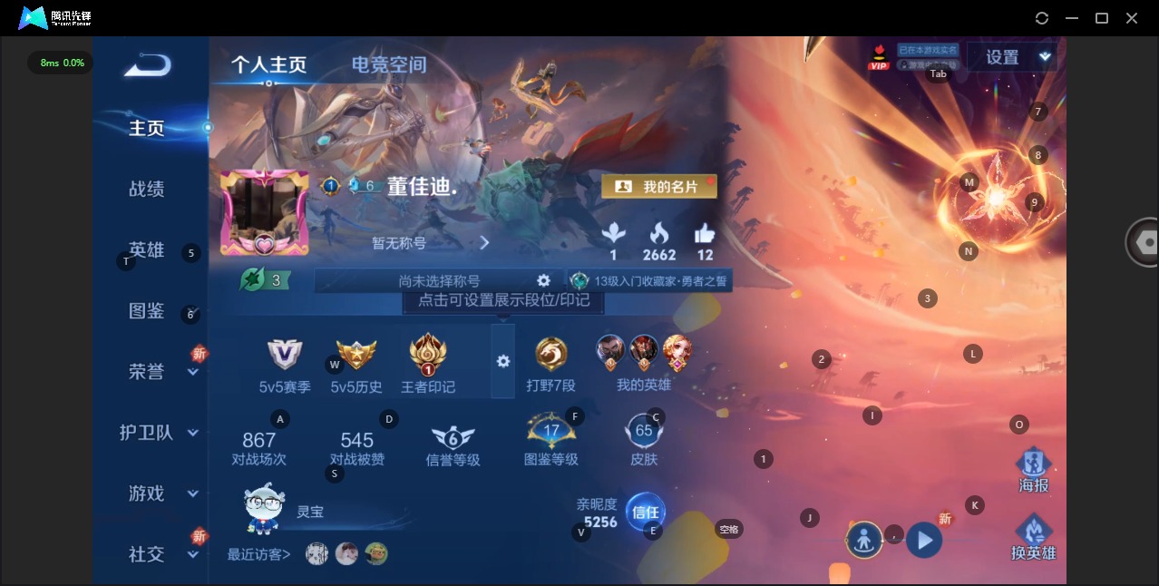 - [12256670]V8 2典藏 1珍品传说 10传说 125英雄 317皮肤 可修改实名 优质装备:弑枪猎影(韩信典藏),神鉴启示录,器灵·落星盏,黄金射手座,末日机甲-孙尚香(绿蚂蚱),超时空战士-狄仁杰,无双飞将,妄想实况,涂山容容 传说皮:幻光神枪 珍宝阁皮:妄想食味,蔷薇恋人 限定皮:愿照·九州拓(澜年限),愿照·山河定(司空震年限),逐霄战戟,鸣野蒿,至尊宝,傲雪梅枪,魔法小厨娘,白晶晶,玄嵩(庄周年限),匿光决锋者,五谷丰年,天狼狩猎者,奔雷神使(牛魔年限),孙行者,引擎之心,寅虎·御盾(廉颇年限),匿光启智者,山海·玄木吟(马可年限) 史诗皮:器灵·浮梦炉,糖绘人间,化蝶舞,龙之律动,琥珀纪元伽罗,星界战将,百相守梦-周瑜,茶境仙,埋骨钱,谪仙醉月,破空之剑,战舞者,紫霞仙子,电玩小子(小书包),特工魅影,冰冠公主,江河有灵,百解令(蒙犽),高渐离燃音魔法,蒙恬荣光圣徽,电玩·爆裂旋风,无限星赏官,晚萤,匿光破解者,百相守梦(刘备),龙骑士(小龙虾),末日机甲-吕布,猫狗日记-孙策,猫狗日记-大乔,时之恋人-孙尚香,节奏热浪,修罗,女仆咖啡,摇滚巨星,水果甜心,天才门将,星夜王子,心灵骇客,功夫厨神,暗隐猎兽者,鬼剑武藏,地狱岩魂,纤云弄巧,拒霜思,乘风破浪,逐浪之夏,月团寄思,水晶猎龙者,曙光守护者,唤灵魅影,金属风暴,原初追逐者,圣诞狂欢,鹰眼统帅,魅力维加斯,赏金猎手,寅虎·御盾,无心