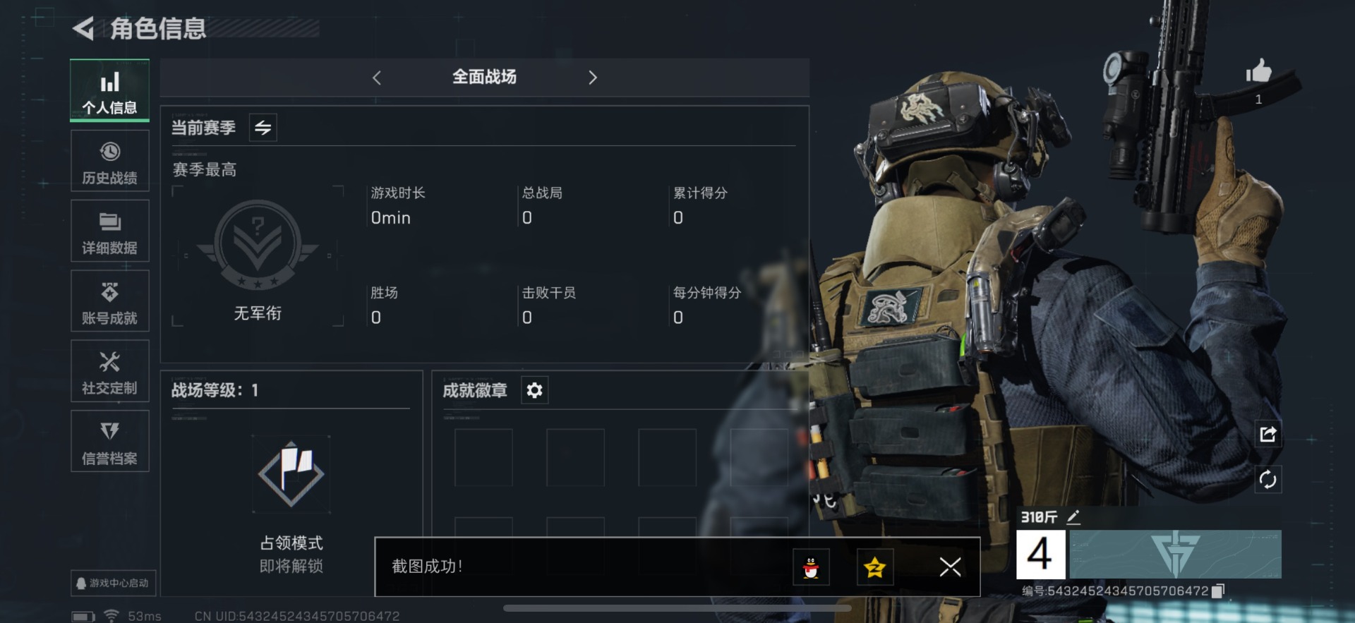 - [11883316]总资产:134.3M 10传说枪械 哈夫币:76.918K 可二次 可修改实名 烽火地带段位:白银 全面战场段位:无段位 传说武器皮肤:M4A1突击步枪-阿米娅,CAR-15突击步枪-阿米娅,复合弓-黑-天际线,AWM狙击步枪-捞点薯条,腾龙突击步枪-捞点薯条,93R-捞点薯条,AK-12突击步枪-特斯拉线圈,SR-3M紧凑突击步枪-特斯拉线圈,UZI冲锋枪-特斯拉线圈,勇士冲锋枪-能天使-午夜邮差 史诗武器皮肤:SV-98狙击步枪-林中猎手,SV-98狙击步枪-囚徒