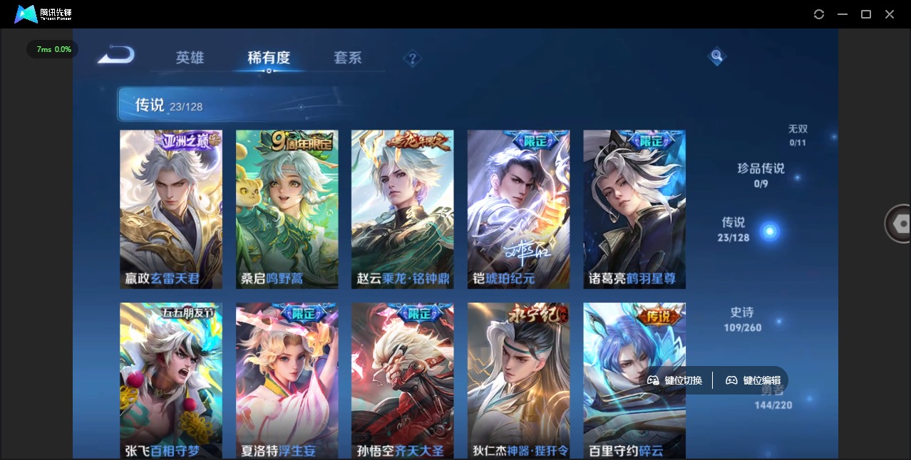 - [11608241]V7 5传说 123英雄 181皮肤 可修改实名 优质装备:一念神魔,零号·赤焰,超时空战士-狄仁杰,涂山容容 珍宝阁皮:胡桃夹子,蔷薇恋人 限定皮:高山流水,诗剑行,齐天大圣,五谷丰年,李小龙,山海·玄木吟(马可年限) 史诗皮:百相守梦-周瑜,白龙吟,黄金分割率,特工魅影,永昼,江河有灵,魅语,百解令(蒙犽),偶像歌手,猫狗日记-孙策,修罗,女仆咖啡,摇滚巨星,水果甜心,功夫厨神,德古拉伯爵,幽灵船长,鬼剑武藏,缤纷独角兽,乘风破浪,水晶猎龙者,曙光守护者,金属风暴,鹰眼统帅,魅力维加斯,赏金猎手,无心,未来纪元-赵云