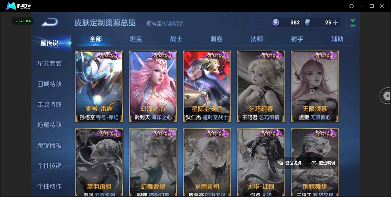 盾山梦圆繁星,铠青龙志,伽罗天狼溯光者,孙膑天狼运算者,后羿无尽星芒,裴擒虎李小龙,裴擒虎天狼狩猎者,上官婉儿梁祝,马可波罗山海·玄木吟,桑启鸣野蒿,猪八戒猪悟能,孙悟空孙行者,孙悟空大圣娶亲,孙悟空美猴王,赵云引擎之心