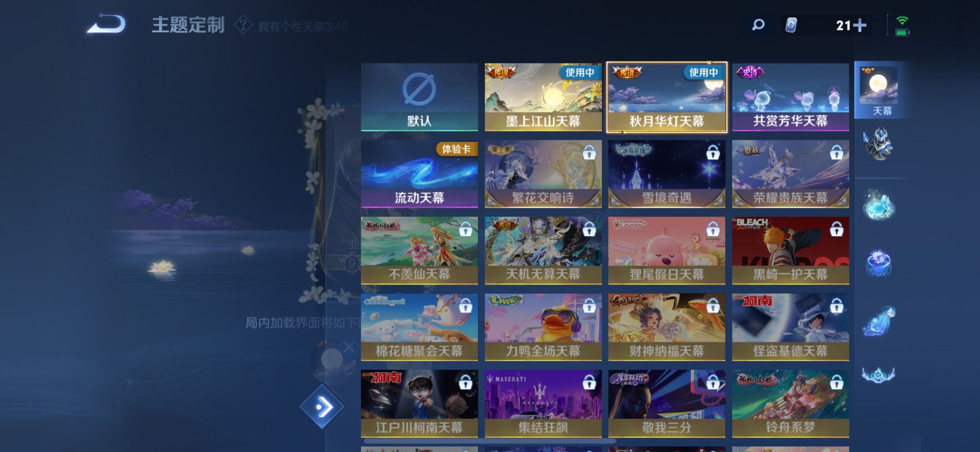 大乔猫狗日记,海诺心动手记,刘邦德古拉伯爵,夏侯惇乘风破浪,阿轲暗夜猫娘,阿轲节奏热浪,铠曙光守护者,曹操幽灵船长,廉颇地狱岩魂,伽罗箭羽风息,小乔缤纷独角兽,小乔青蛇,孙策猫狗日记,不知火舞魅语,赵怀真器灵·浮梦炉,鲁班七号电玩小子,项羽苍穹之光,吕布圣诞狂欢,吕布末日机甲,露娜紫霞仙子,镜玫瑰异探,诸葛亮黄金分割率,司马懿暗渊魔法,刘禅天才门将,刘禅绅士熊喵,姜子牙闲日渔趣,姬小满飞车小橘子,宫本武藏鬼剑武藏,公孙离无限星赏官,兰陵王暗隐猎兽者,貂蝉圣诞恋歌,花木兰水晶猎龙者,李白千年之狐,安琪拉心灵骇客,蒙犽百解令,安琪拉时之奇旅,杨戬天秀·启明,白起星夜王子,亚瑟心灵战警,嬴政摇滚巨星,嬴政暗夜贵公子,程咬金功夫厨神,百里玄策热力回旋,百里玄策原初追逐者,雅典娜冰冠公主,雅典娜黎明之约,韩信白龙吟,李元芳逐浪之夏,百里守约特工魅影,墨子金属风暴,蔡文姬舞动绿茵,弈星滕王阁序,嫦娥拒霜思,橘右京修罗