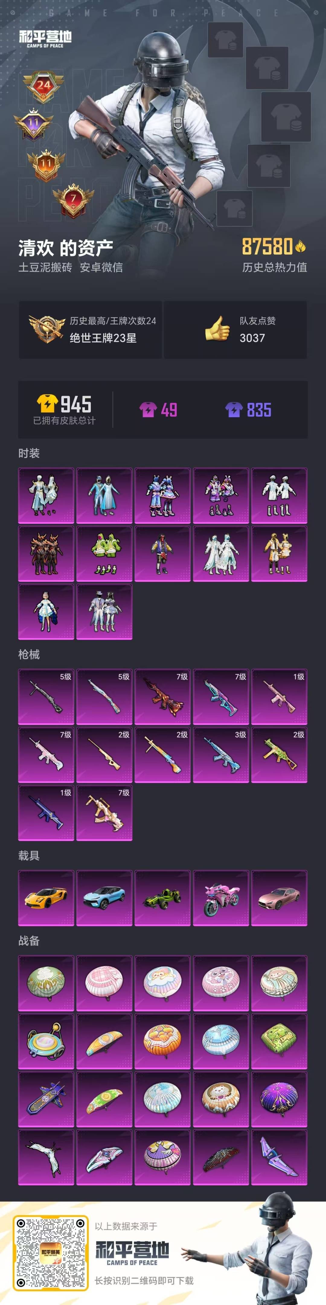 - PX_2085914- 安卓手Q-18王牌印记-5粉装-6特效枪-1载具-81415热力值-177套装-253枪皮-5卓越印记-2传奇印记 【5粉装】,缤纷油彩,新星烈龙,千金淑猫,音爆索尼克,幻影战神 【6特效枪】AKM-梦之光华-7级 SCAR-L-锦绣绵绵-5级 M416-五爪金龙-7级 Kar98K-未来歌姬-7级 Kar98K-巳巳如意-5级 Mk14-甜梦熊击-5级 【10稀有紫装】