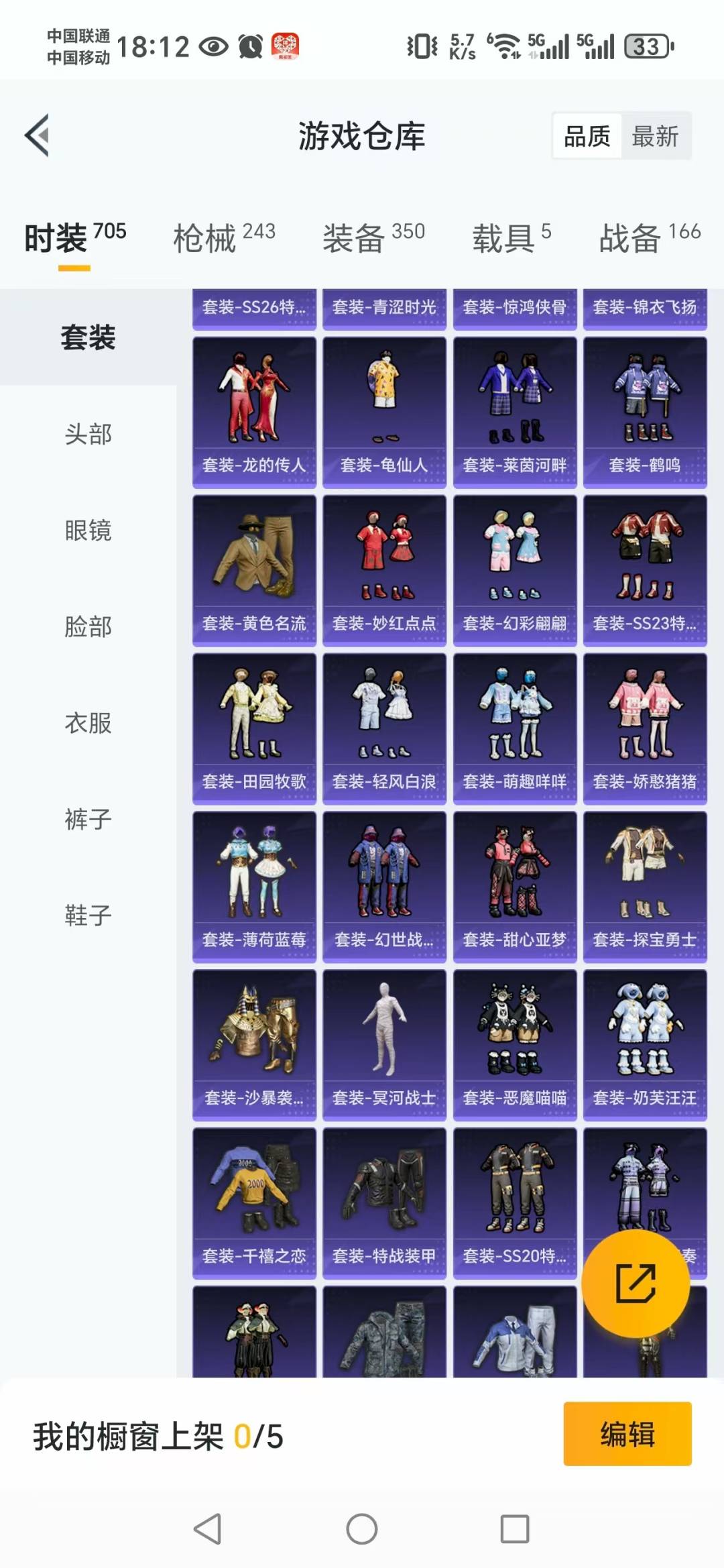 - [11289291]8粉装 4特效枪 12印记 可二次 可修改实名 身法装备:暗影哥特(红眼罩),初号机款机体服(紫螳螂) 热门装扮:幻影飞狐,奇异狩猎者,初号机款机体服(紫螳螂),极限特训,新星烈龙(小白龙),鸾凤武仙,飒粉甜心,闲梦青缨,创世·救赎,迅捷狂鲨,梦魇先生,深海小丑鱼 载具:僚机-圣域龙宝 稀有枪皮:AUG-暖羊咩咩,Kar98K-巳巳如意,Kar98K创世·救赎,M416五爪金龙 七级特效枪:七级M416-五爪金龙 六级特效枪:六级Kar98K-创世·救赎 五级特效枪:五级Kar98K-巳巳如意,五级AUG-暖羊咩咩 紫色装扮:照水倚天,和煦暖阳,田园牧歌,轻风白浪,SS22特训,萌趣咩咩,SS20特训,SS21特训,暖心橘喵,娇憨猪猪,幻彩翩翩,人气偶像,军械专家,飞狐塔尔斯,SS30特训套装,妙红点点,灵蜜圈圈,SS23特训,SS31特训套装,青涩时光,特种颜团子,SS15特训,萌趣颜团子,隐空刺,SS13特训,SS14特训,治愈之星,科技之星,飞驰魅影,SS18特训,雪兔飞飞,音速流光,极速竞梦,SS19特训,冰川特警,SS16特训,薰款战斗服,真嗣款战斗服,SS17特训,蓝色运动,虎虎生威吉莉,街头潮人,蓝彩潮人,都市漫游者,都市魅力,酒红色名流,酷潮明星,野性战心,空岛之星,竞技达人朋克,红色运动,绮丽涂鸦,缤纷果语,耀眼新星,荣耀,长空猛禽,冰河战士,龙魂突击队,蝶变,龟仙人,龙腾端午,风暴特警,雪鹰学院,霓虹街区,青年教官,龙的传人,飞行日记,魅力单车,鹤鸣,麻辣教官,黄色伏地魔,黄色名流,黄色运动,黑色伏地魔,福星高照,战地督导,极地朋克,极速红龙,柠萌假日,格斗先锋,橘黑制服,沙漠雄狮,冷焰舞者,吉莉礼服,坚韧舞者,夏日倾情,夏日音浪,完美偶像,帅气教官,幻世战舞者,幻影武者,活力之心,特战英豪,特殊使命,特训学院,狂沙舞者,猎鹰,猛禽,王牌教练,白熊同盟,白色伏地魔,破晓战魂,破蛋小黄鸡,海岛探路者,涂山之恋,深蓝色名流,湖蓝色名流,牛气满满,灼焰舞者,炫蓝之夏,热血青春,燃烧卡路里,牛气冲天,小熊娃娃,雏菊兔兔,萝兰蝴蝶,SS29特训,米开朗基罗,纯真浪花,热情海星,曼妙人鱼,SS28特训,创世·幻影,创世·追猎,燕燕于飞,暗影哥特(红眼罩),鱼渊荷华,玉兔迎春,巳巳如意,烈火街头,森林游猎者,炽纹蛇影,星途旅人,青团波波,糖糖葫芦,棉花软糖,竞