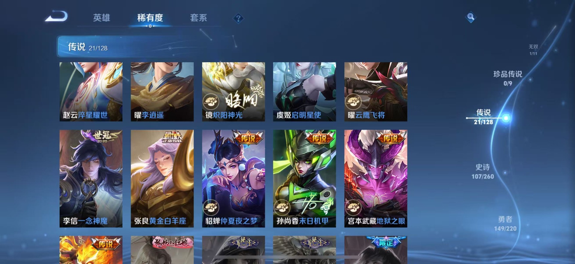 张飞虎魄,赵云百木心枪,司空震愿照·山河定,裴擒虎李小龙,裴擒虎寅虎·赤拳,上官婉儿梁祝,李白诗剑行,花木兰瑞麟志,马可波罗山海·玄木吟,马可波罗深海之息,桑启鸣野蒿,猪八戒猪悟能,孙悟空孙行者,孙悟空至尊宝,马超神威,云中君时之祈愿,韩信傲雪梅枪,澜愿照·九州拓