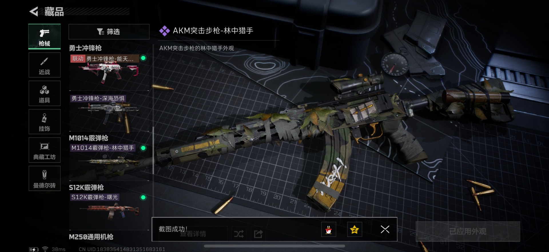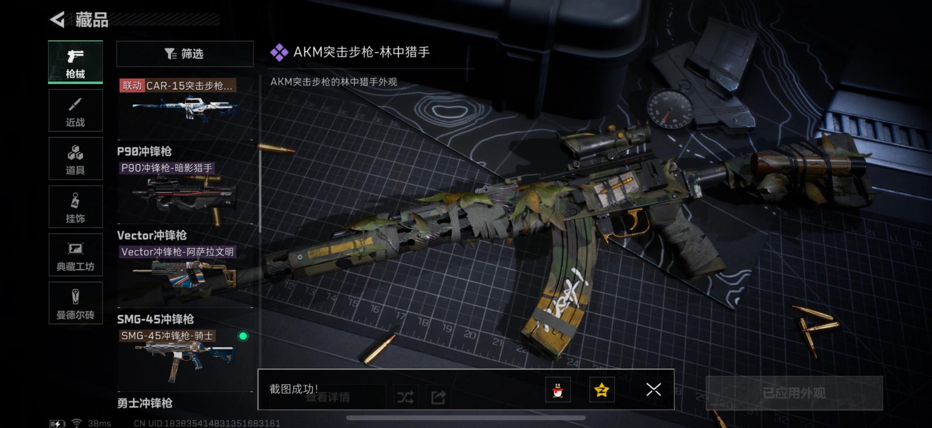 - [11824025]总资产:127.4M 7传说枪械 哈夫币:101K 可二次 可修改实名 烽火地带段位:黑鹰 全面战场段位:无段位 传说武器皮肤:SMG45冲锋枪-骑士,AK-12突击步枪-特斯拉线圈,CAR-15突击步枪-阿米娅,SR-3M紧凑突击步枪-特斯拉线圈,UZI冲锋枪-特斯拉线圈,勇士冲锋枪-能天使-午夜邮差,Vector冲锋枪-能天使-午夜邮差 史诗武器皮肤:AUG突击步枪-蝮蛇,M16A4突击步枪-竞赛选手,M1014霰弹枪-林中猎手,MP5冲锋枪-深海恐惧,AKM突击步枪-林中猎手,SV-98狙击步枪-林中猎手