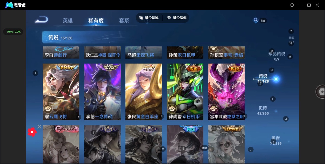- PX_2095053-实名: 可修改 贵族等级: V5 英雄数: 124 皮肤数: 138 星传说: 星际治安官 传说皮: 黄金白羊座,超时空战士-狄仁杰,澜逐花归海,典韦战鼓燎原,云诺千山 限定皮: 鸣野蒿,陌上桑,愿照·九州拓