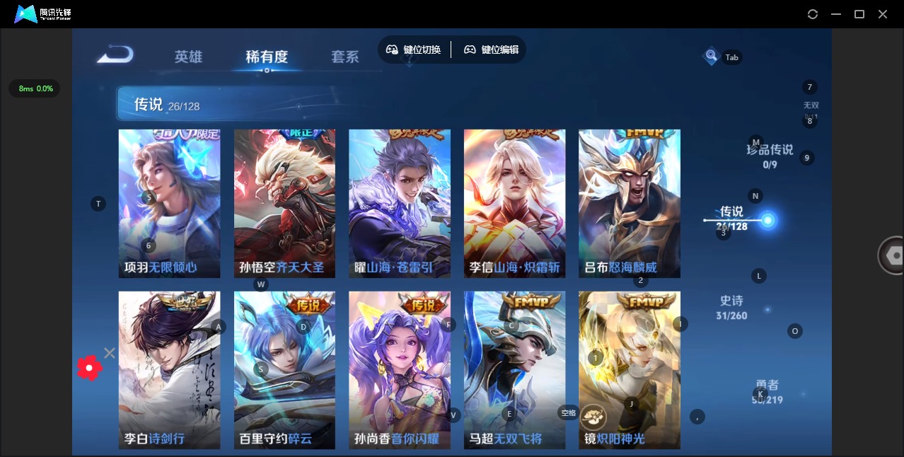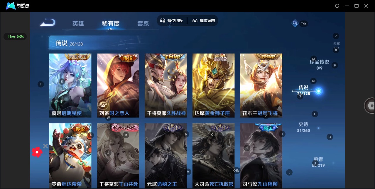 - [11525889]V8 1典藏 1珍品传说 6传说 124英雄 329皮肤 可修改实名 女号 安全保护中 优质装备:拾光映像(瑶典藏),大耳狗之梦,仲夏夜之梦(大飞蛾),零号·赤焰 传说皮:续相思 珍宝阁皮:蔷薇恋人,女武神,玩趣恶龙 限定皮:愿照·福禄聚(蔡文姬年限),逐霄战戟,鸣野蒿,傲雪梅枪,山海·碧波行(瑶年限),高山流水,五谷丰年,梁祝,御风骁将(吕布年限),李小龙,一生所爱,青春决赛季,冰霜恋舞曲,匿光追影者 史诗皮:赞萌露比,飞车小橘子,化蝶舞,灵蛊蚀心,星界战将,谪仙醉月,茶境仙,幻珠鲛人,破空之剑,涂山红红,琥珀纪元伽罗,蔬乡物语(鲁班七号),百相守梦-百里守约,百相守梦-黄忠,守夜人,遇见神鹿,紫霞仙子,苍穹之光,特工魅影,千年之狐,永昼,江河有灵,魅语,百解令(蒙犽),蒙恬荣光圣徽,无限星赏官,冰冠公主,青蛇,偶像歌手,晚萤,电玩·爆裂旋风,暗夜猫娘,末日机甲-吕布,猫狗日记-孙策,猫狗日记-大乔,时之恋人-孙尚香,乱世虎臣,修罗,女仆咖啡,摇滚巨星,水果甜心,绅士熊喵,天才门将,星夜王子,心灵骇客,时之奇旅-安琪拉,功夫厨神,暗隐猎兽者,幽灵船长,鬼剑武藏,心灵战警,天秀·启明,地狱岩魂,诗语江南,纤云弄巧,拒霜思,缤纷独角兽,乘风破浪,逐浪之夏,水晶猎龙者,曙光守护者,唤灵魅影,金属风暴,原初追逐者,圣诞狂欢,圣诞恋歌,鹰眼统帅,魅力维加斯,黎明之约,赏金猎手,滕王阁序,无心,未来纪元-赵云