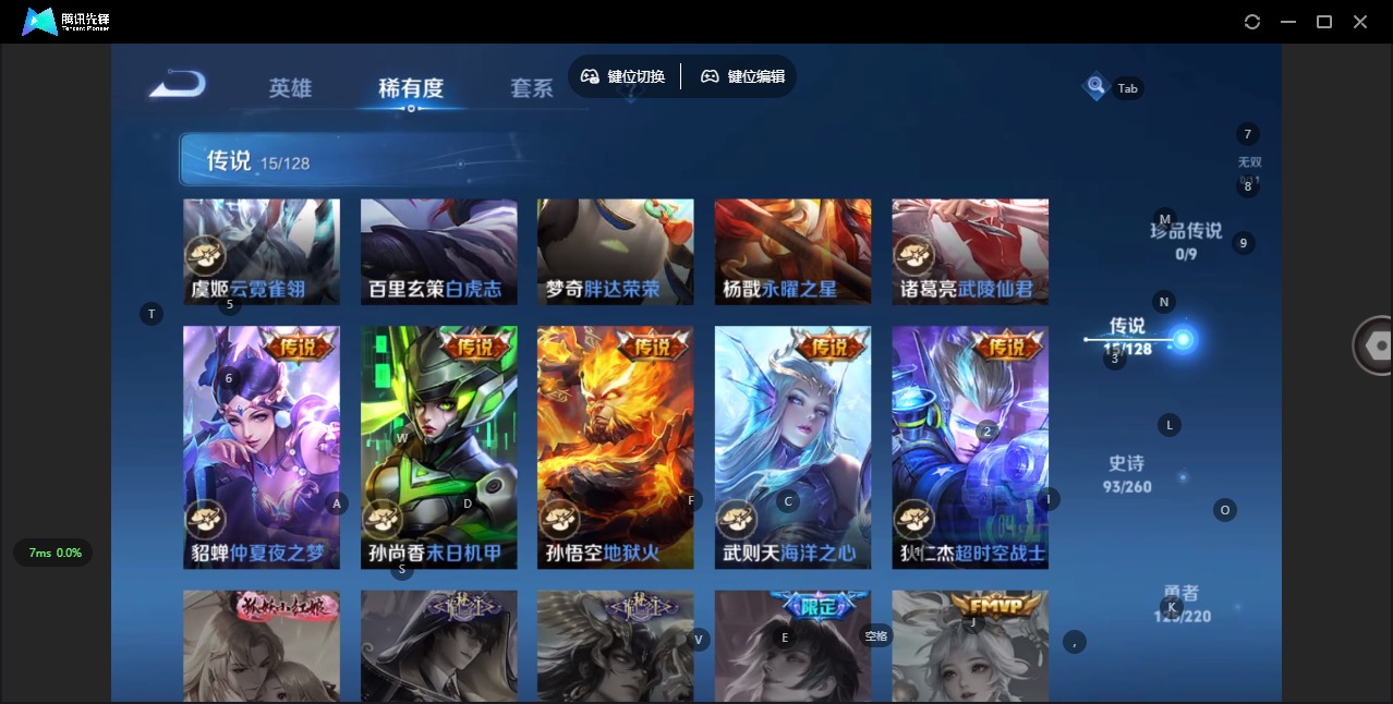 - [12263304]V7 1典藏 1珍品传说 7传说 122英雄 134皮肤 可修改实名 优质装备:银白咏叹调(倪克斯侍卫),怪盗基德,黄金狮子座,末日机甲-孙尚香(绿蚂蚱),地狱之眼,山海·炽霜斩(李信年限) 珍宝阁皮:蔷薇恋人,女武神 限定皮:逐霄战戟,鸣野蒿,齐天大圣,怒海麟威,神器·万象笔,山海·玄木吟(马可年限) 史诗皮:化蝶舞,龙之律动,破空之剑,黄金分割率,千年之狐,永昼,冰冠公主,江河有灵,青蛇,电玩·爆裂旋风,偶像歌手,龙骑士(小龙虾),末日机甲-吕布,猫狗日记-孙策,乱世虎臣,节奏热浪,修罗,女仆咖啡,摇滚巨星,水果甜心,绅士熊喵,暗隐猎兽者,幽灵船长,舞动绿茵,缤纷独角兽,逐浪之夏,水晶猎龙者,曙光守护者,金属风暴,圣诞恋歌,鹰眼统帅,暗夜贵公子,魅力维加斯,玫瑰异探