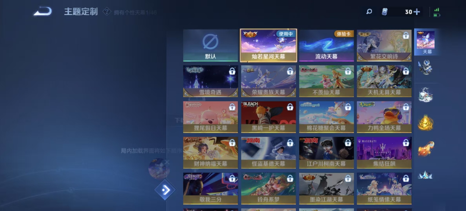 哪吒逐梦之翼,铠青龙志,干将莫邪冰霜恋舞曲,牛魔奔雷神使,兰陵王默契交锋,公孙离蜜橘之夏,裴擒虎李小龙,裴擒虎天狼狩猎者,上官婉儿梁祝,花木兰青春决赛季,马可波罗逐梦之星,孙悟空大圣娶亲,孙悟空至尊宝,孙悟空美猴王,百里玄策白虎志,赵云引擎之心,韩信逐梦之影,百里守约朱雀志,关羽武圣,关羽冰锋战神