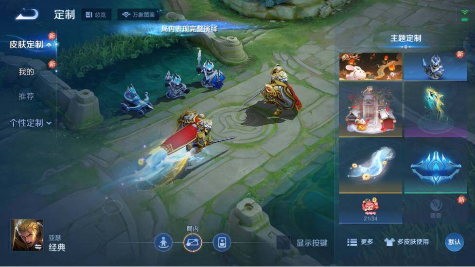 关羽冰锋战神,裴擒虎李小龙,诸葛亮时雨天司,赵云龙胆,马超神威,韩信飞衡,上官婉儿天狼绘梦者,伽罗天狼溯光者,马可波罗逐梦之星,韩信逐梦之影,百里守约朱雀志,项羽霸王别姬,虞姬霸王别姬,露娜一生所爱,花木兰默契交锋,兰陵王默契交锋,干将莫邪冰霜恋舞曲,花木兰青春决赛季,公孙离蜜橘之夏,孙悟空孙行者,孙膑寅虎·展翼,裴擒虎寅虎·赤拳,后羿无尽星芒,金蝉唐三藏,王昭君星穹之声,李白诗剑行,马可波罗山海·玄木吟,瑶山海·碧波行,桑启鸣野蒿