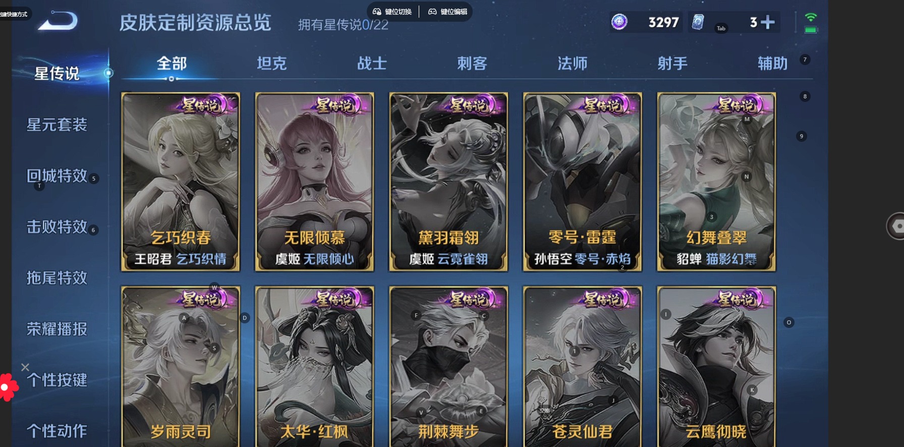 - PX_2105144-D3224有二次 安卓q-V8-244皮肤-1星传说 幻海之心 中路36段 发育路35段 金标武则天 1典藏 11传说 -1典藏(已兑换) 武则天 凤求凰 至尊宝 朱雀志 启明星使 飞衡 幽恒 烈魂 逐梦之星 天狼狩猎者 天狼征服者 大圣娶亲 天魔缭乱 凤凰于飞 青春决赛季 时之彼端 猎兽之王 蓝屏警告 神迹守卫钟馗 狮舞东方 朔望之晖 星空之诺 银河之约 暗影游猎 原初追