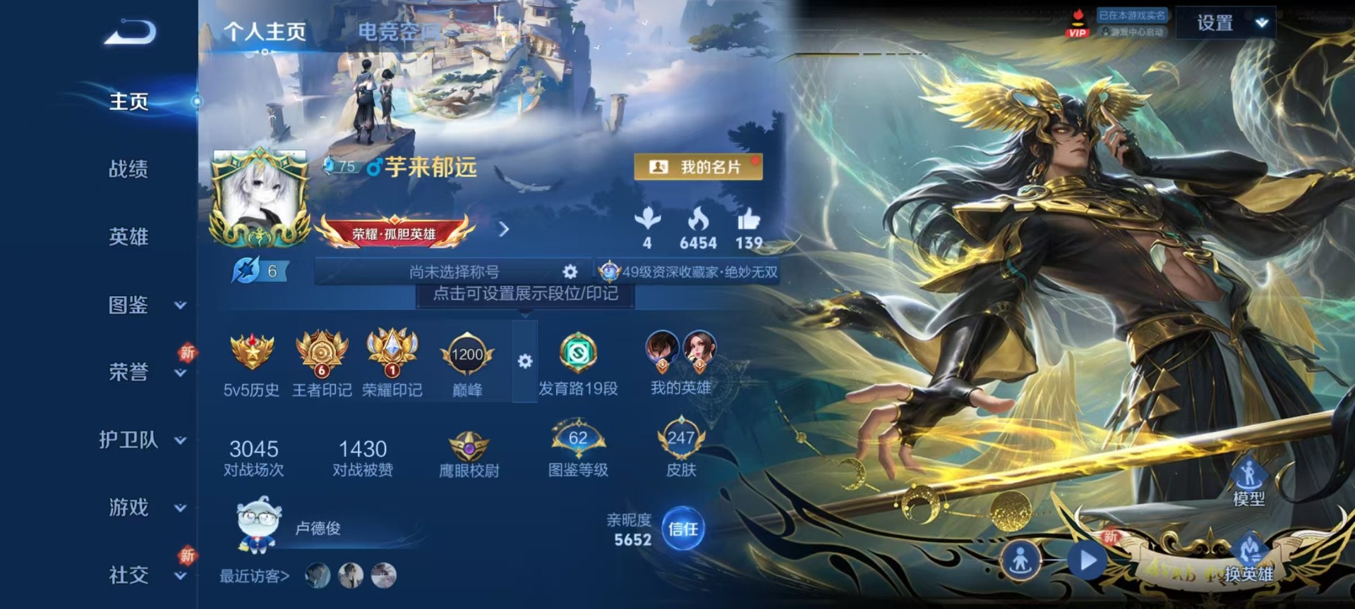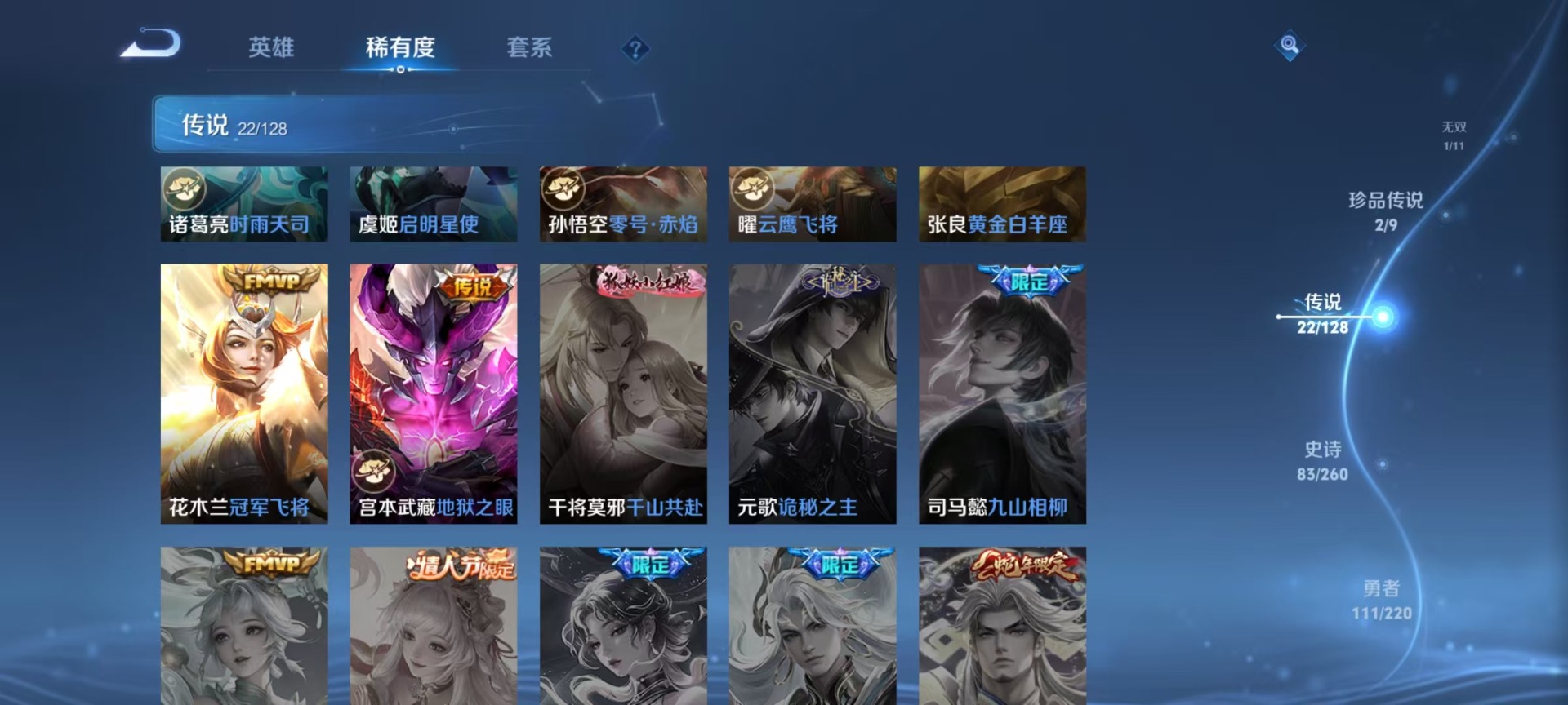 - [11986878]V7 1典藏 1珍品传说 11传说 124英雄 211皮肤 可修改实名 优质装备:神鉴启示录,怪盗基德,冠军飞将,炽阳神光,地狱之眼,飞鸢探春,超时空战士-狄仁杰,涂山容容 传说皮:乘龙·问璇玑(孙尚香年限),吕布曦玄引,幻光神枪 珍宝阁皮:蔷薇恋人 限定皮:愿照·九州拓(澜年限),鸣野蒿,五谷丰年,梁祝,祈雪灵祝(雪兔子),大圣娶亲,引擎之心 史诗皮:鸭鸭历险记-刘禅,器灵·浮梦炉,化蝶舞,星界战将,龙之律动,茶境仙,怒海争锋,破空之剑,战舞者,蒙犽顽岩魄,埋骨钱,琥珀纪元伽罗,蔬乡物语(鲁班七号),百相守梦-黄忠,紫霞仙子,电玩小子(小书包),黄金分割率,特工魅影,江河有灵,真我赫兹(百里守约),蒙恬荣光圣徽,偶像歌手,猫狗日记-孙策,节奏热浪,女仆咖啡,摇滚巨星,水果甜心,绅士熊喵,功夫厨神,暗隐猎兽者,幽灵船长,鬼剑武藏,天秀·启明,缤纷独角兽,逐浪之夏,水晶猎龙者,曙光守护者,箭羽风息,唤灵魅影,原初追逐者,圣诞恋歌,鹰眼统帅,暗夜贵公子,魅力维加斯,黎明之约,无心