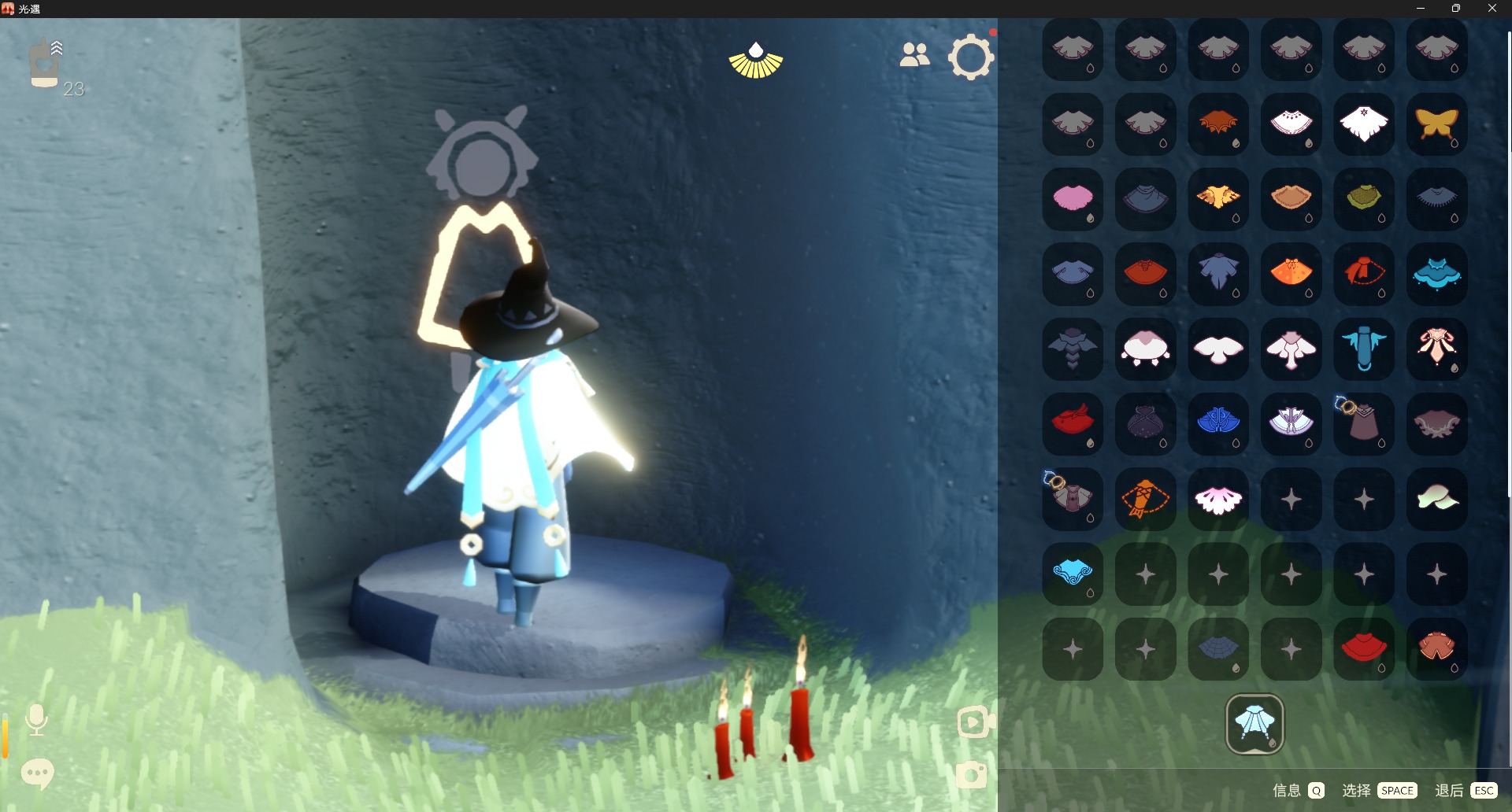 - [11292468]【毕业图】晨岛,云野,雨林,霞谷,暮土,禁阁 【毕业季】梦想季,风行季,表演季 【蜡烛】60 【爱心】19 【稀有礼包】鹿角,蓝色音乐符,雪花发夹,大橘大利,鲤鱼头饰,TGC斗篷黑,创始人斗篷,铜钱斗,蝙蝠斗篷,绊爱斗篷,情人秋千,冥龙南瓜,雪花水晶球 【毕业物品】凤凰面具,凤凰斗篷,多羽发饰,羽袖长袍,白枭,黄眉企鹅面具,燕尾斗篷 【热门复刻】海洋斗,武士裤,正太头,猫耳发型,虚荣