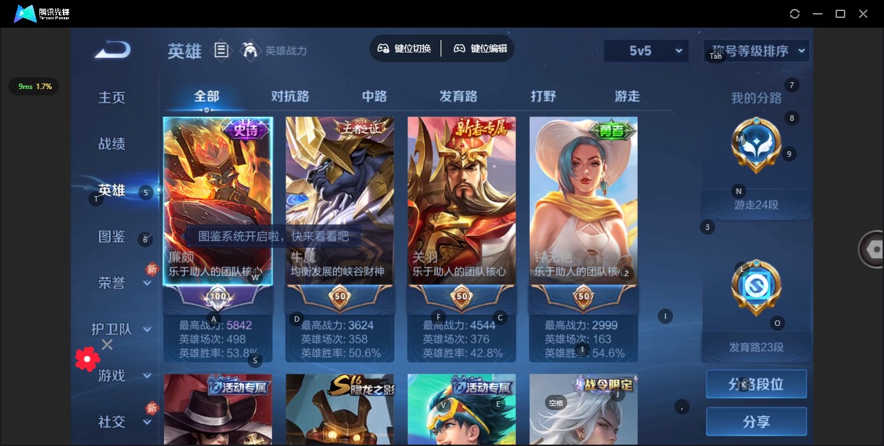 - [11936394]V5 3传说 91英雄 84皮肤 可修改实名 传说皮:续相思,幻光神枪 限定皮:愿照·九州拓(澜年限),傲雪梅枪 史诗皮:鸭鸭历险记-刘禅,苍鳞隐世,器灵·浮梦炉,化蝶舞,龙之律动,百相守梦-周瑜,茶境仙,百相守梦-黄忠,青蛇,晚萤,修罗,女仆咖啡,摇滚巨星,水果甜心,星夜王子,心灵骇客,暗隐猎兽者,鬼剑武藏,逐浪之夏,曙光守护者,金属风暴,鹰眼统帅