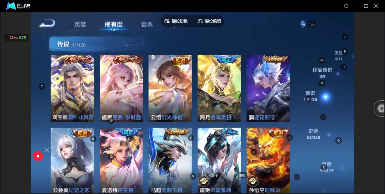 [11764100]V7 11传说 122英雄 215皮肤 可修改实名 优质装备:云霓雀翎,地狱火,超时空战士-狄仁杰,无双飞将,浮生妄,记忆之芯(机甲兔),澜逐花归海,金乌负日 传说皮:幻光神枪 珍宝阁皮:妄想食味,蔷薇恋人 限定皮:愿照·岁时盈(虞姬年限),愿照·山河定(司空震年限),高山流水,五谷丰年,梁祝,李小龙,如梦令-后羿,引擎之心 史诗皮:器灵·浮梦炉,瑰影绮梦,化蝶舞,星界战将,茶境仙,蔬乡物语(鲁班七号),星界特工,遇见神鹿,白龙吟,特工魅影,江河有灵,蒙恬荣光圣徽,电玩·爆裂旋风,龙骑士(小龙虾),末日机甲-吕布,猫狗日记-孙策,猫狗日记-大乔,乱世虎臣,修罗,摇滚巨星,水果甜心,绅士熊喵,星夜王子,心灵骇客,德古拉伯爵,鬼剑武藏,心灵战警,舞动绿茵,地狱岩魂,繁星吟游(呼啦呼啦),缤纷独角兽,乘风破浪,曙光守护者,箭羽风息,金属风暴,鹰眼统帅,魅力维加斯,未来纪元-赵云